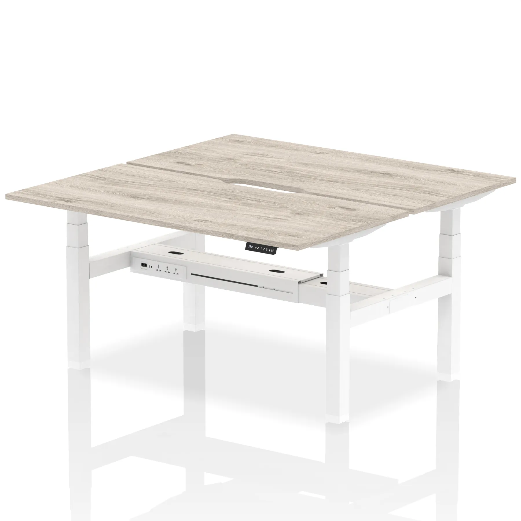 Elevate your team’s workspace with the Air Back-to-Back Height Adjustable Desk for two. This workstation features stylish scalloped edging and is equipped with two Ethernet ports, a USB port, a USB-C port, and three UK plugs per desk, ensuring optimal connectivity. The adjustable height promotes ergonomic working positions. Designed for collaboration and efficiency, it’s the perfect blend of aesthetics and functionality for the modern office.
