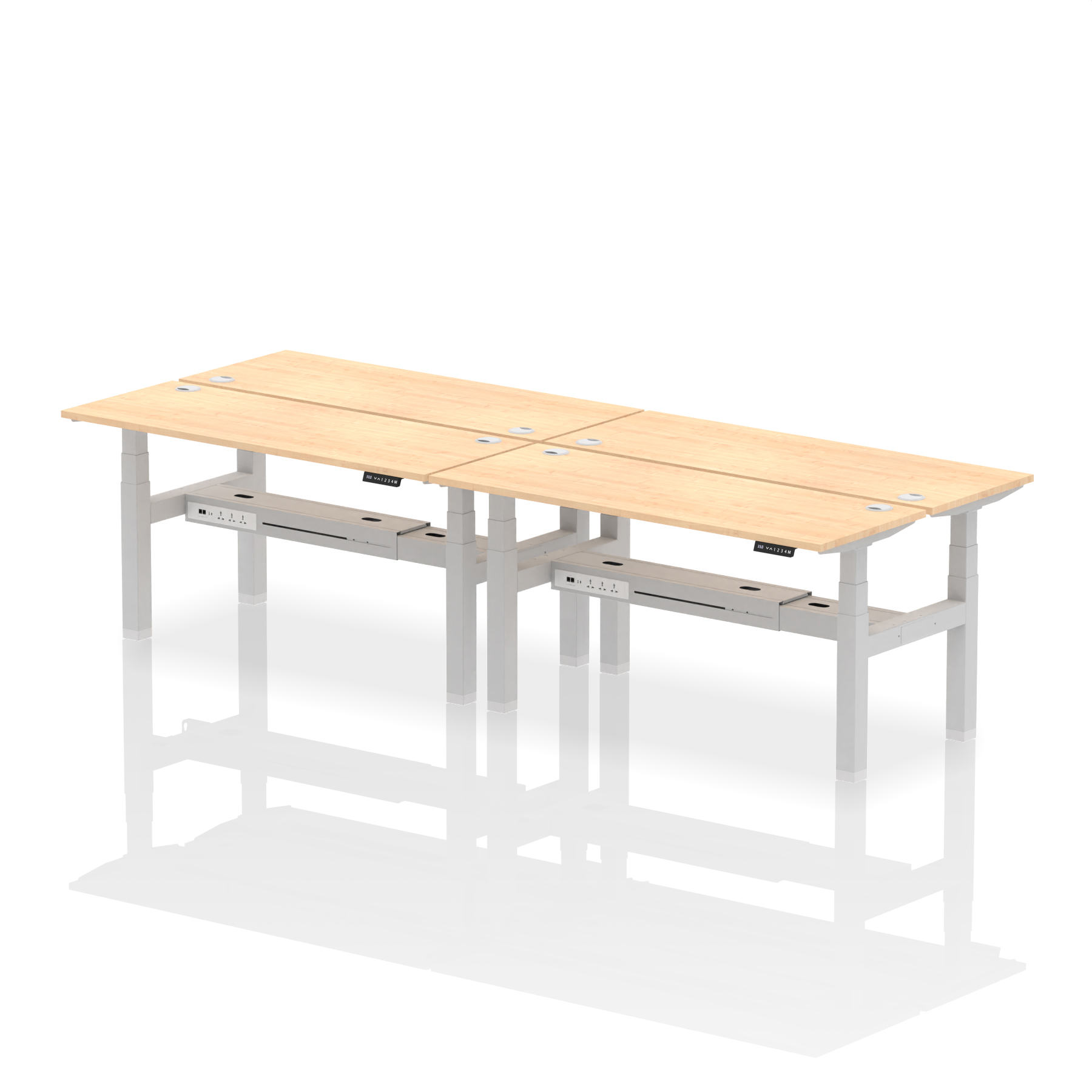 Introducing the Air Back-to-Back Slimline Height Adjustable Desk, a sleek solution for four. Each desk features dual Ethernet ports, a USB port, a USB-C port, and three UK plugs, ensuring comprehensive connectivity. The design includes cable ports for a neat workspace. Its height-adjustable feature caters to ergonomic comfort. Ideal for teams seeking a streamlined and flexible working environment, this workstation redefines collaborative efficiency.