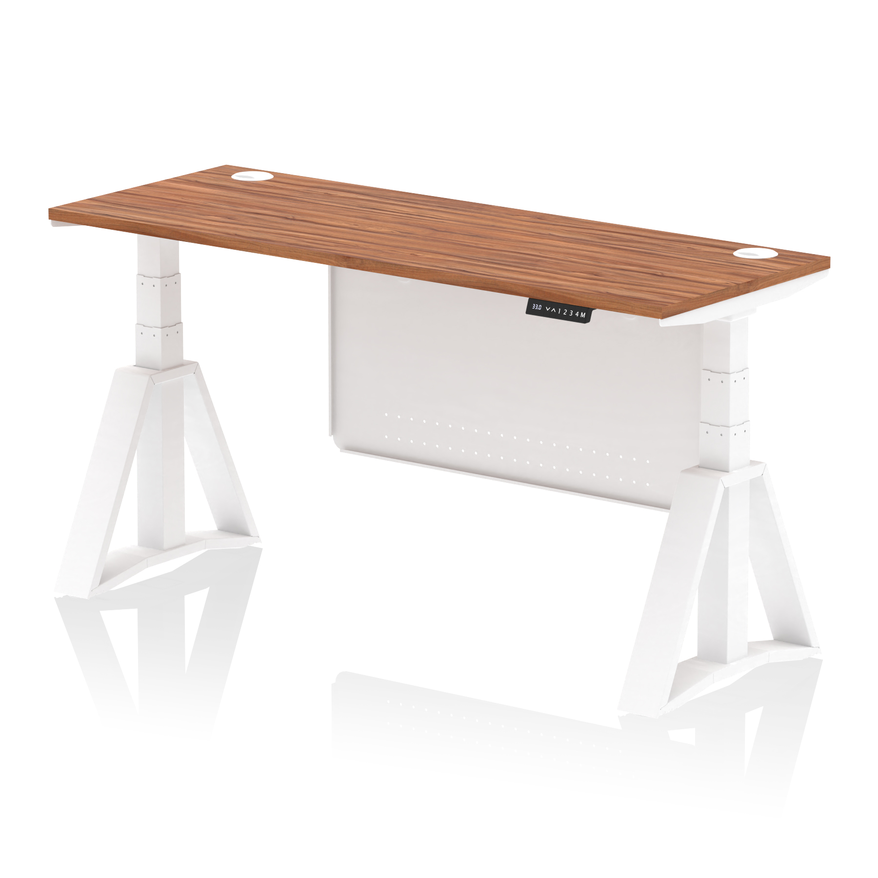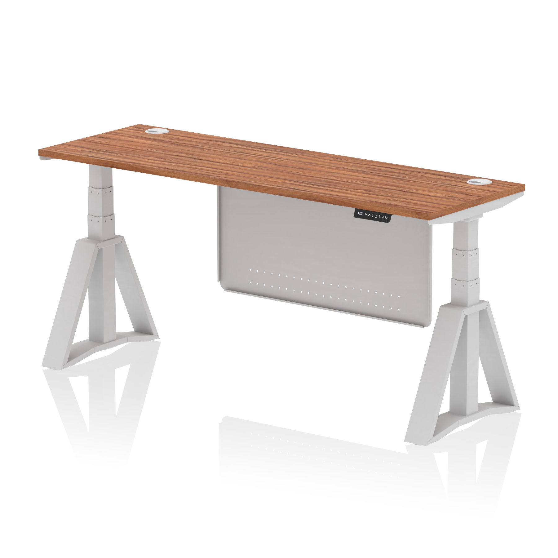 Air Height Adjustable Slimline Desk With Cable Ports With Steel Modesty Panel With Piste Foot