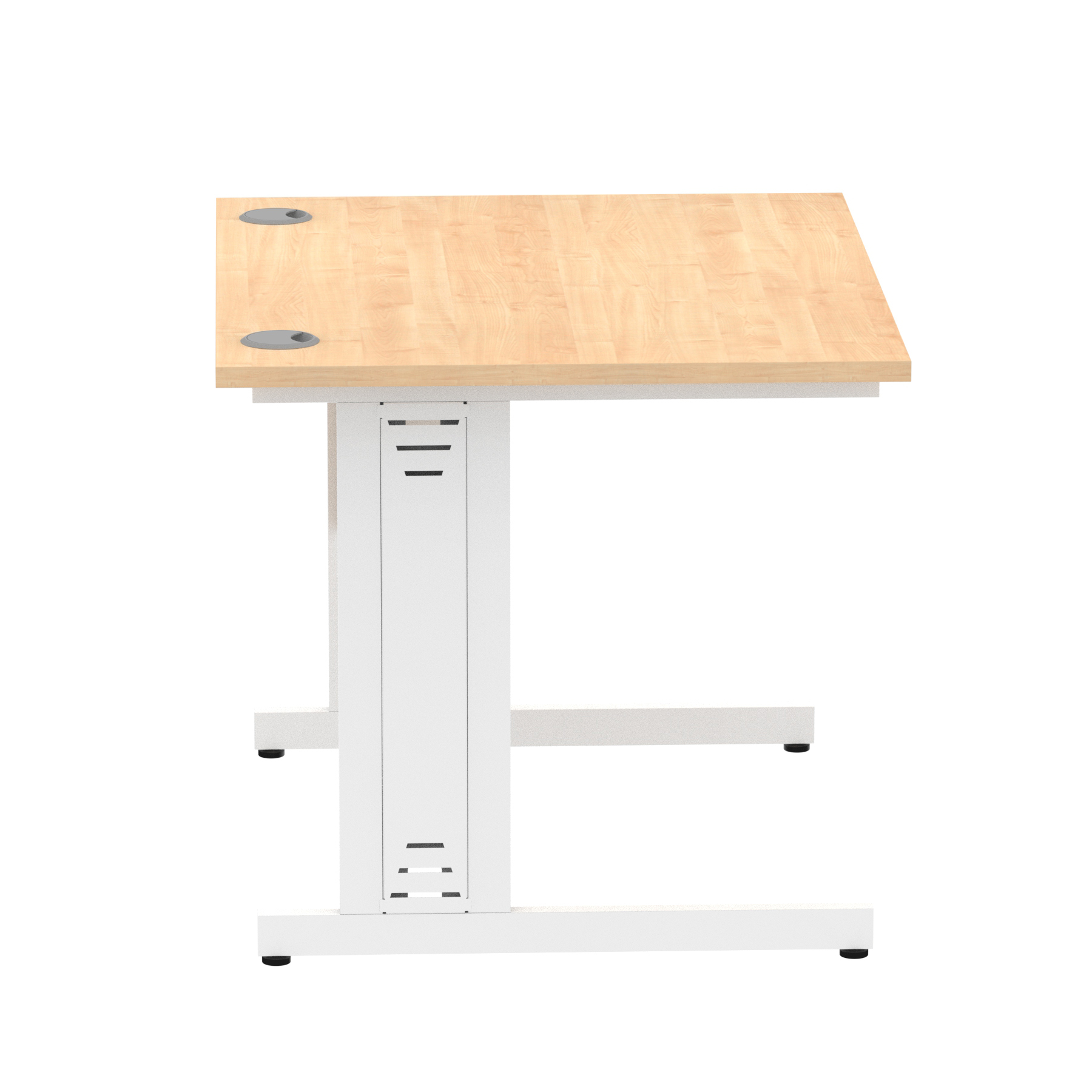 Impulse contract desk | 25mm tops | Wire management panel | Heat resistant melamine finish | 18mm modesty panel | 2mm protective abs edging | Cable managed legs | 2 cable ports | Height adjustable feet | Steel to steel fixings | 2 modesty panel slots | Deep set modesty panel (5″) allows for compatibility of most screen clamp fittings | Weight Capacity 135Kg