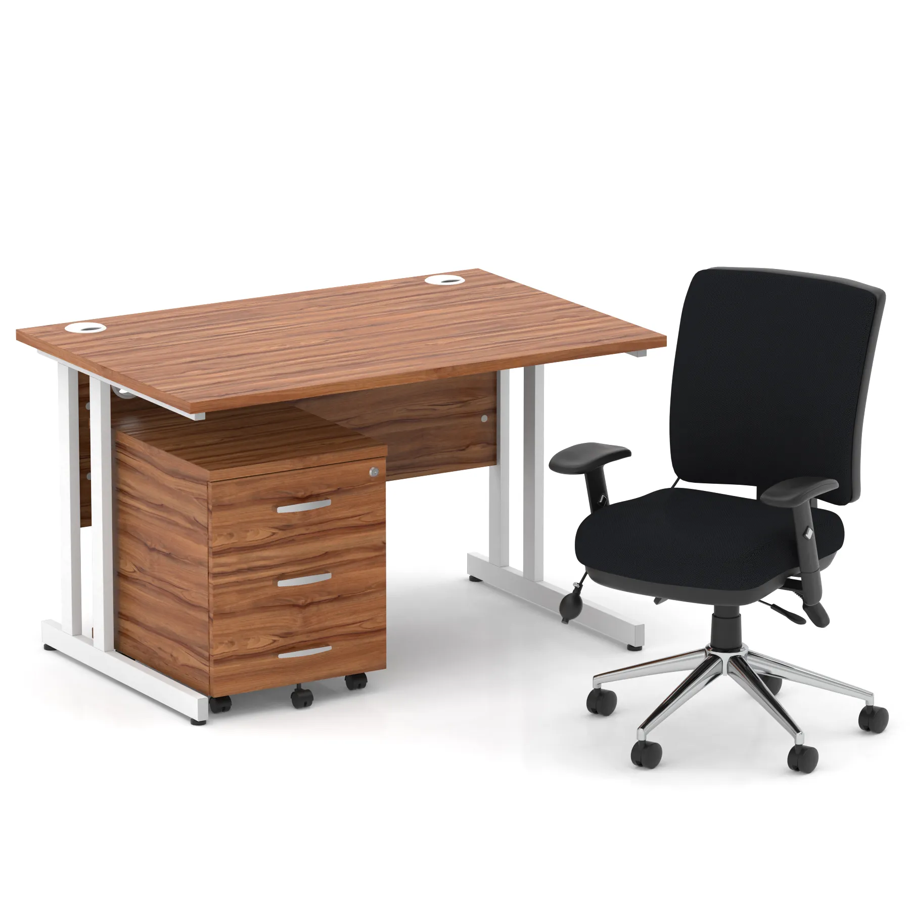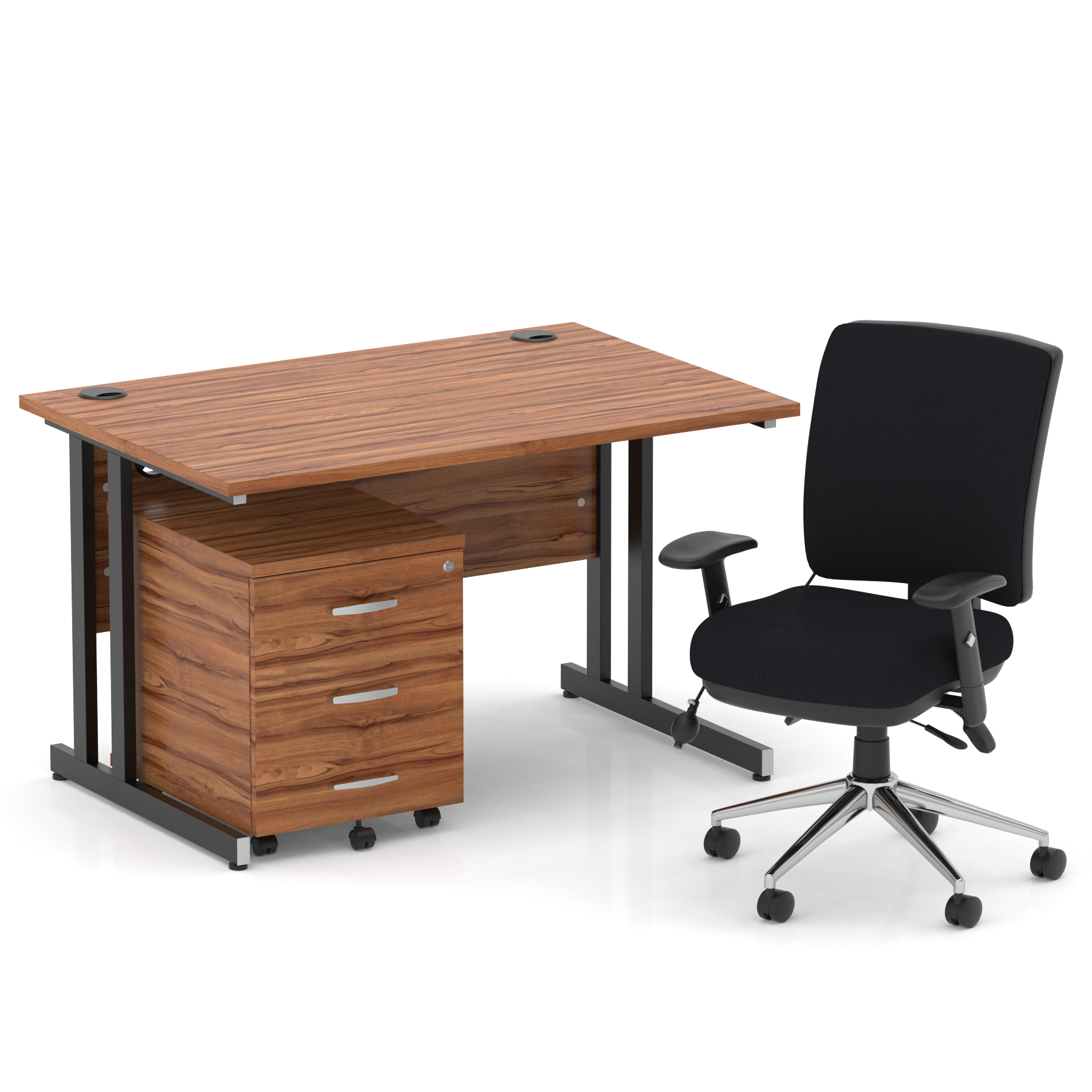 Impulse 1200mm Cantilever Straight Desk With Mobile Pedestal and Chiro Medium Back Black Operator Chair