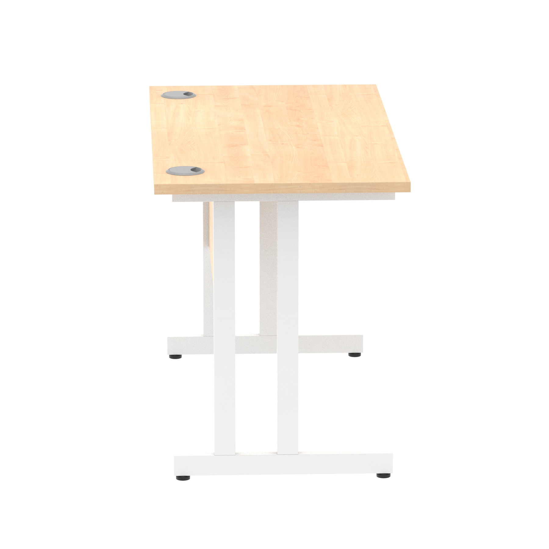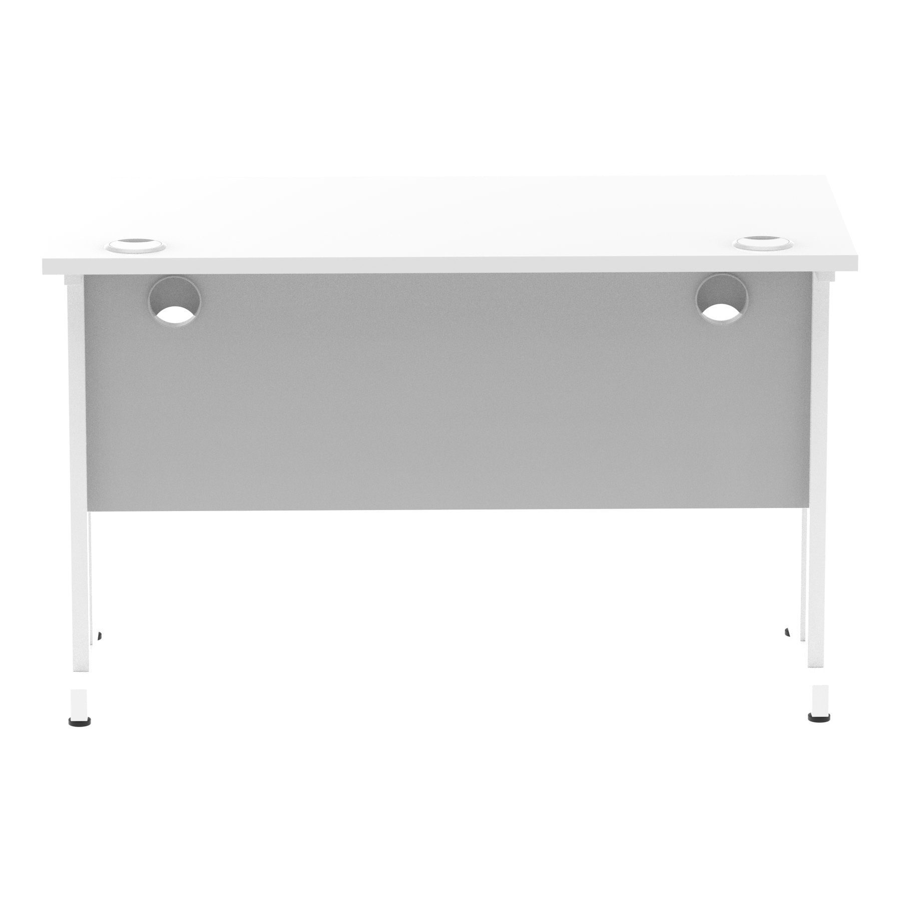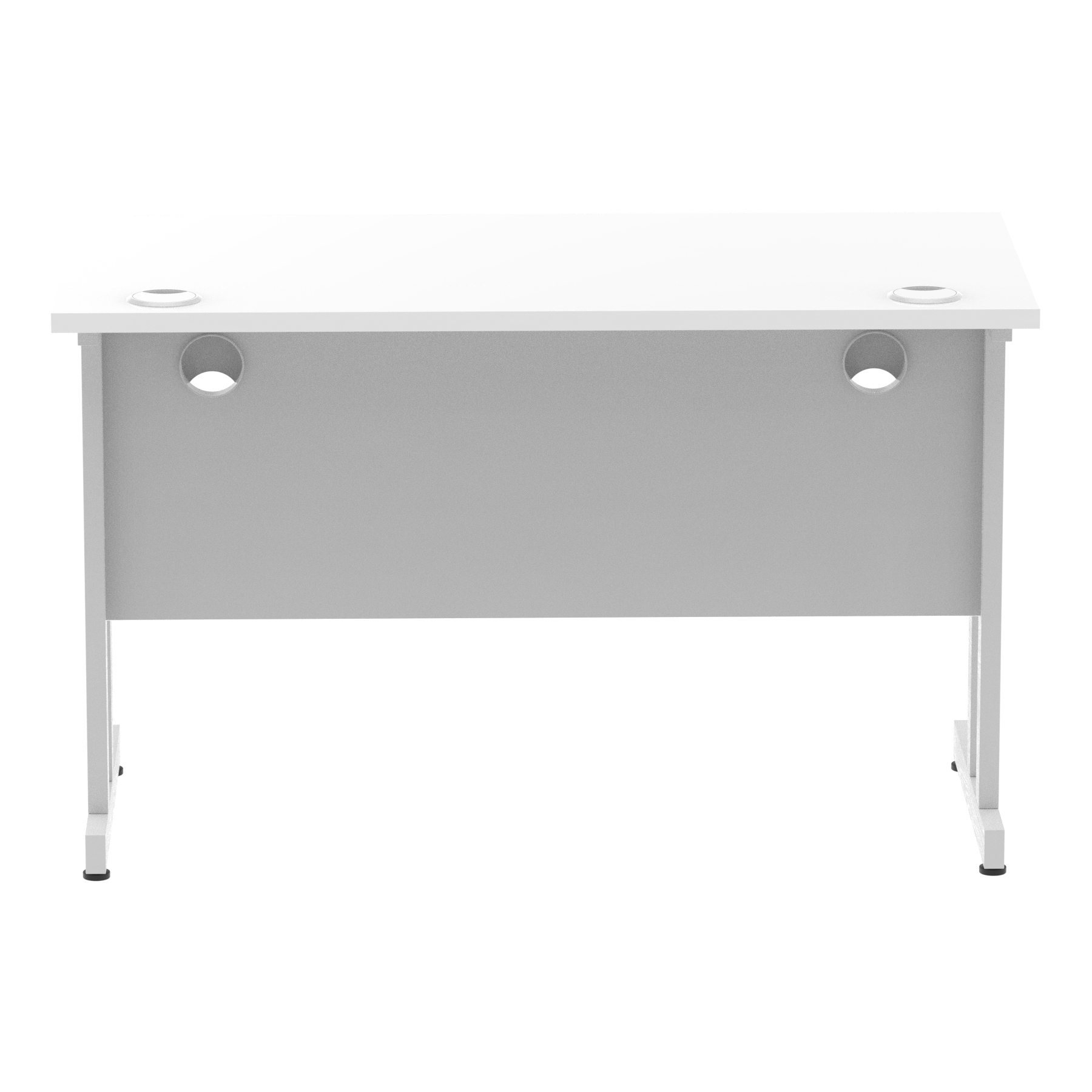Impulse contract desk | 25mm tops | Heat resistant melamine finish | 18mm modesty panels | 2mm protective abs edging | Silver coated double strut legs | 2 cable ports | Height adjustable feet | Steel to steel fixings | 2 modesty panels slots| Deep set modesty panel (5″) allows for compatibility of most screen clamp fittings | Weight Capacity 135Kg