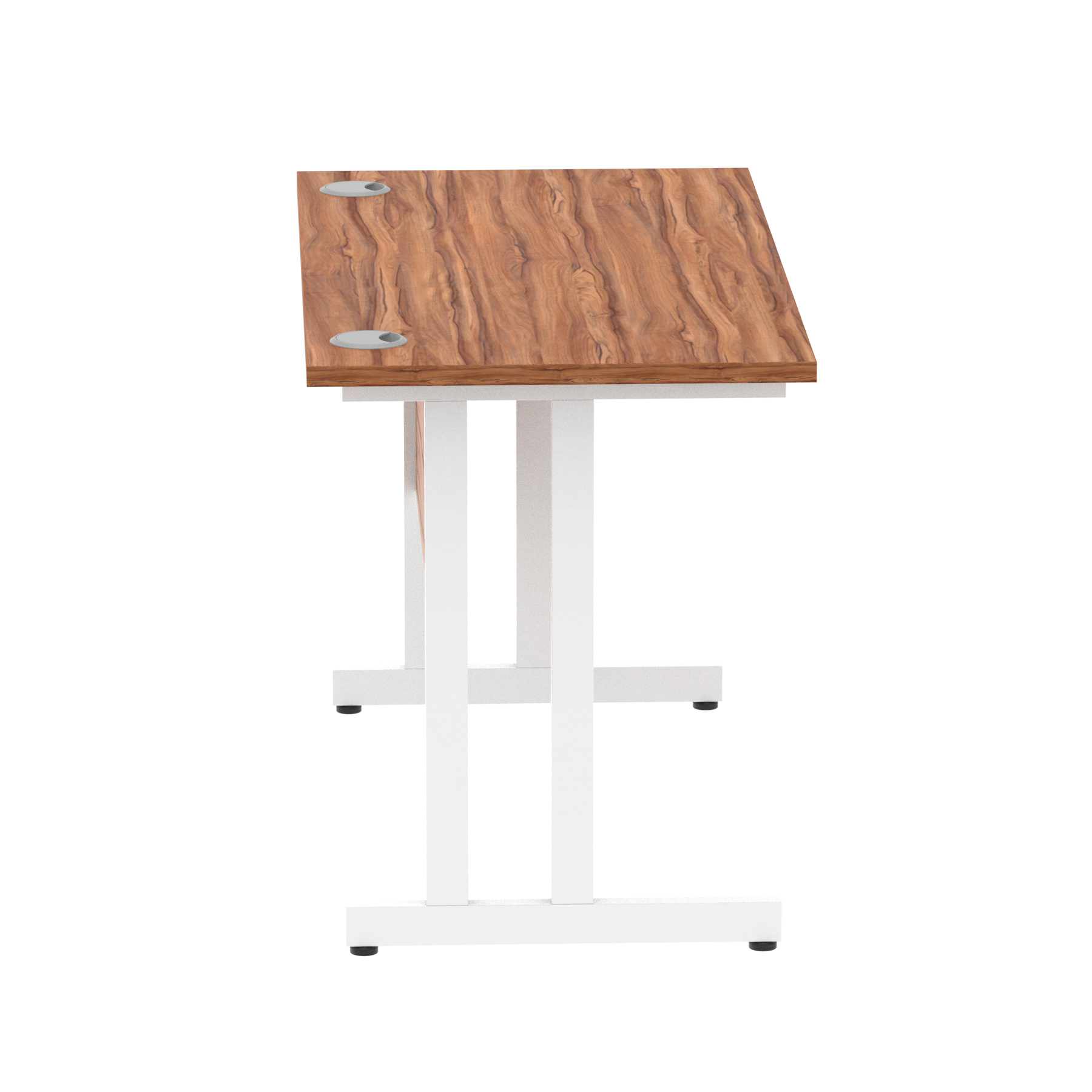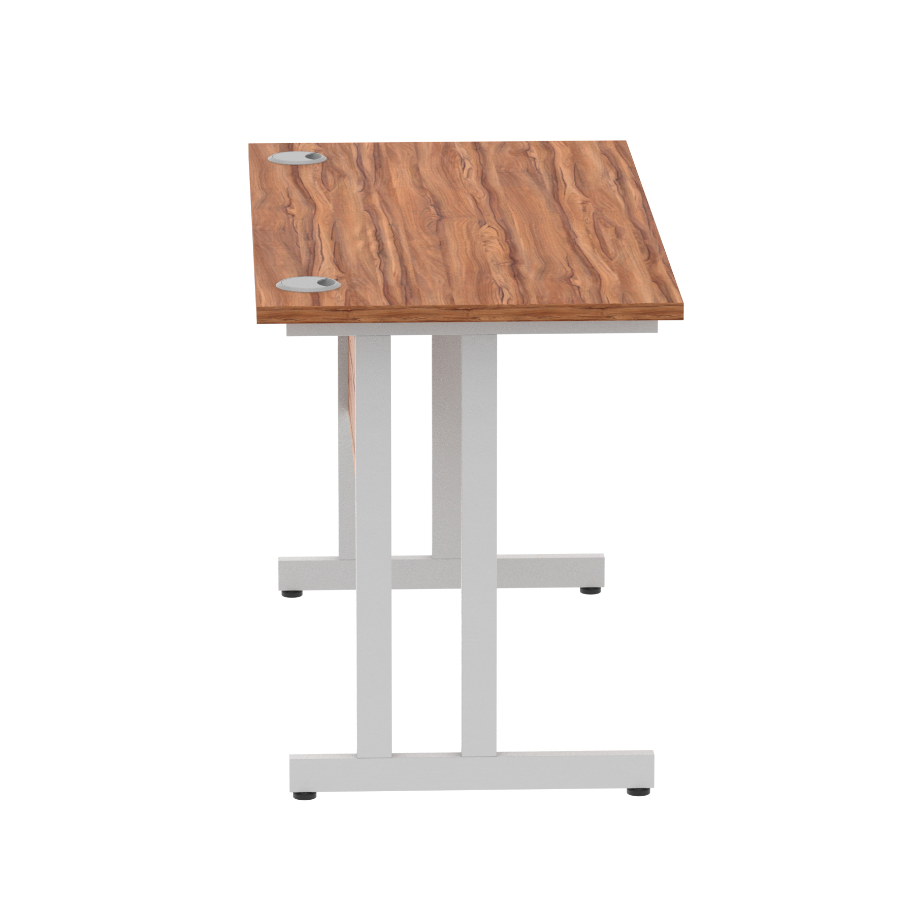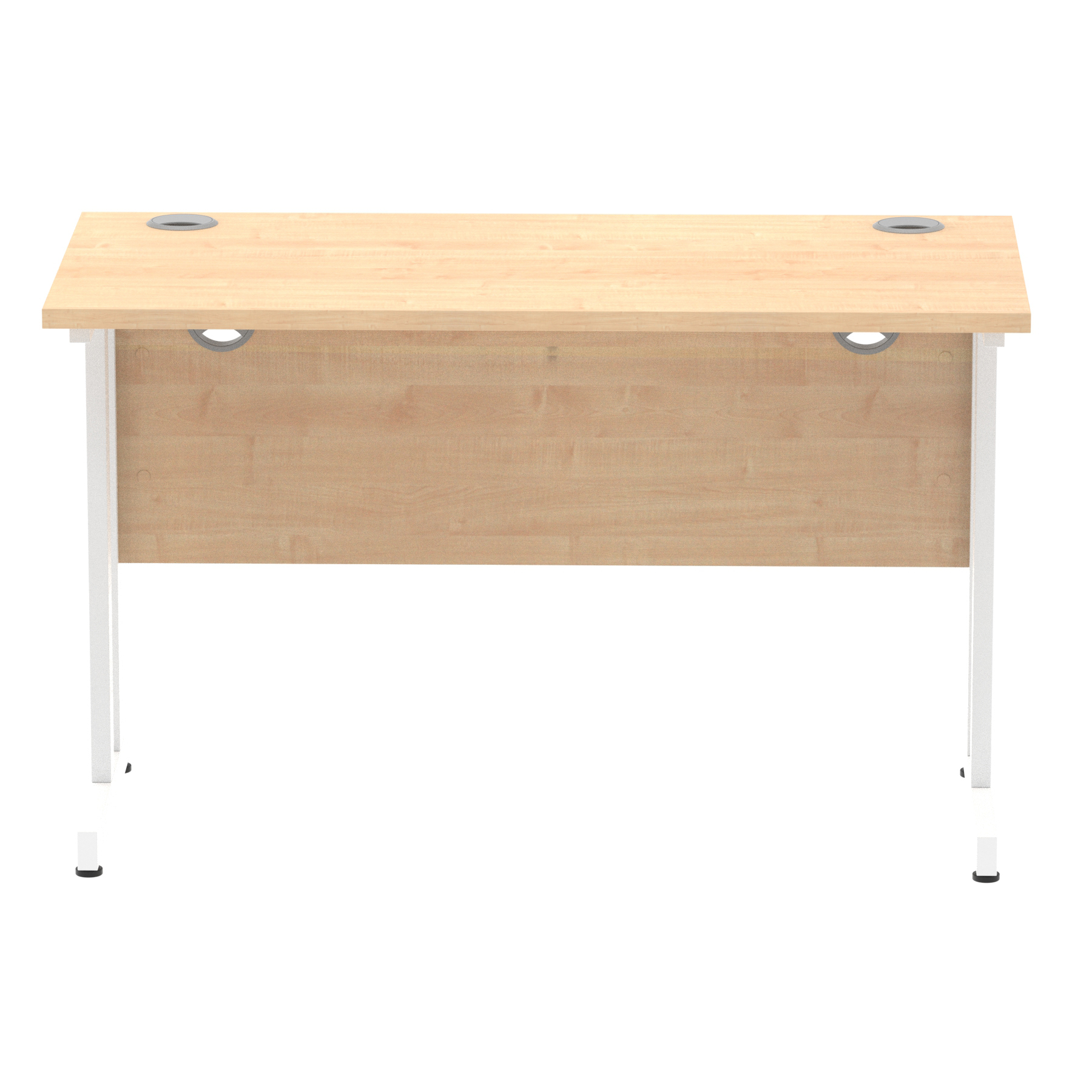 Impulse contract desk | 25mm tops | Heat resistant melamine finish | 18mm modesty panels | 2mm protective abs edging | Silver coated double strut legs | 2 cable ports | Height adjustable feet | Steel to steel fixings | 2 modesty panels slots| Deep set modesty panel (5″) allows for compatibility of most screen clamp fittings | Weight Capacity 135Kg