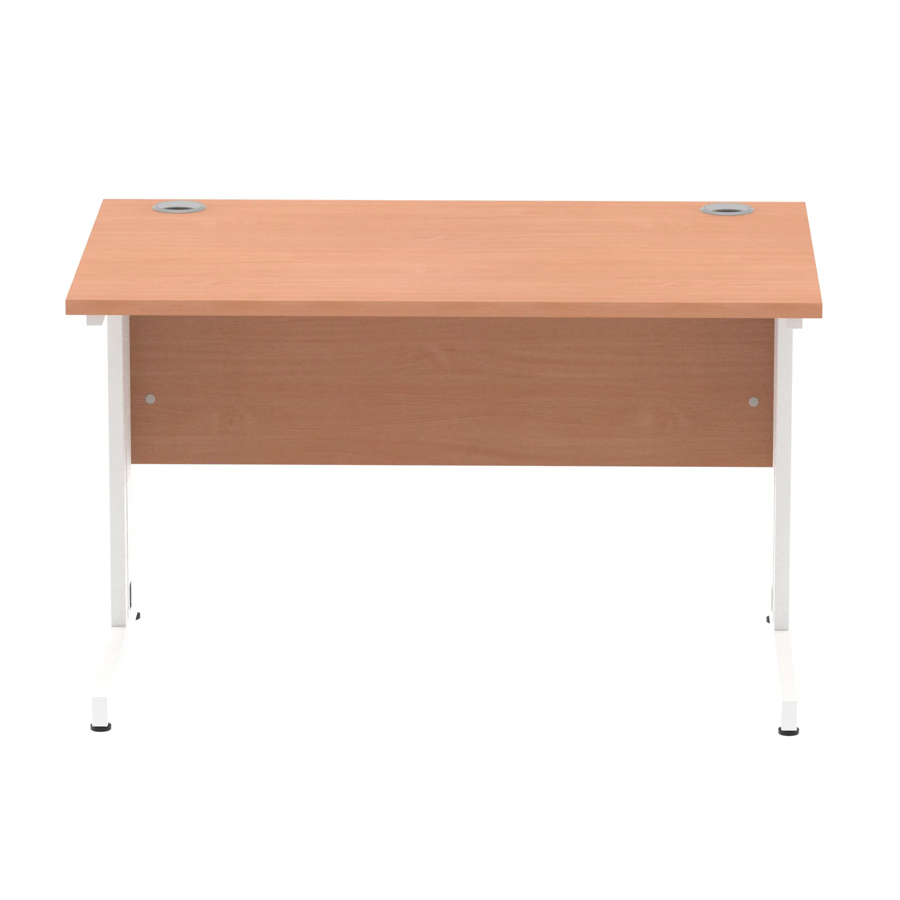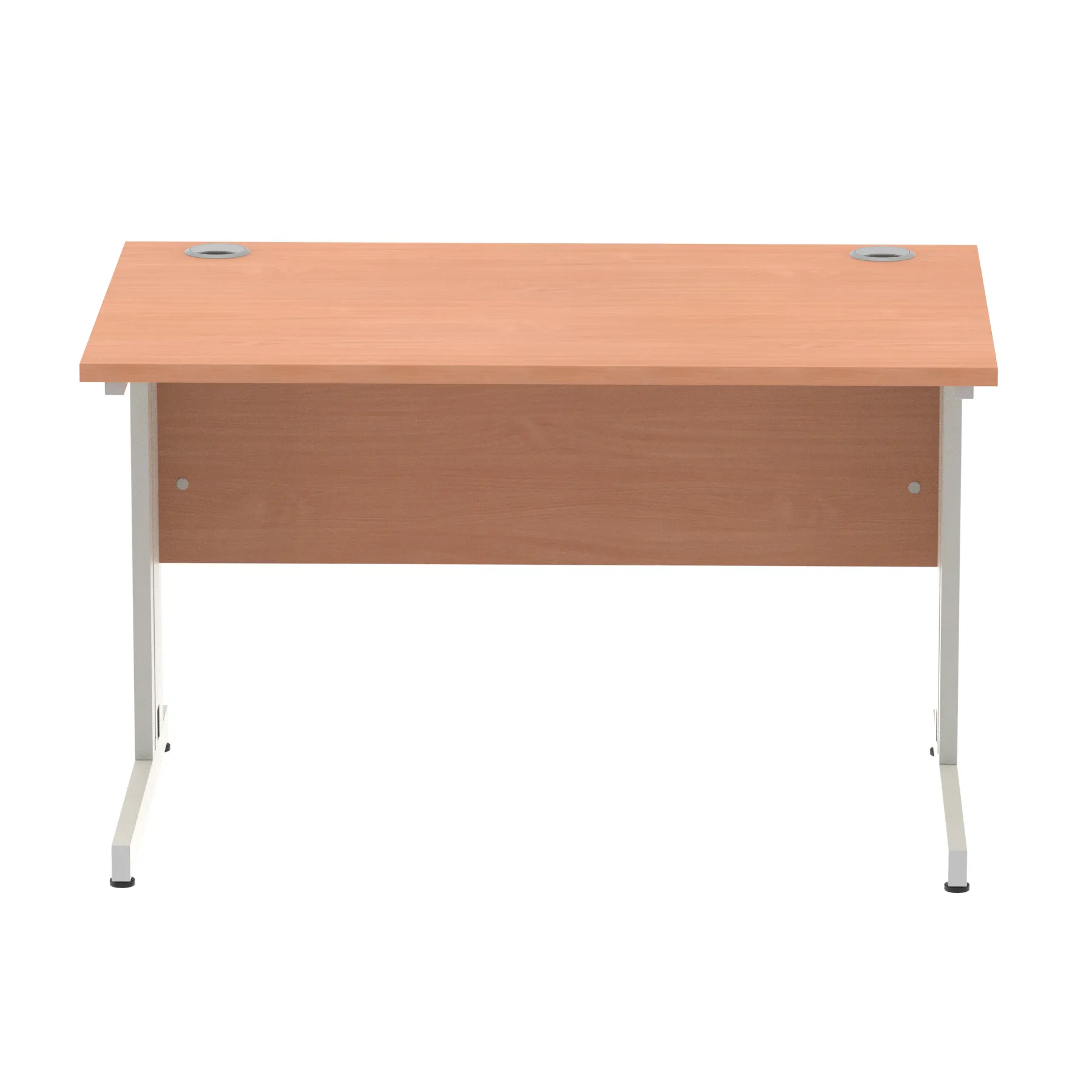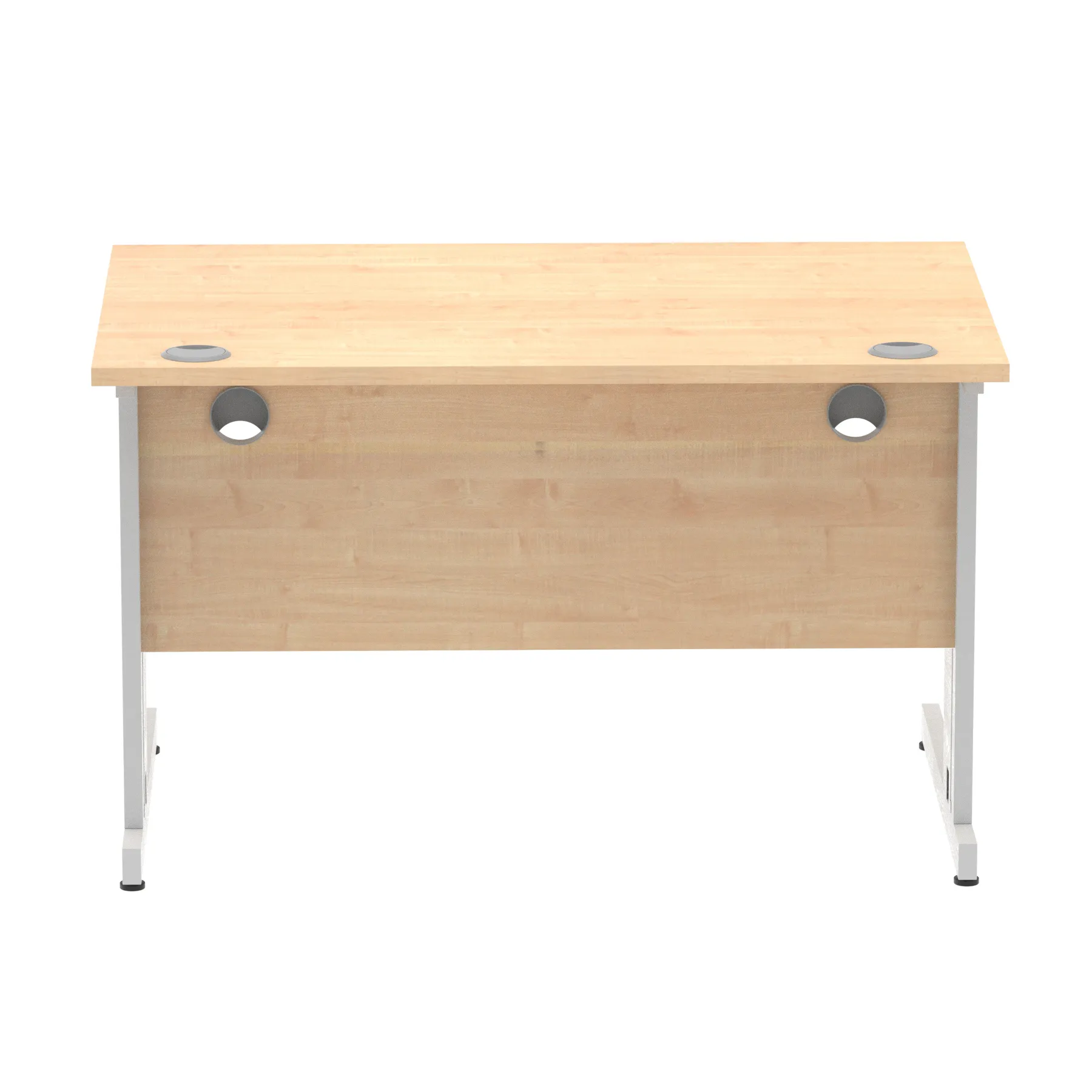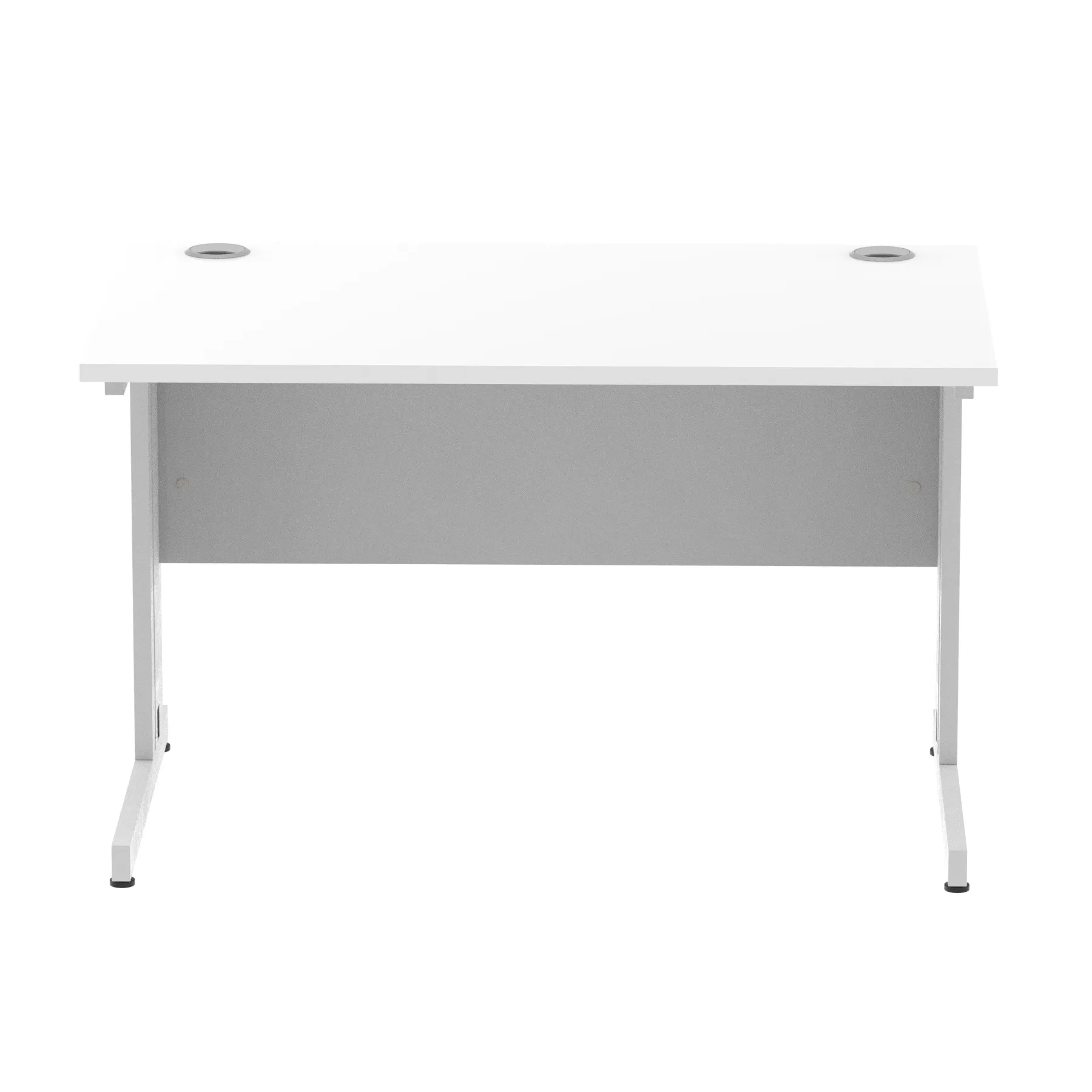 Impulse contract desk | 25mm tops | wire management panel | Heat resistant melamine finish | 18mm modesty panel | 2mm protective abs edging | Silver coated double strut legs | 2 cable ports | Height adjustable feet | Steel to steel fixings | 2 modesty panel slots | Deep set modesty panel (5″) allows for compatibility of most screen clamp fittings | Weight Capacity 135Kg