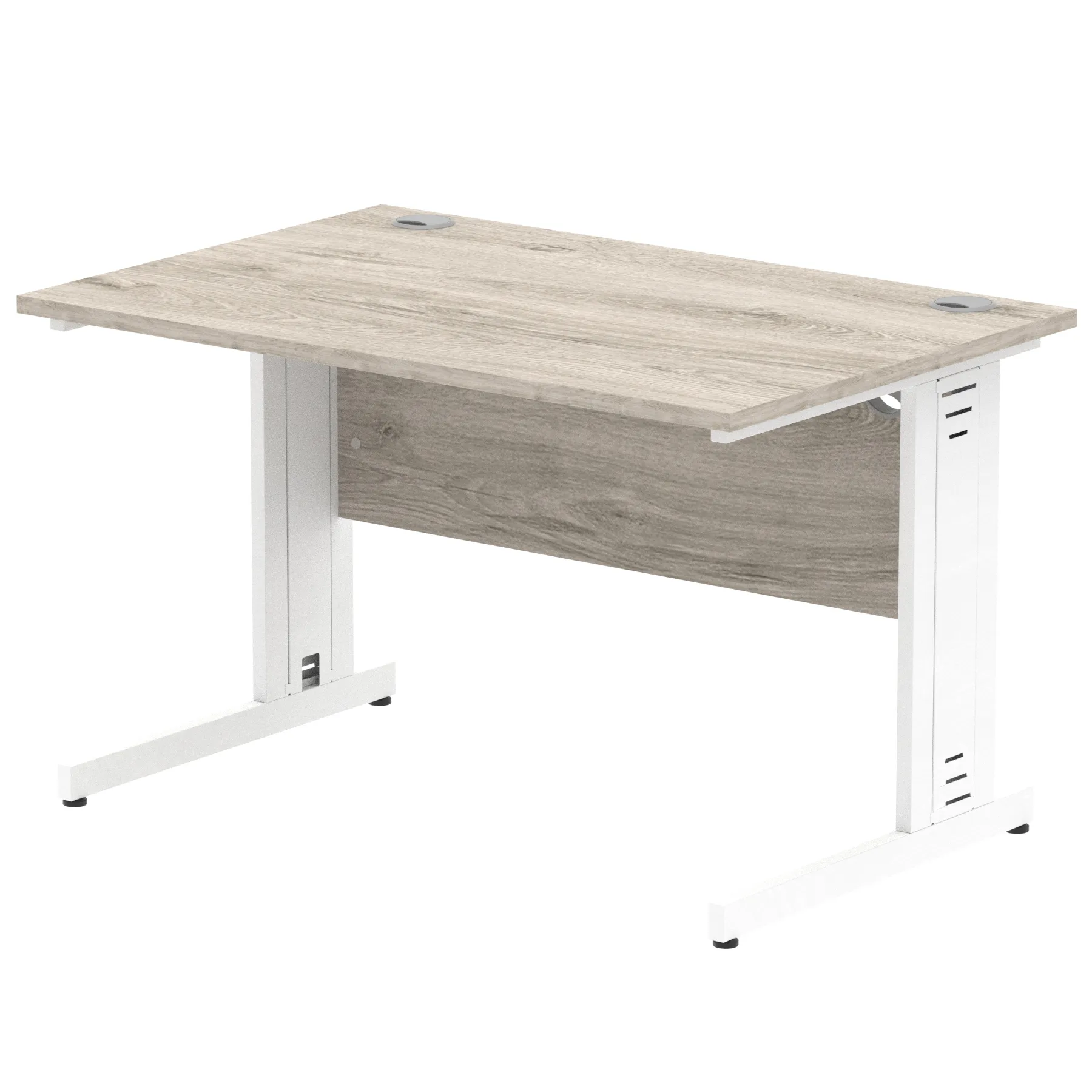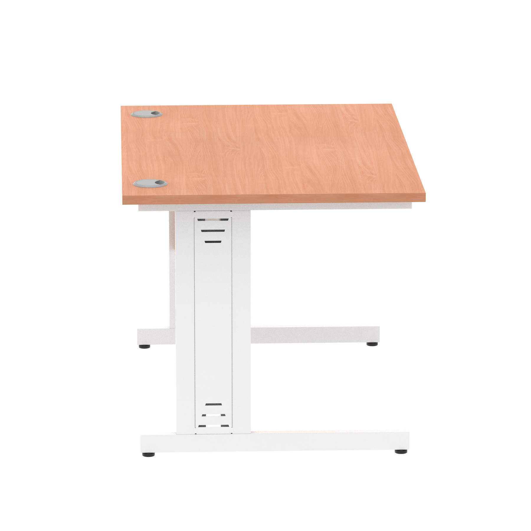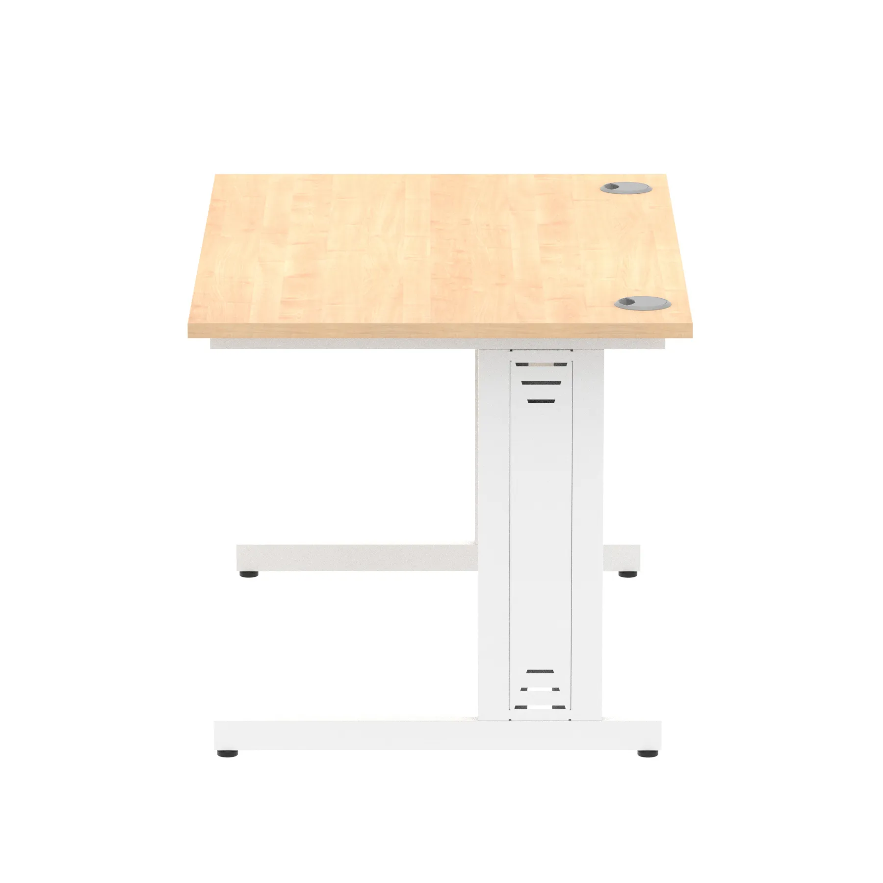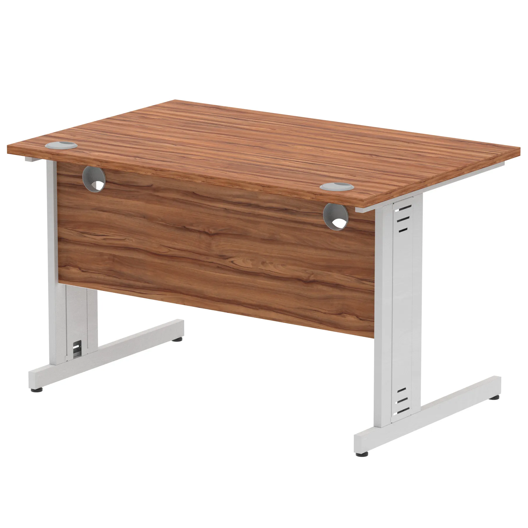 Impulse contract desk | 25mm tops | wire management panel | Heat resistant melamine finish | 18mm modesty panel | 2mm protective abs edging | Silver coated double strut legs | 2 cable ports | Height adjustable feet | Steel to steel fixings | 2 modesty panel slots | Deep set modesty panel (5″) allows for compatibility of most screen clamp fittings | Weight Capacity 135Kg