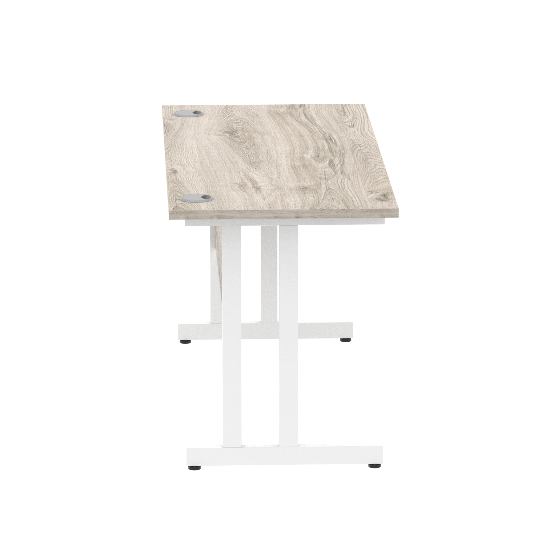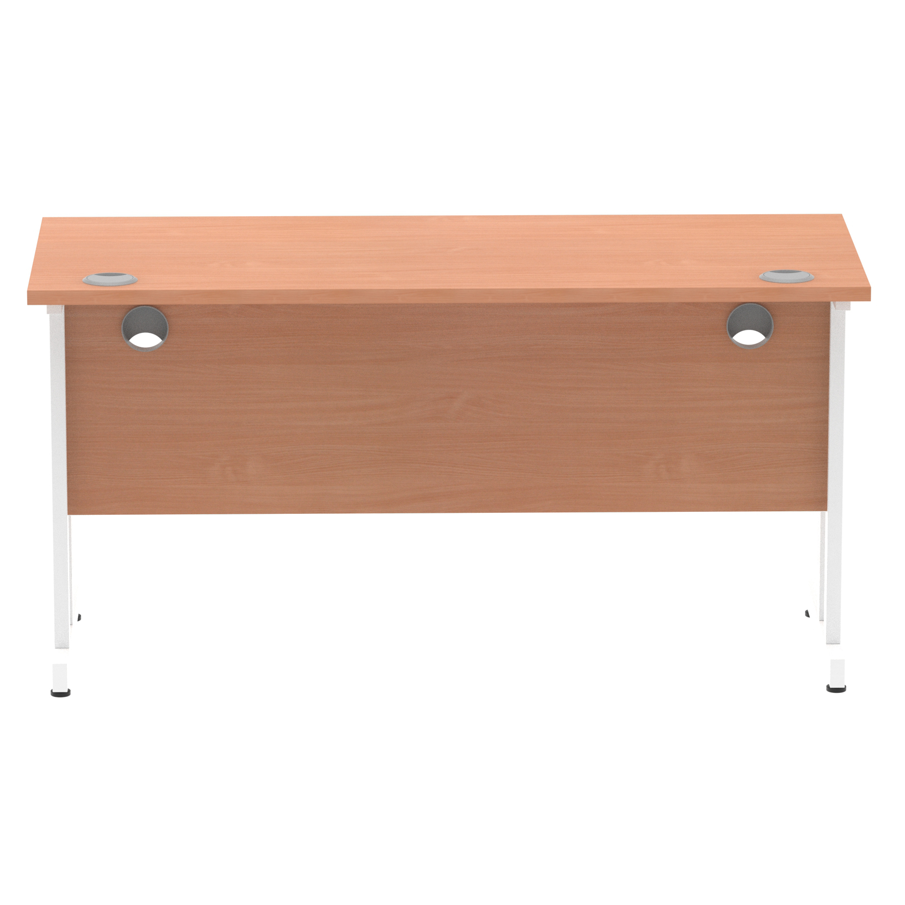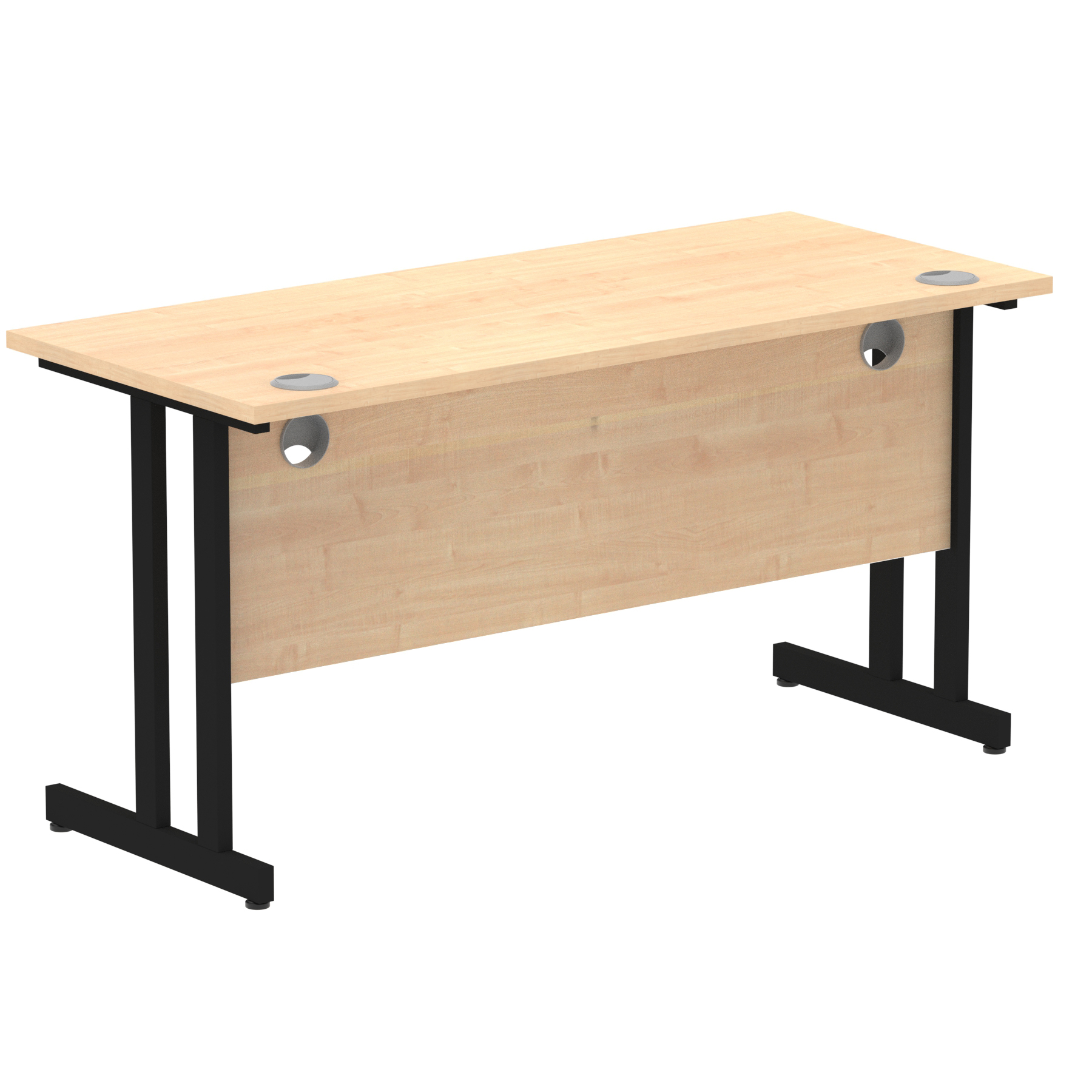 Impulse contract desk | 25mm tops | Heat resistant melamine finish | 18mm modesty panels | 2mm protective abs edging | Silver coated double strut legs | 2 cable ports | Height adjustable feet | Steel to steel fixings | 2 modesty panels slots |Deep set modesty panel (5″) allows for compatibility of most screen clamp fittings | Weight Capacity 135Kg