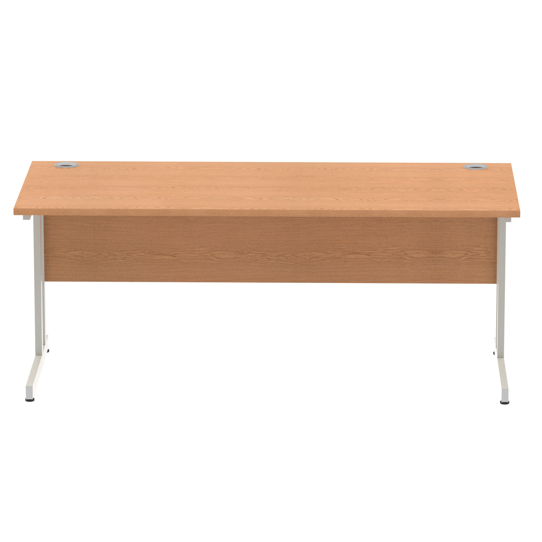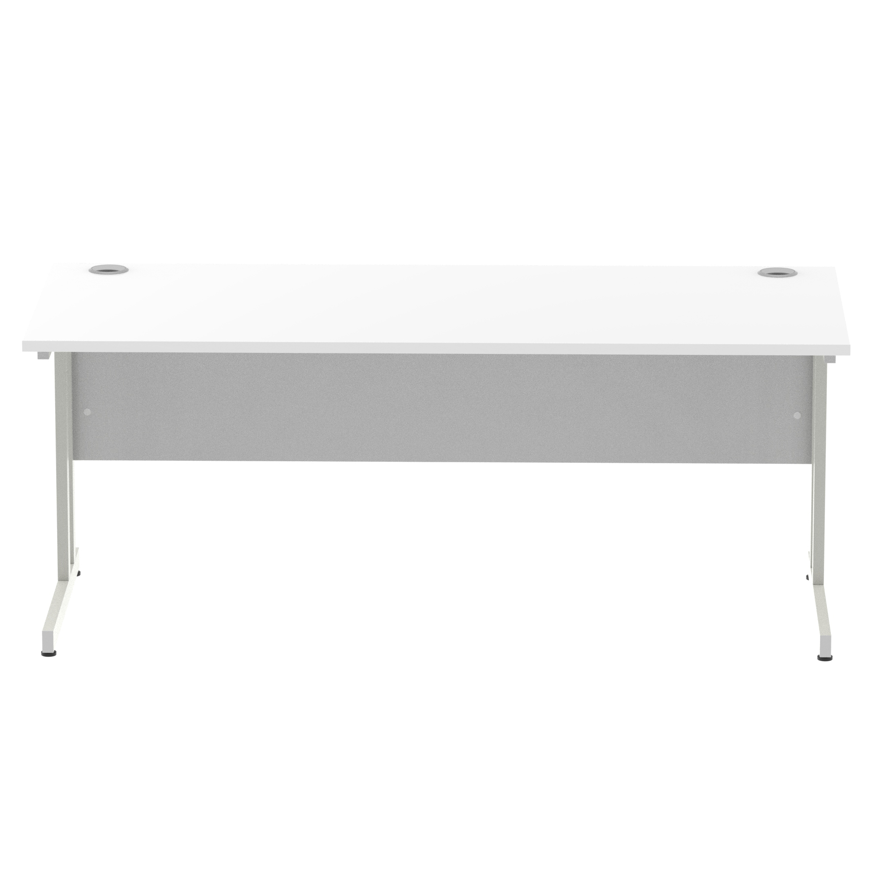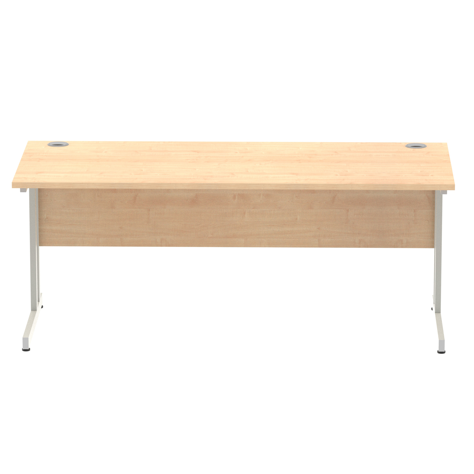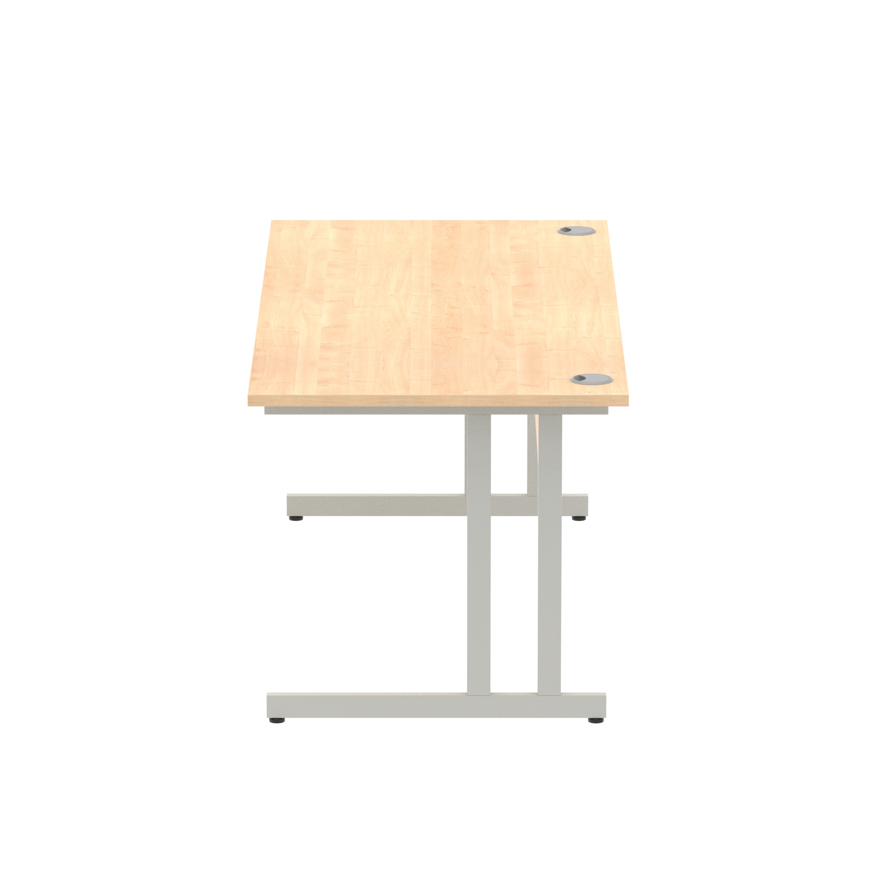 Impulse contract desk | 25mm tops | Heat resistant melamine finish | 18mm modesty panels | 2mm protective abs edging | Double strut legs | 2 cable ports | Height adjustable feet | Steel to steel fixings | 2 modesty panels Ports| Deep set modesty panel (5″) allows for compatibility of most screen clamp fittings | Weight Capacity 135Kg