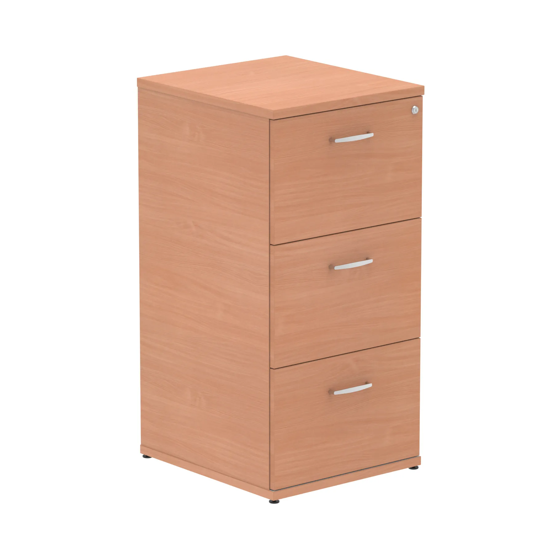 Impulse contract filing cabinet | 25mm top | Full 18mm back board | 2mm abs protective edges | Steel handles | Solid box drawer construction | Fits foolscap filing | Steel to steel fixings | Lockable drawers | Heat resistant beech melamine finish | Anti tilt fitted | Weight Capacity: 20Kg per drawer