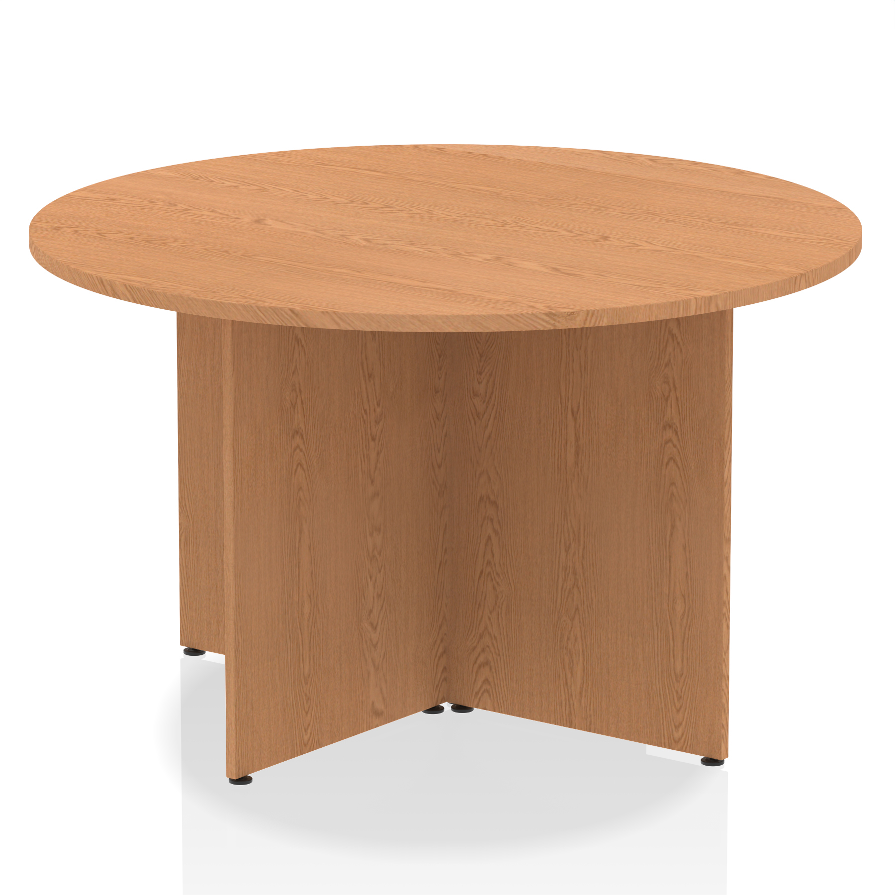 Impulse freestanding meeting table | Provides excellent team working environment | 25mm thick top | Distinctive arrowhead legs | 2mm abs protective edging | Heat resistant beech melamine finish | Steel to steel fittings | Weight Capacity 100Kg
