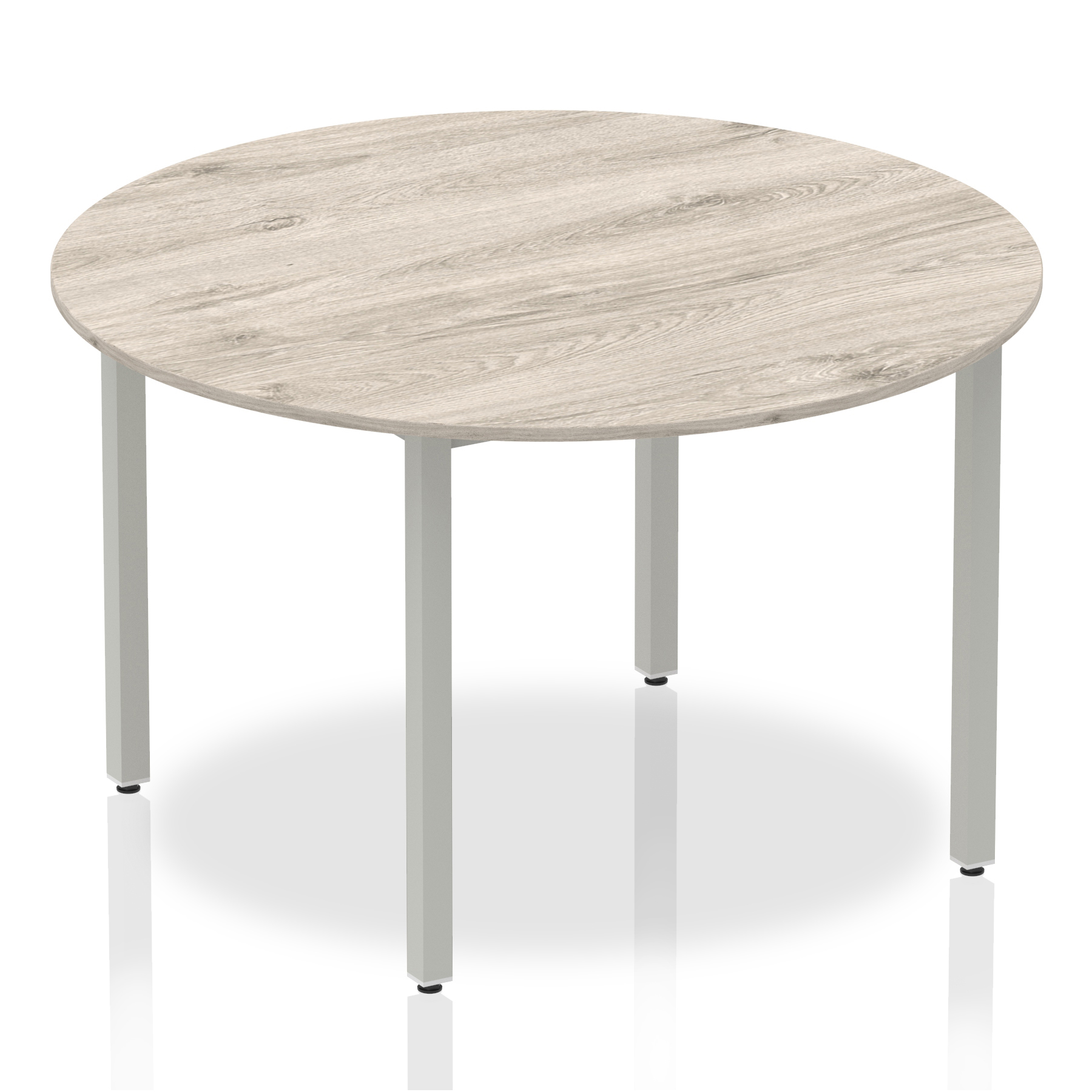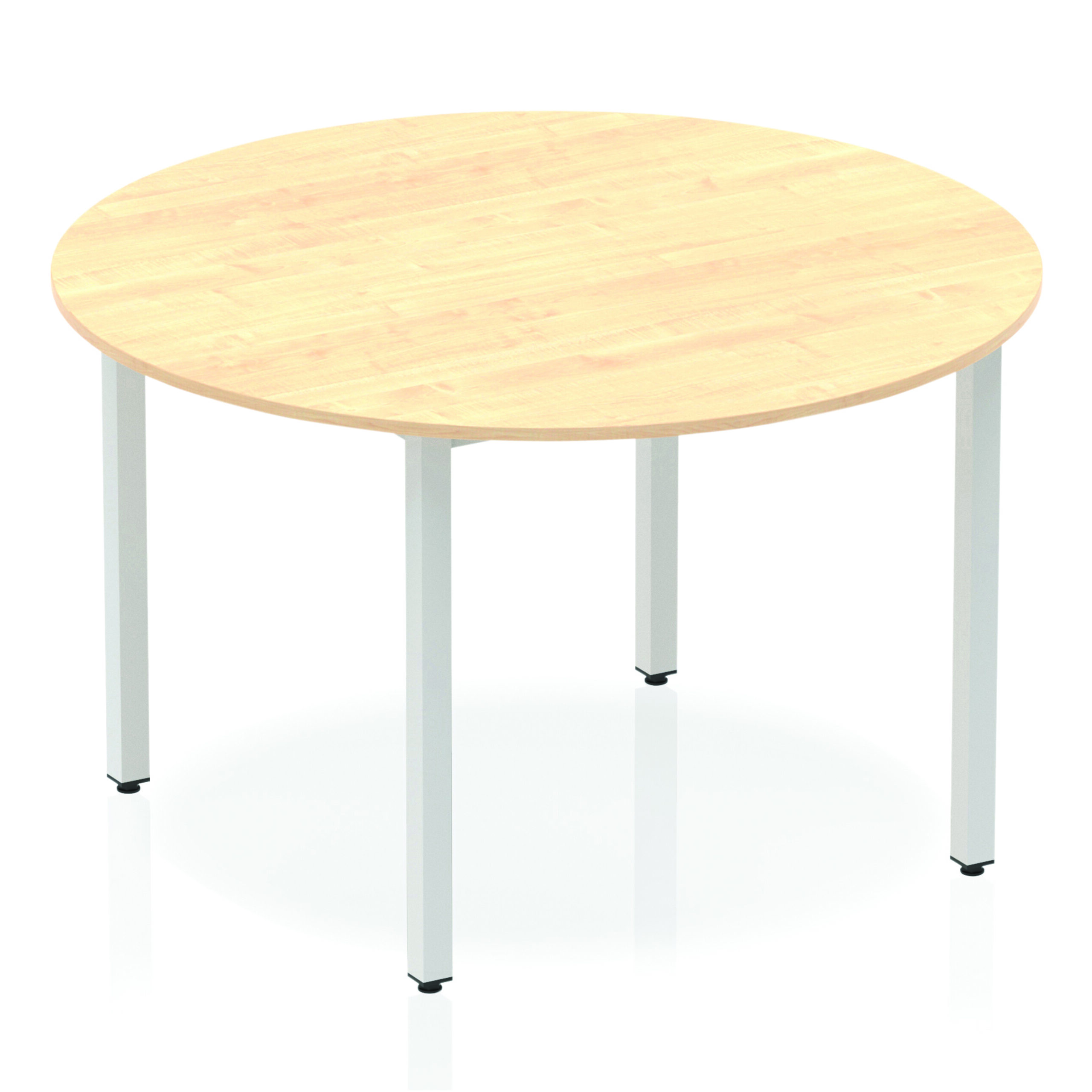 Impulse freestanding meeting table • Classic circular shape • Provides excellent team working environment • 18mm thick top • Attractive silver coated box frame leg • 2mm abs protective edging • Heat resistant beech melamine finish • Weight Capacity: 100Kg