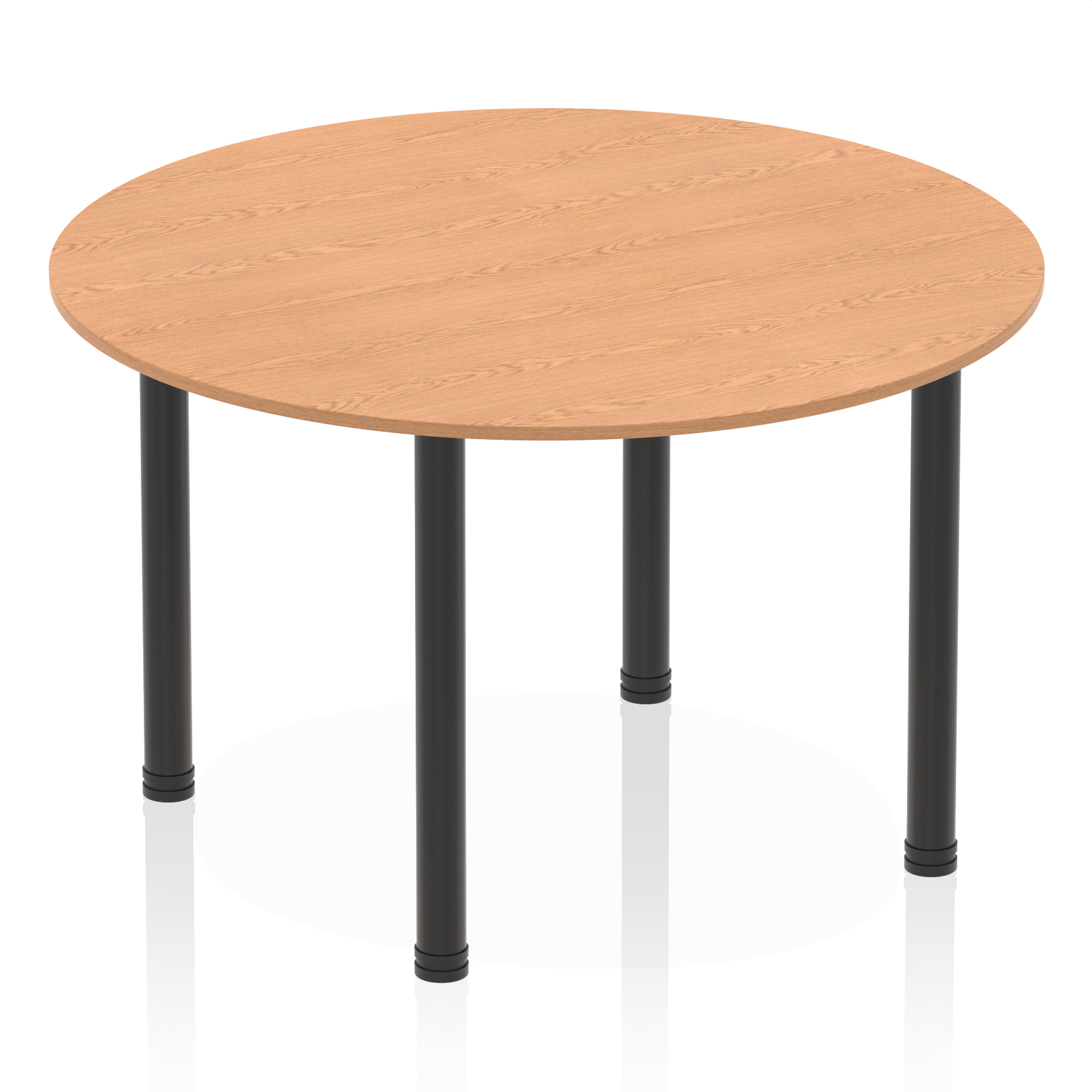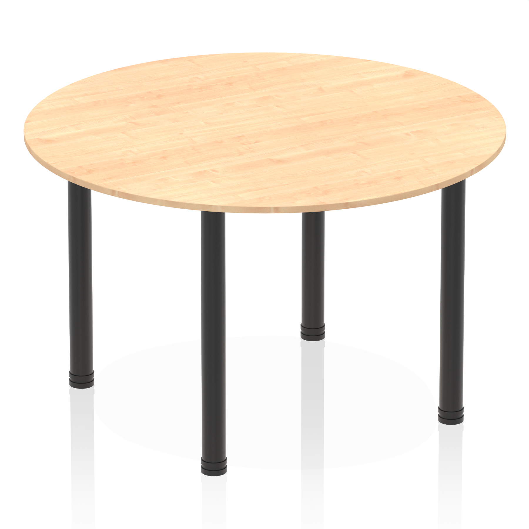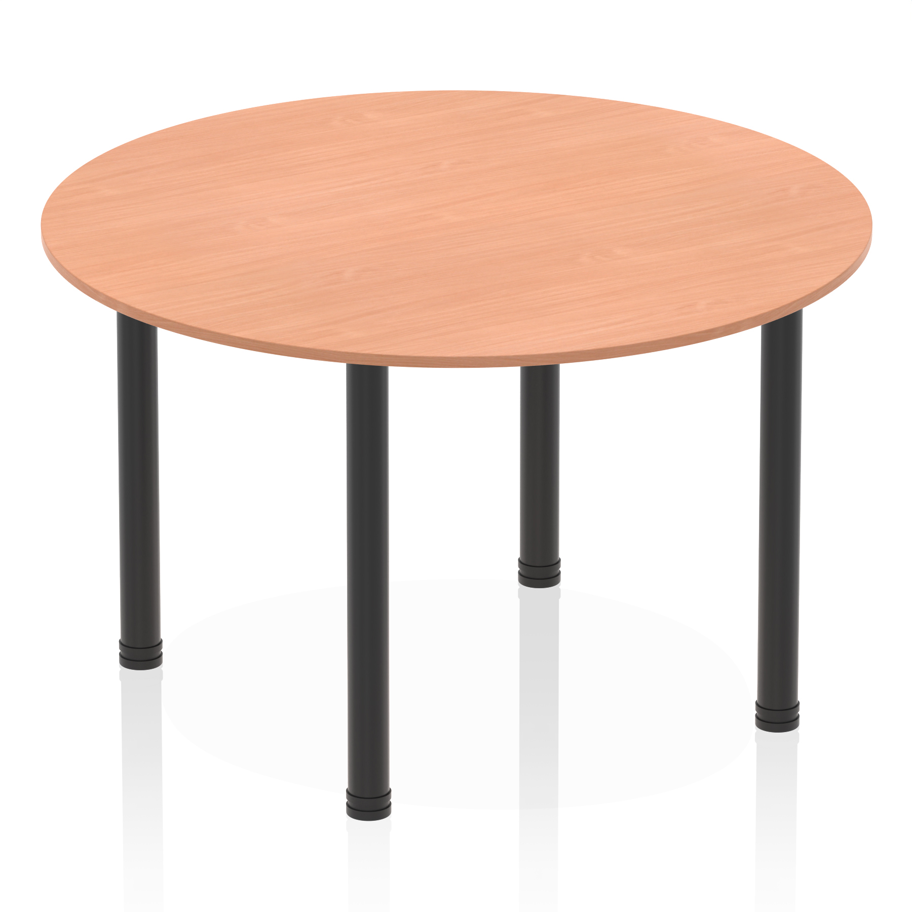 Impulse freestanding meeting table | Provides excellent team working environment | 25mm thick top | Attractive black coated leg | 2mm abs protective edging | Heat resistant beech melamine finish | Steel to steel fittings | Weight Capacity 100Kg