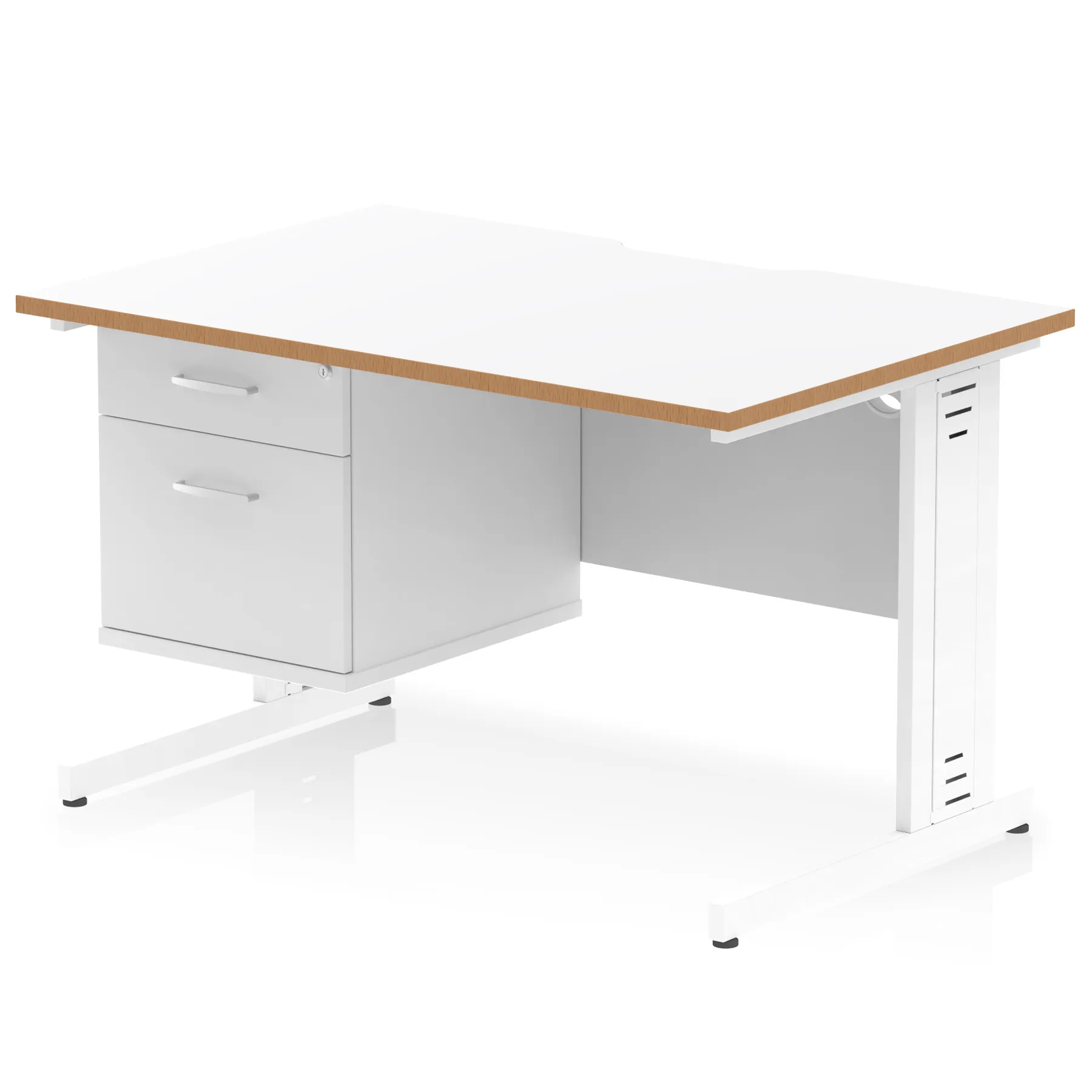 Impulse Scalloped Edge 1200mm Cable Managed Straight Desk With Single Fixed Pedestal