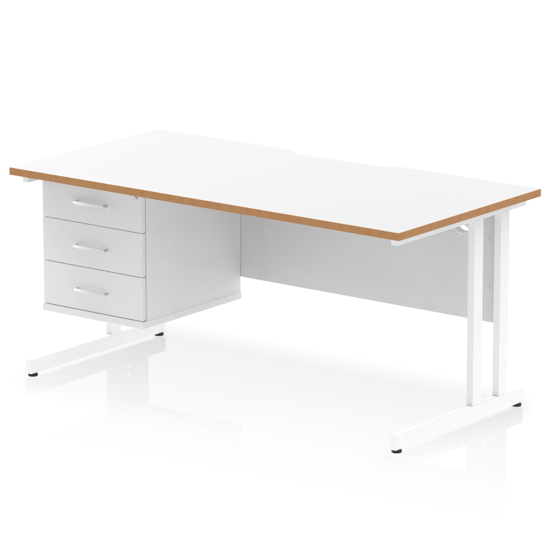 Impulse Scalloped Edge 1600mm Cable Managed Straight Desk With Single Fixed Pedestal