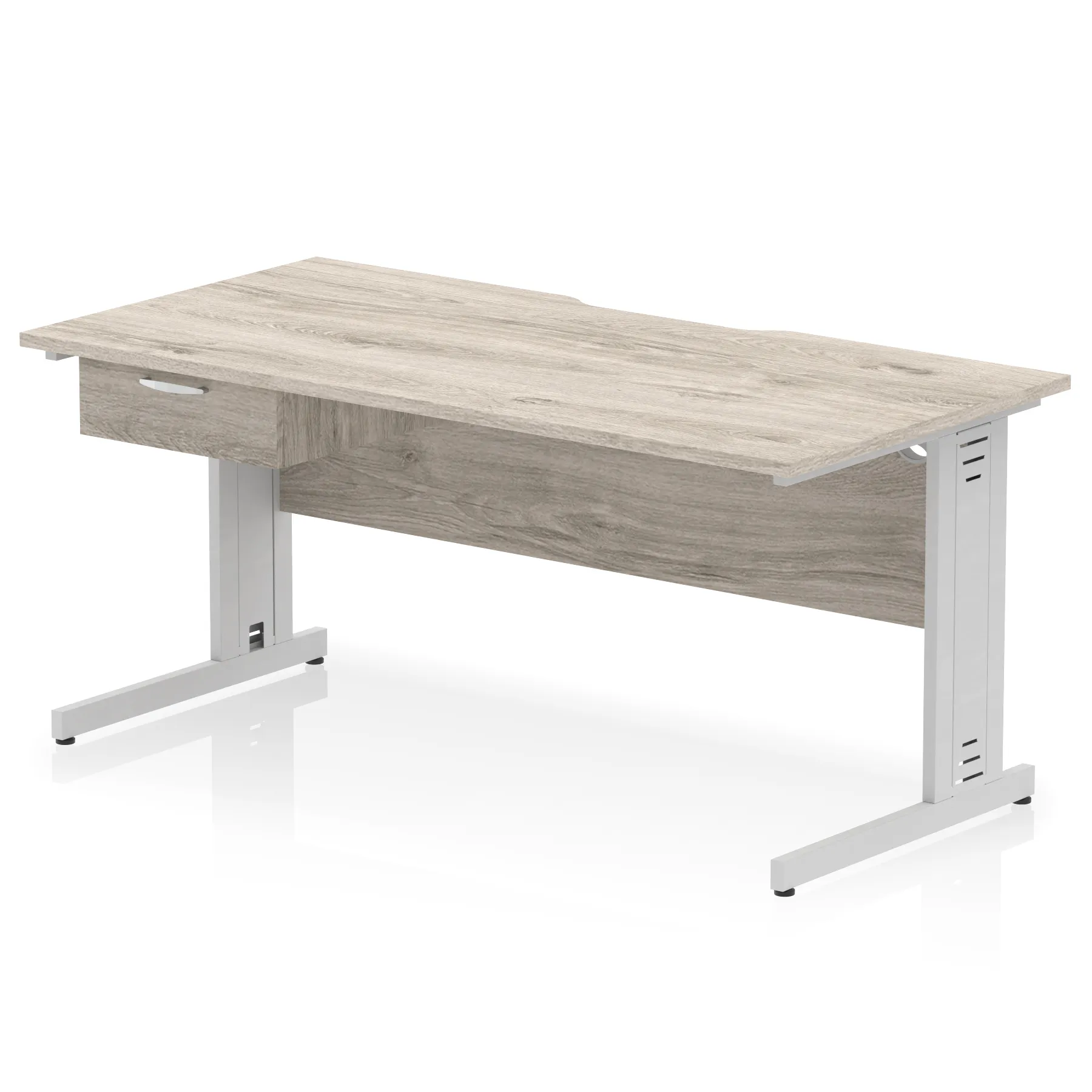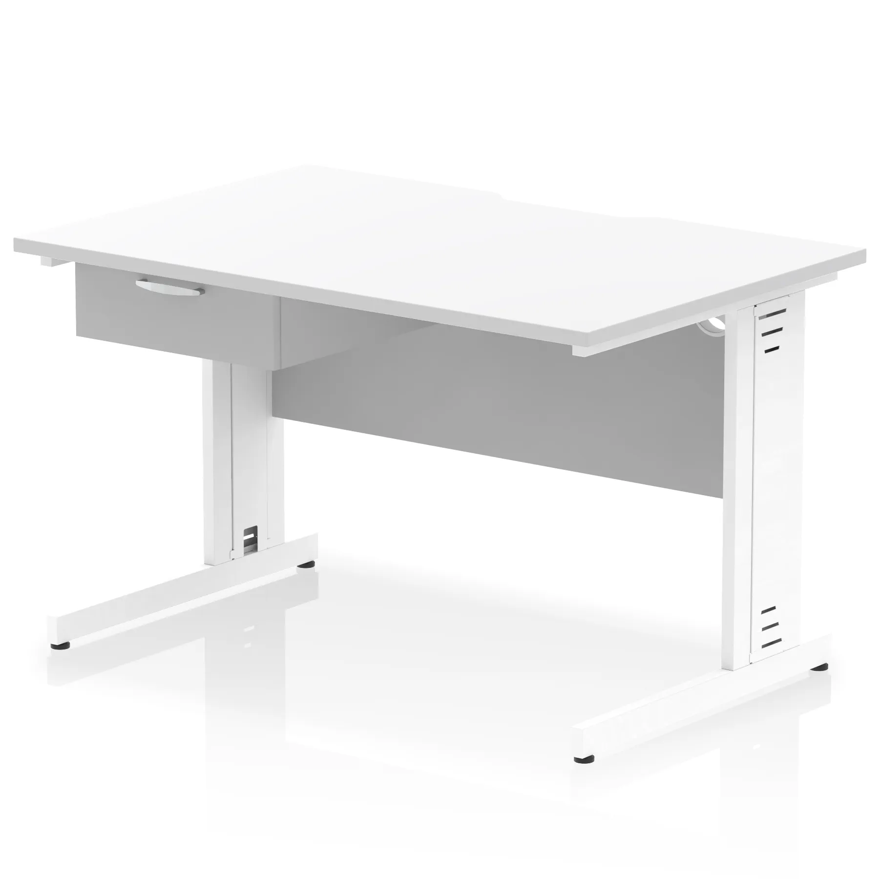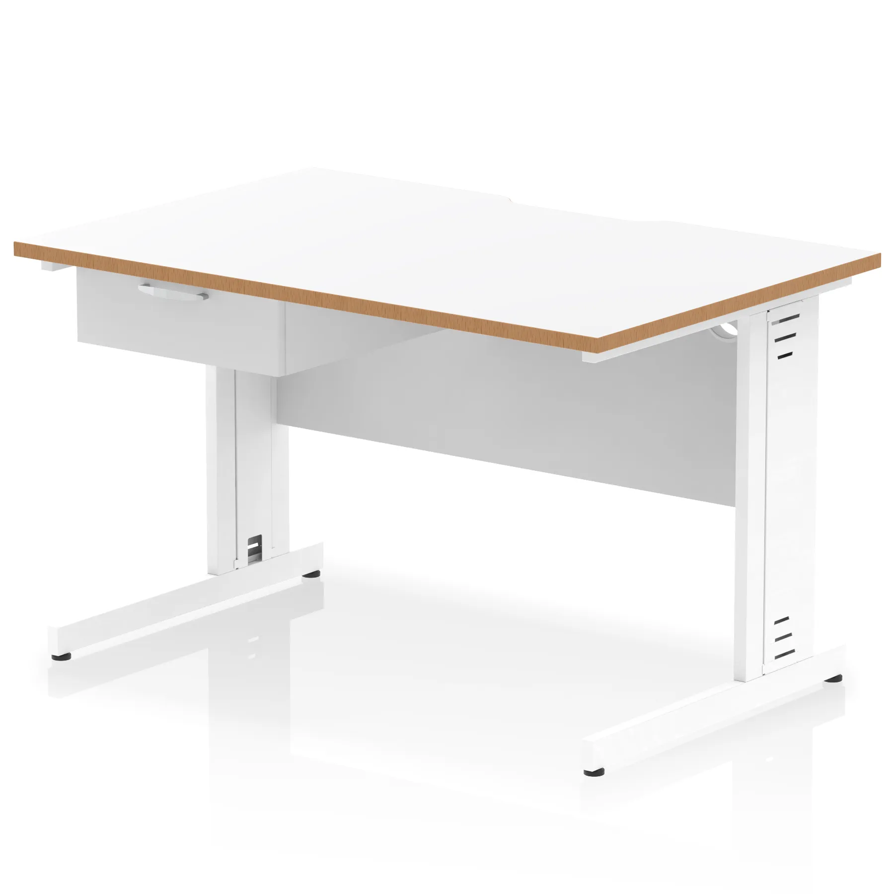 Impulse Scalloped Edge Cable Managed Straight Desk With Single One Drawer Fixed Pedestal