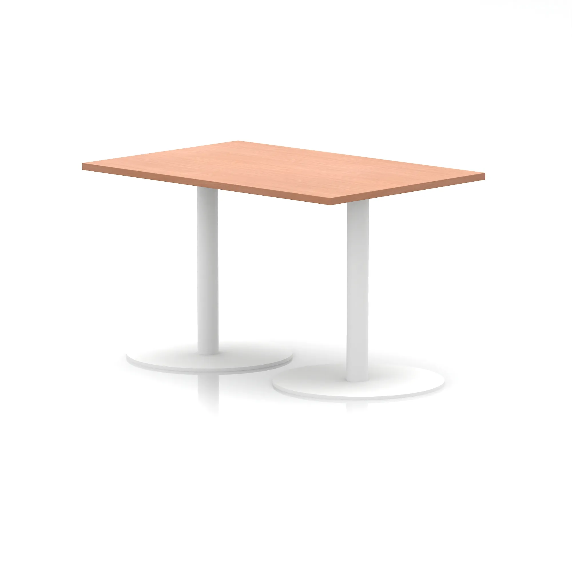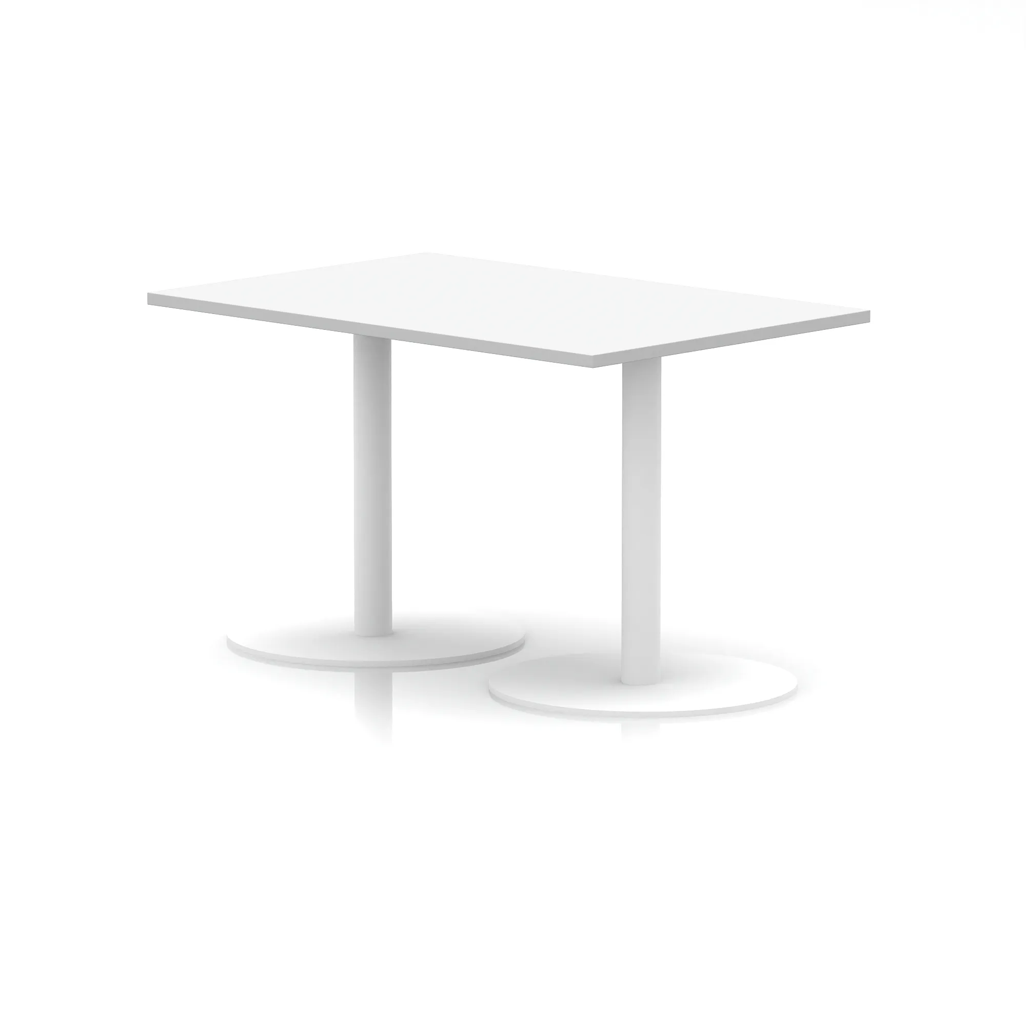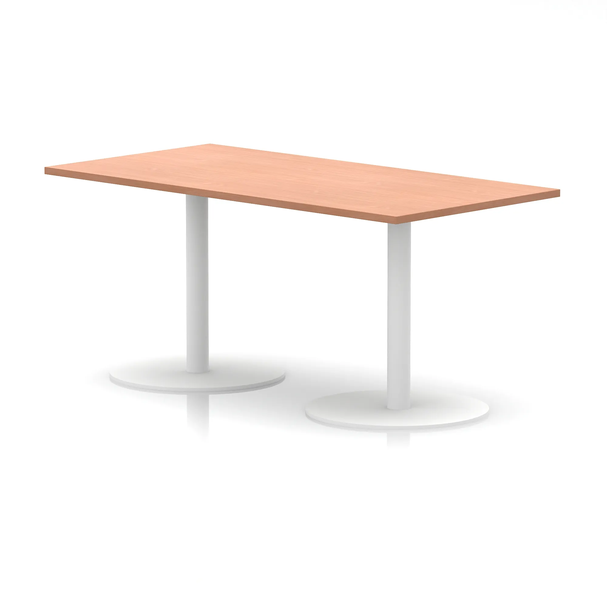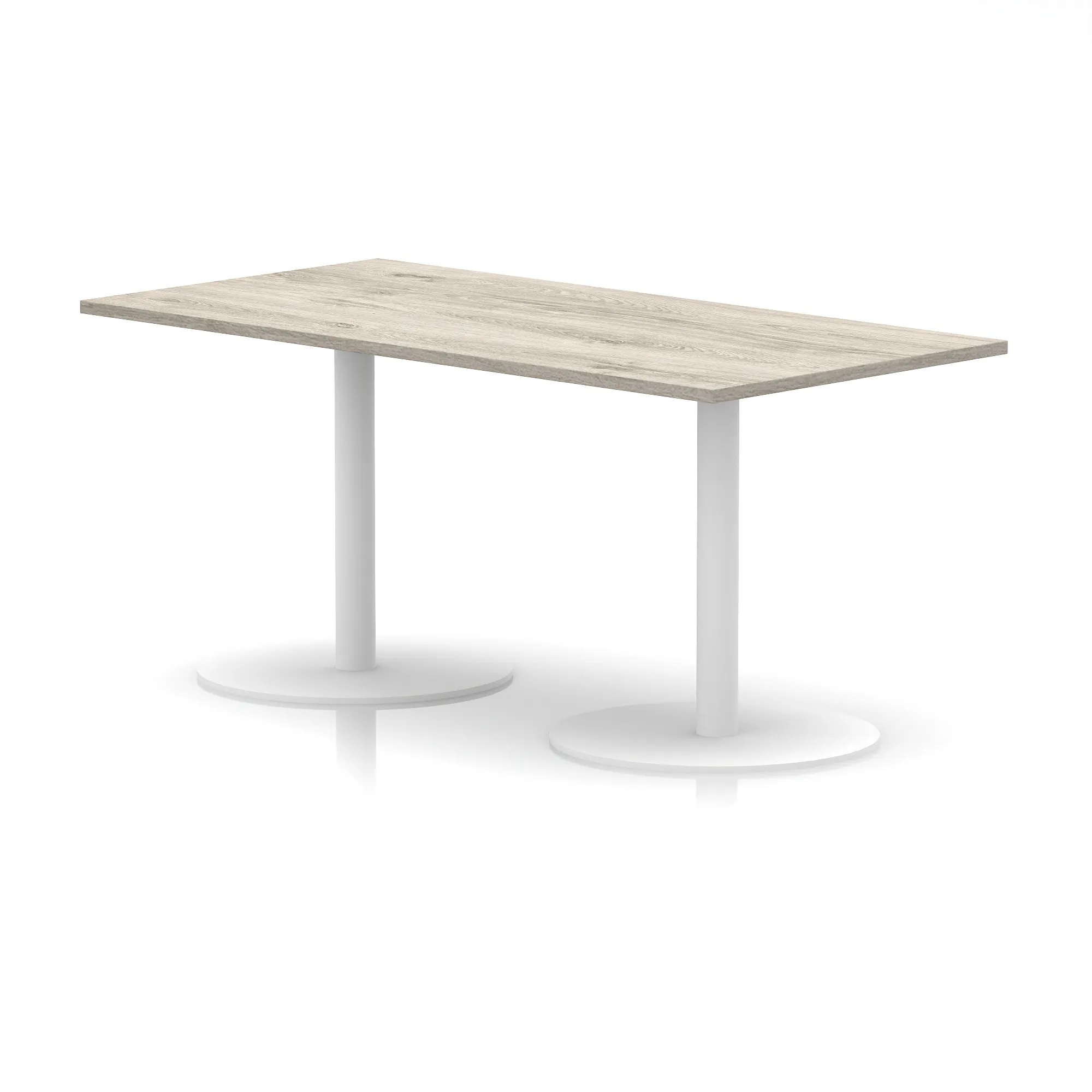 25mm thick desk top profile | Dual, brushed stainless steel effect circular base (580mm diameter) | Brushed stainless steel pillars (76mm diameter) | Weighted base provides stability | Two part bolted frame system