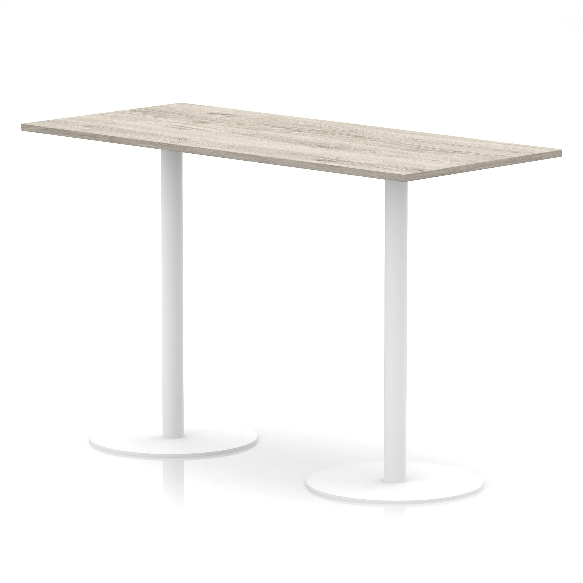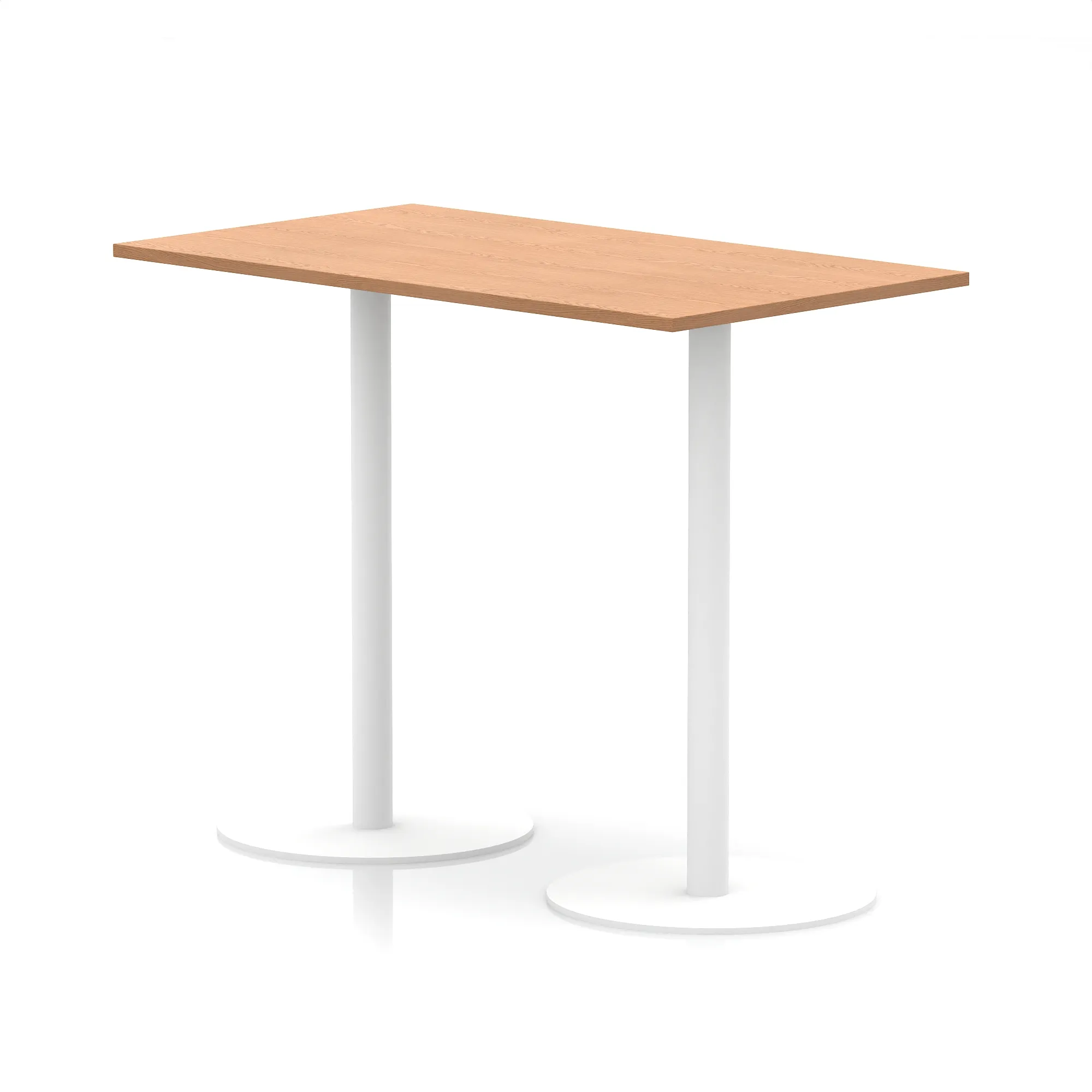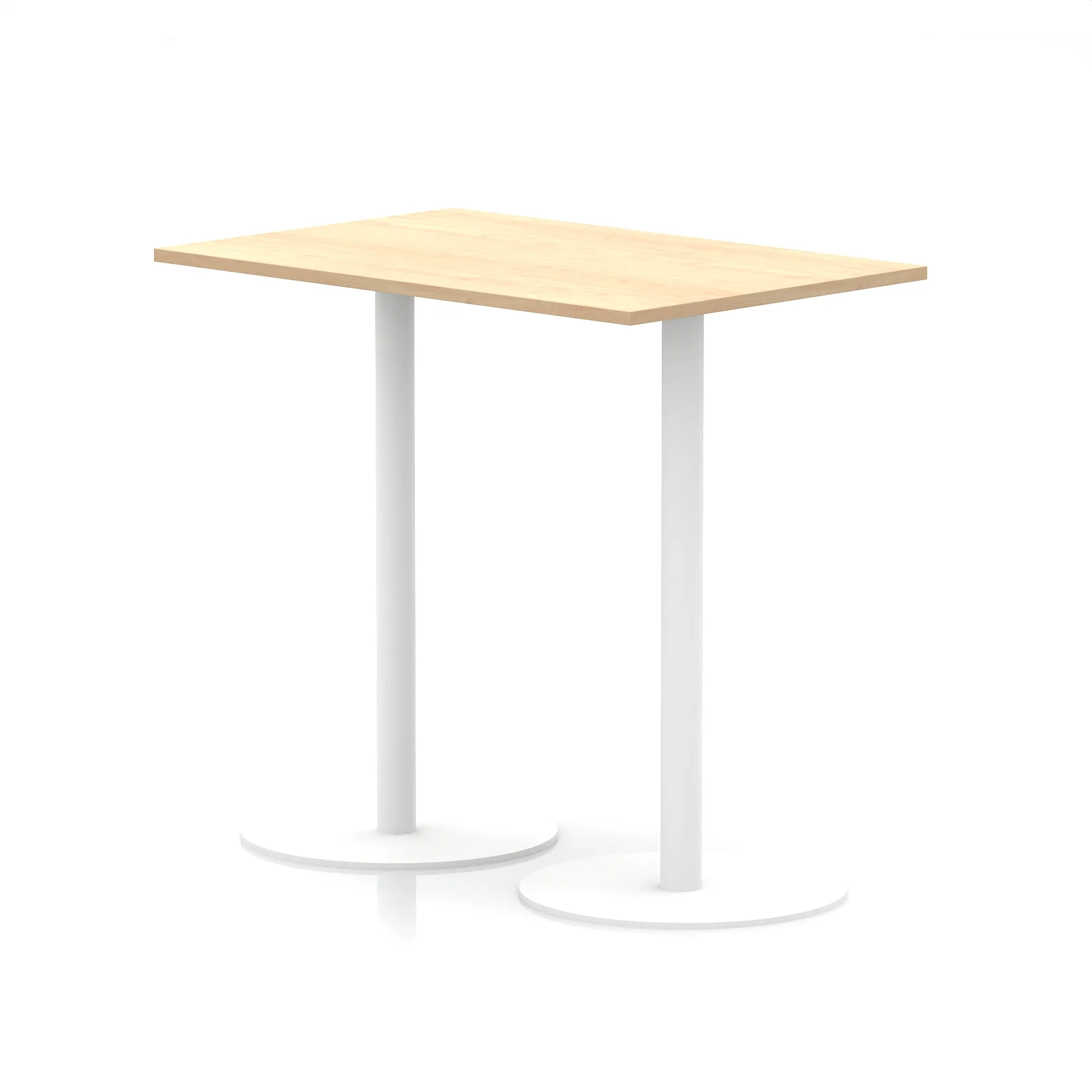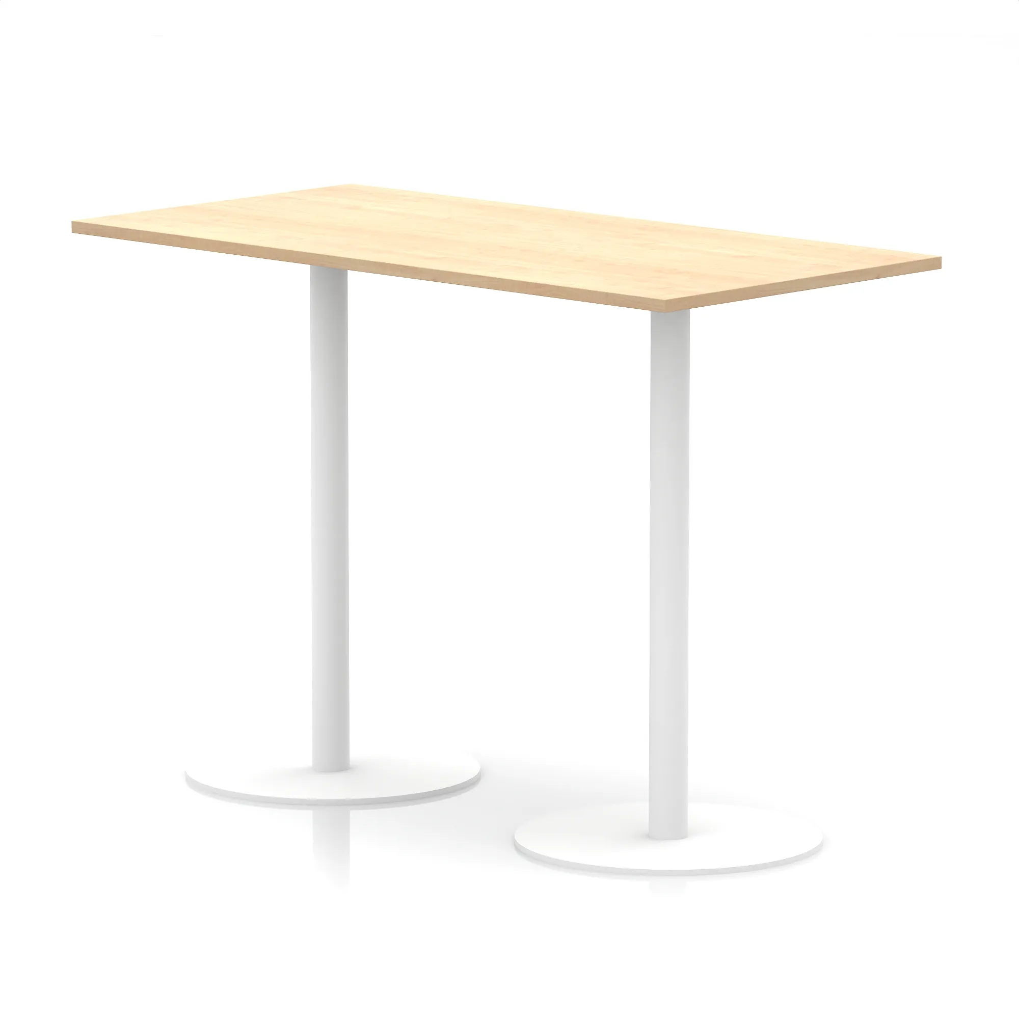 25mm thick desk top profile | Dual, brushed stainless steel effect circular base (580mm diameter) | Brushed stainless steel pillars (76mm diameter) | Weighted base provides stability | Two part bolted frame system