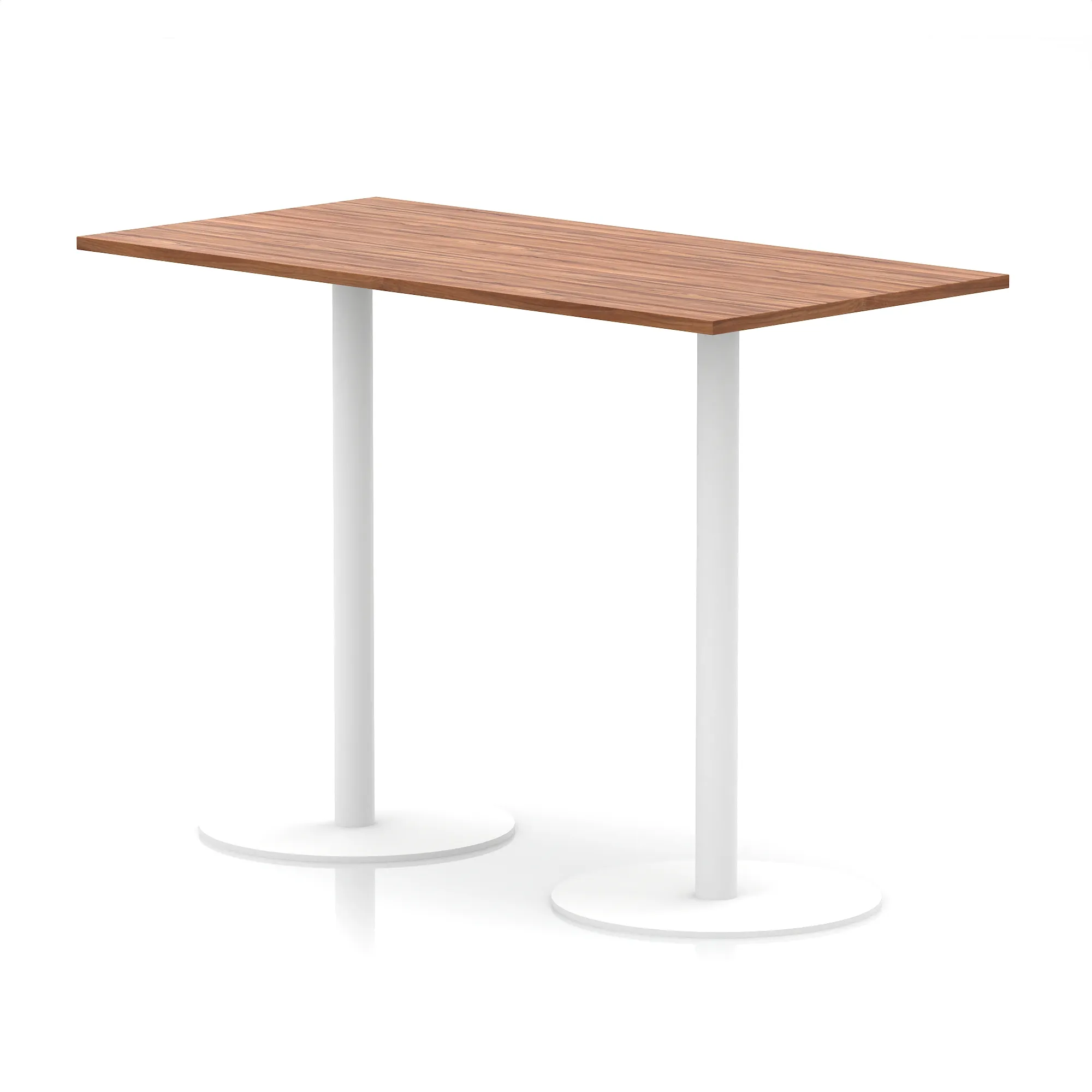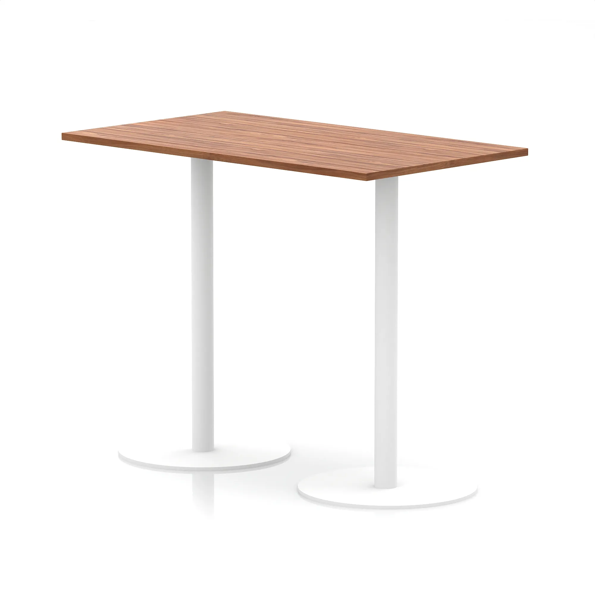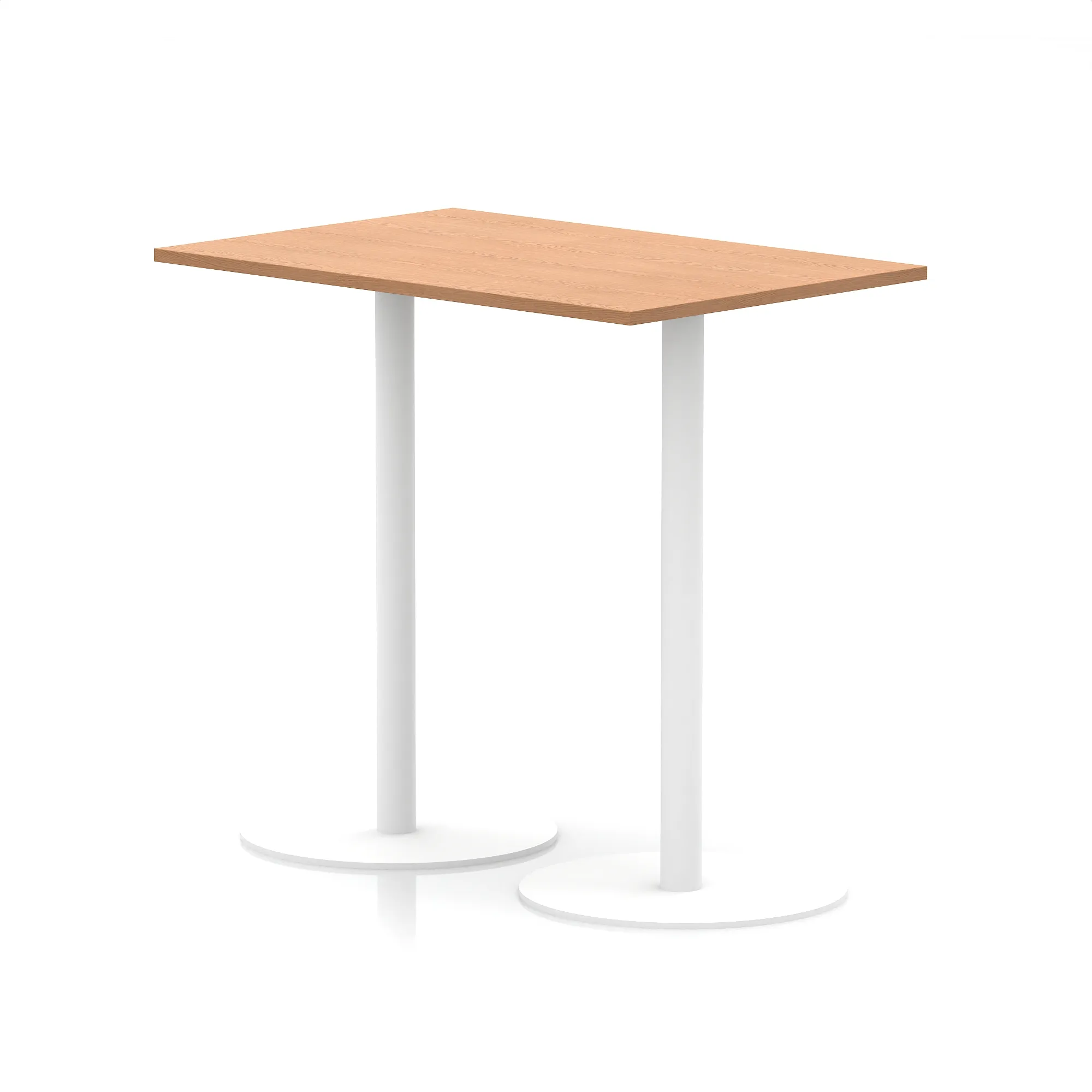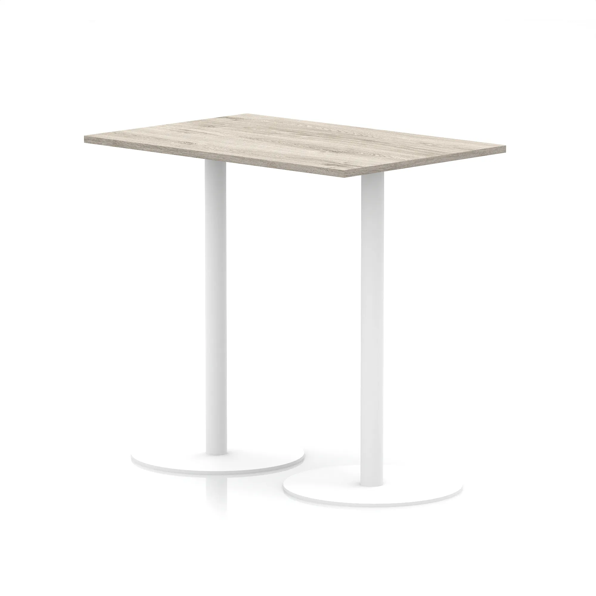 25mm thick desk top profile | Dual, brushed stainless steel effect circular base (580mm diameter) | Brushed stainless steel pillars (76mm diameter) | Weighted base provides stability | Two part bolted frame system