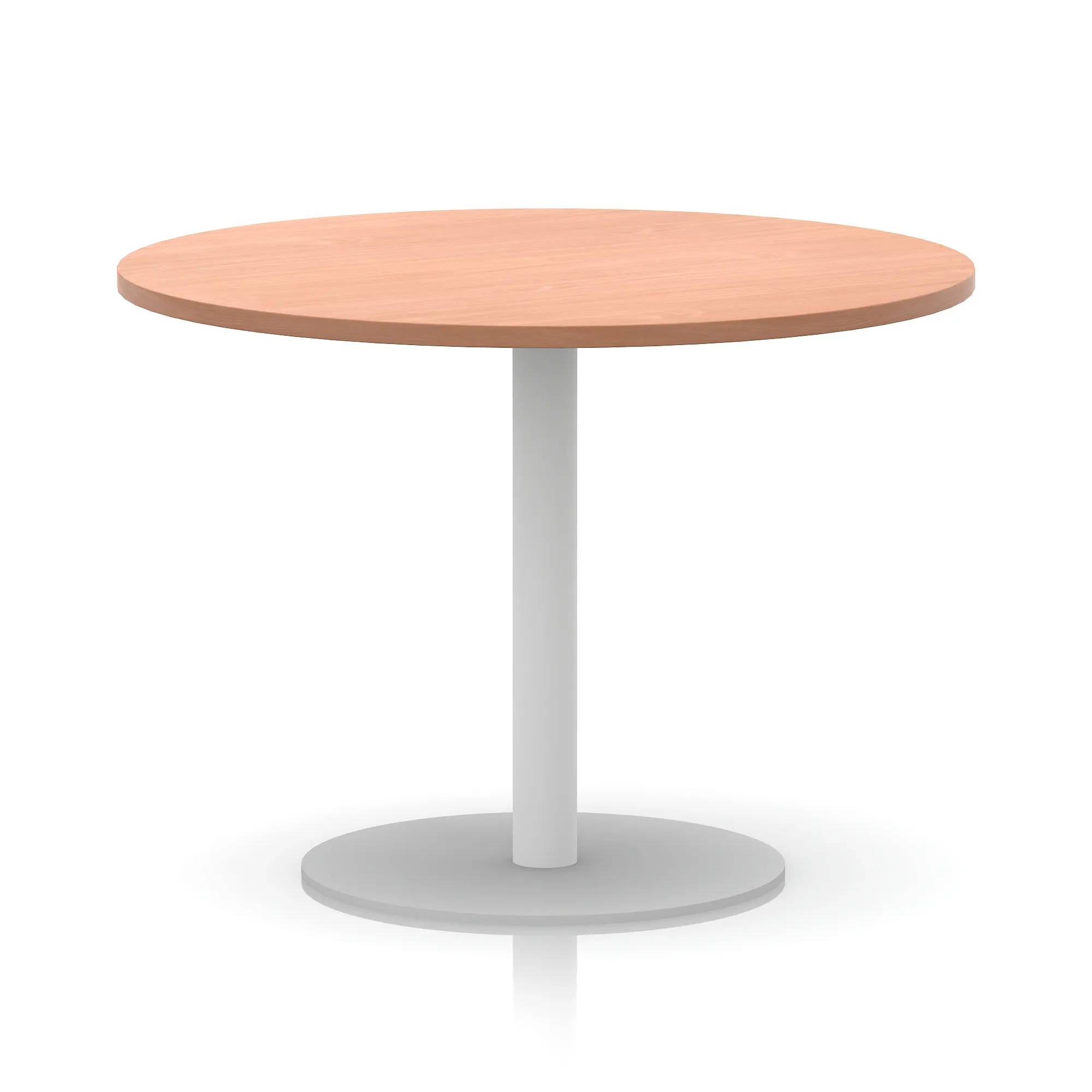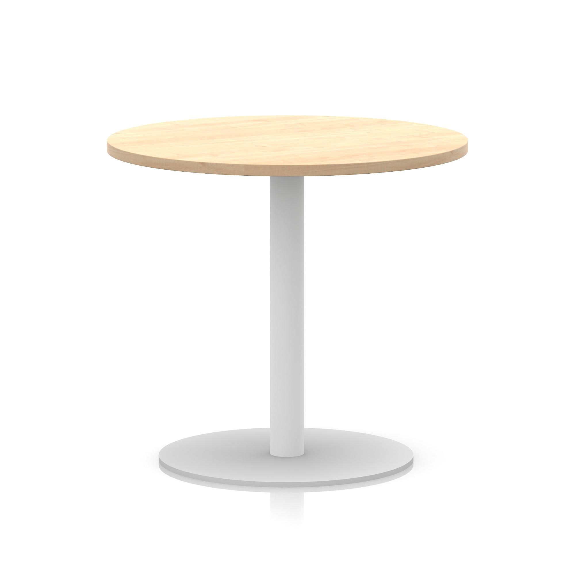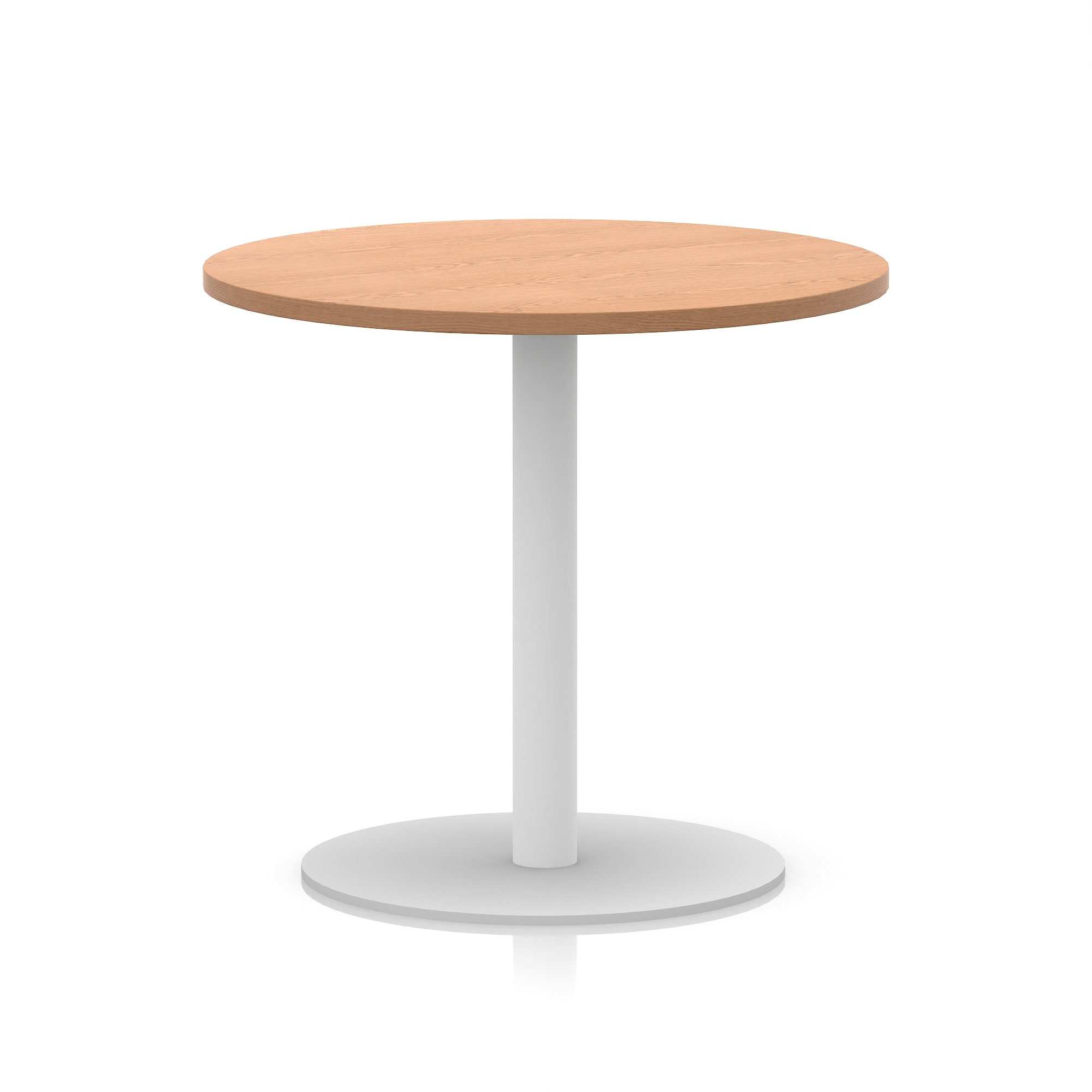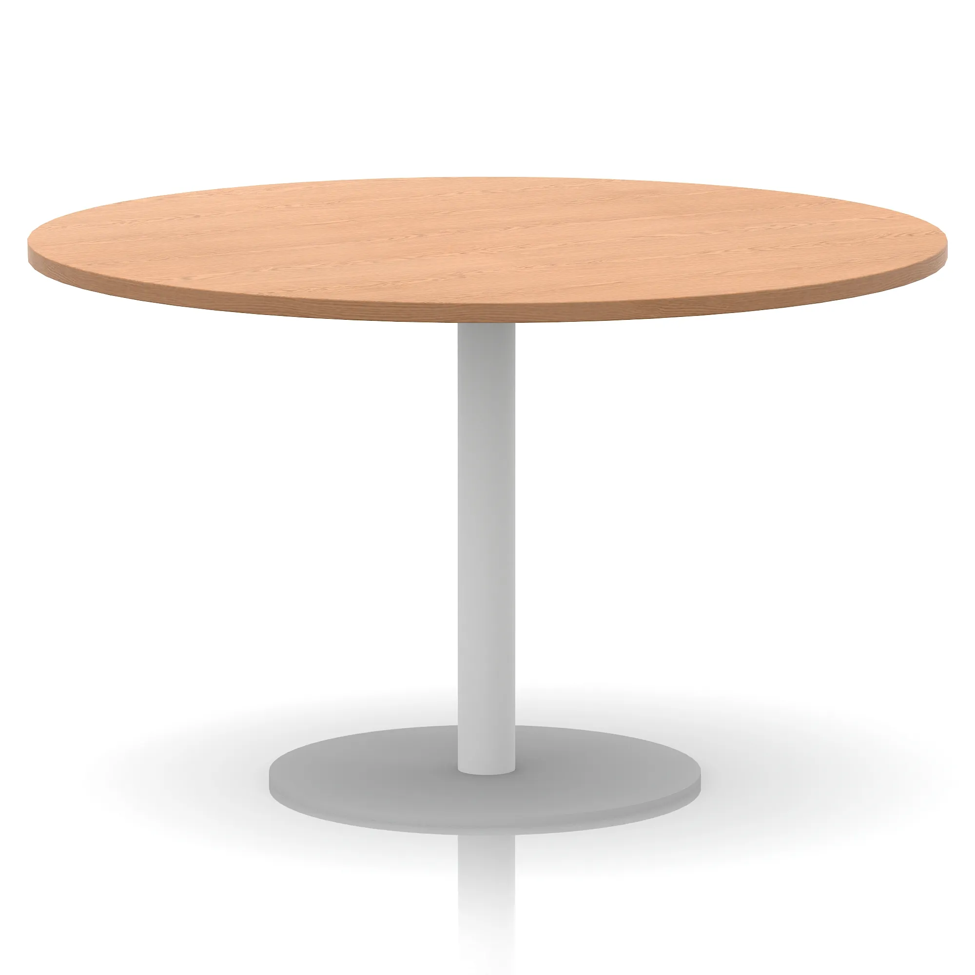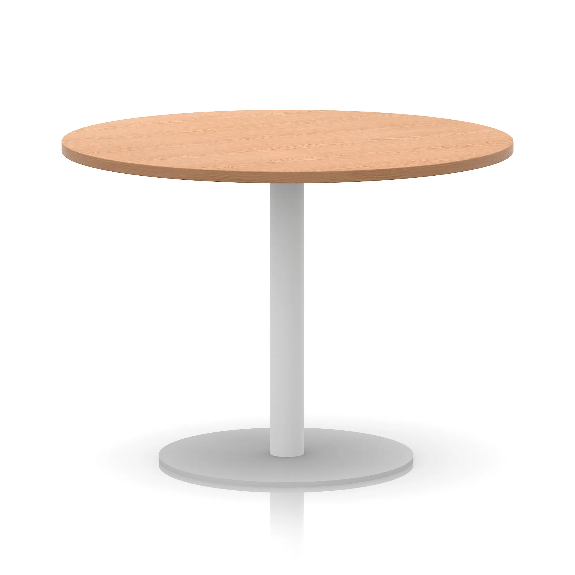25mm thick desk top profile | Brushed stainless steel effect circular base (580mm diameter) | Brushed stainless steel pillars (76mm diameter) | Weighted base provides stability | Two part bolted frame system