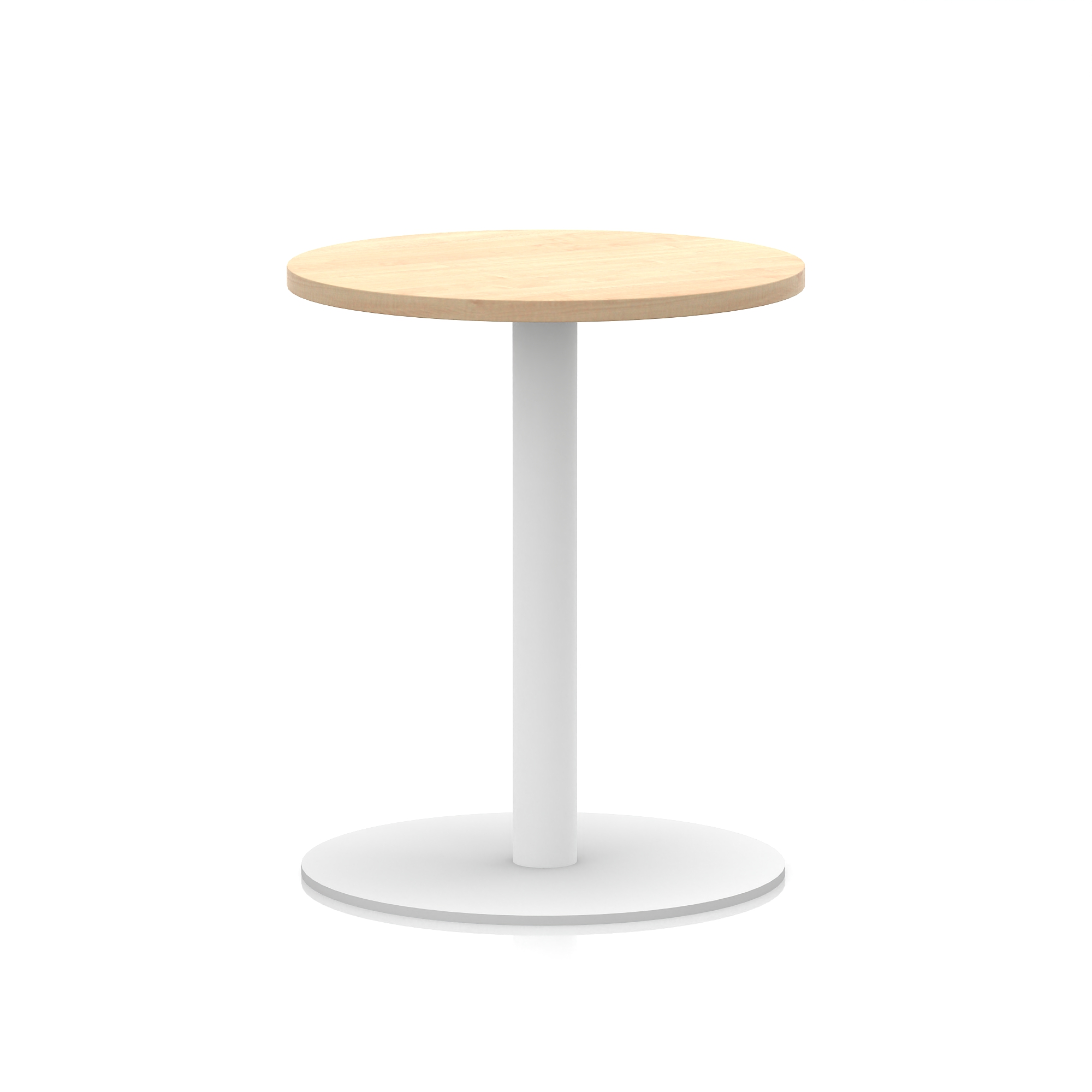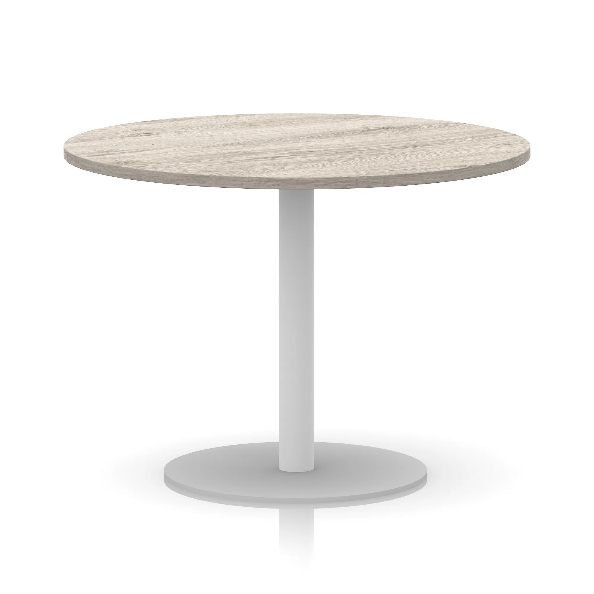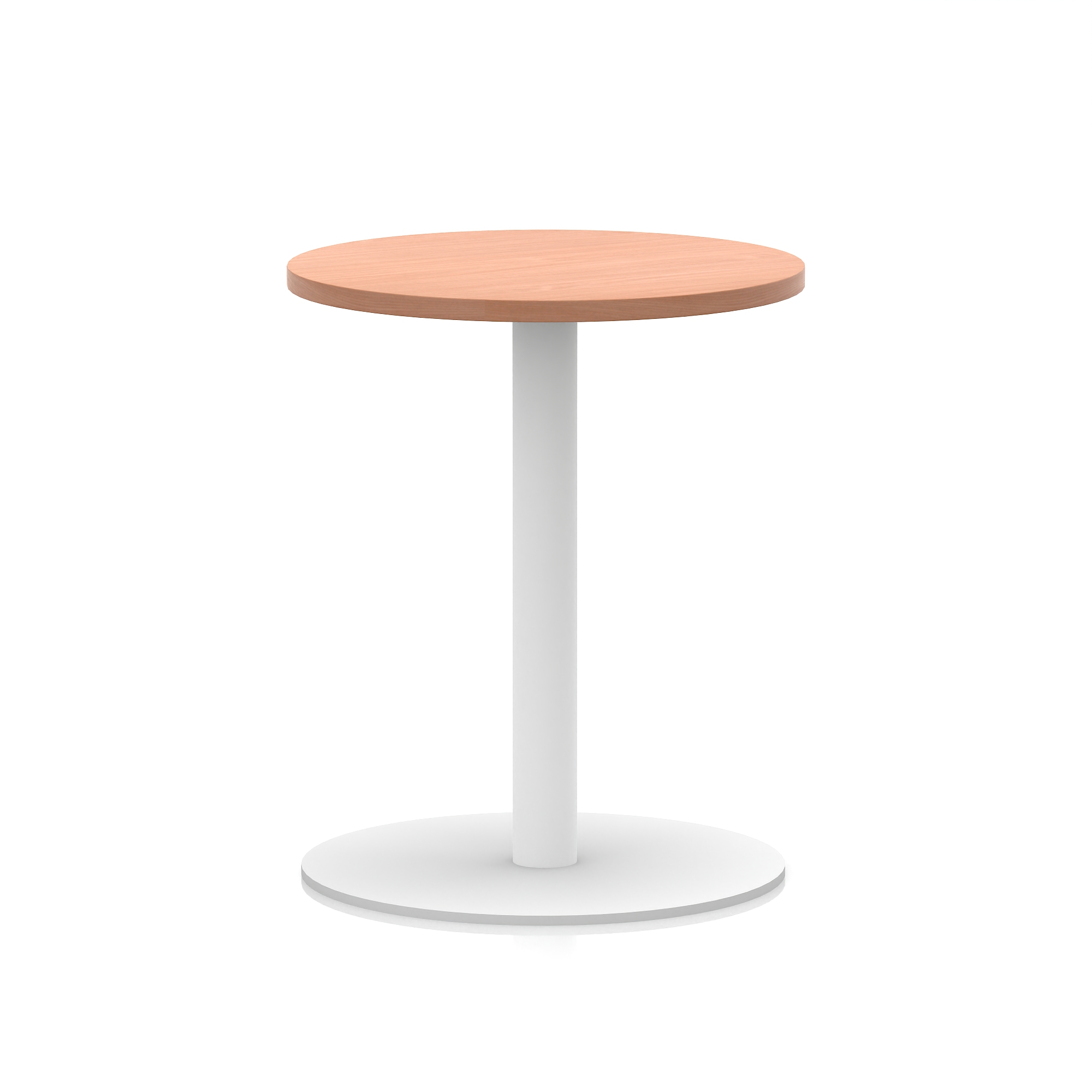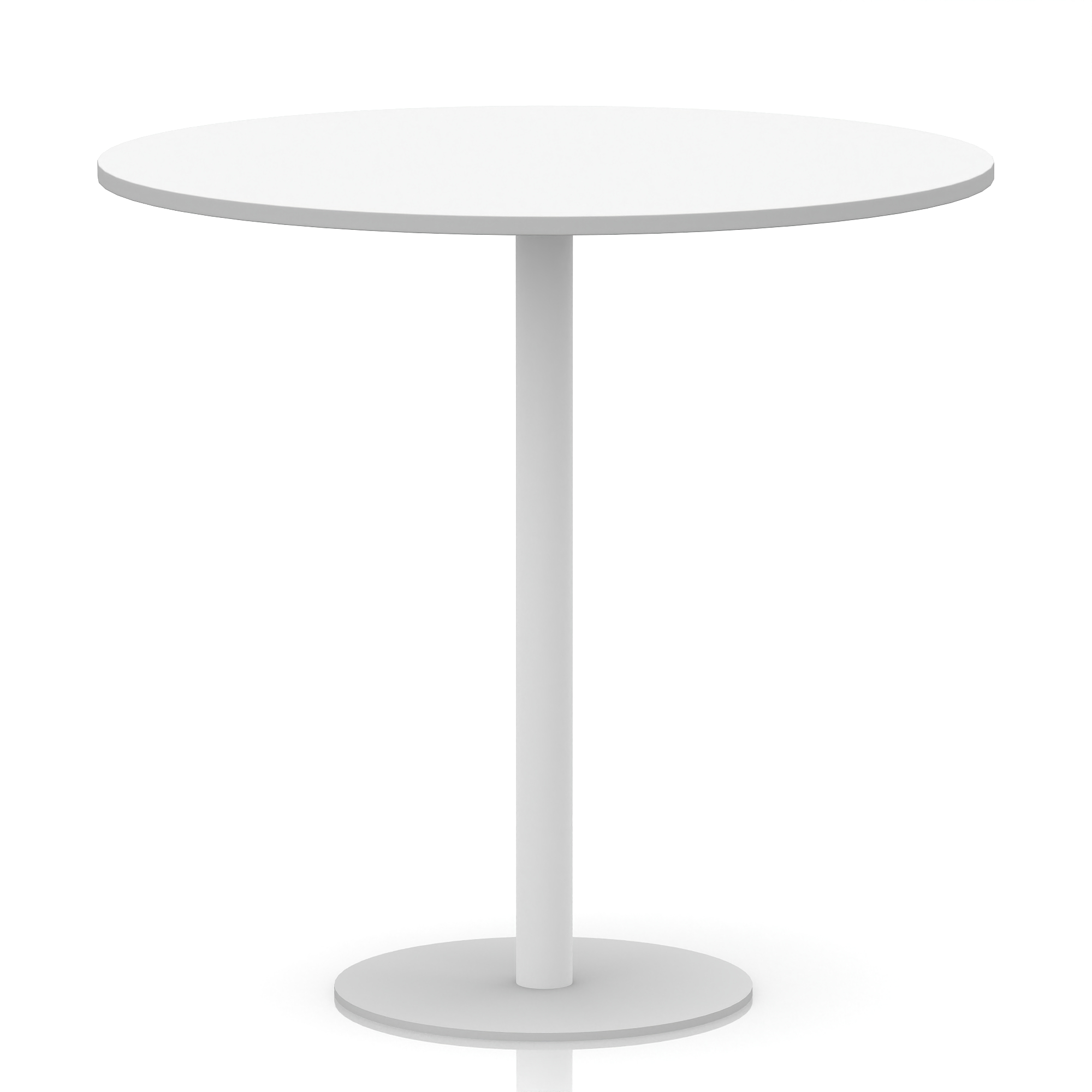 25mm thick desk top profile | Brushed stainless steel effect circular base (580mm diameter) | Brushed stainless steel pillars (76mm diameter) | Weighted base provides stability | Two part bolted frame system