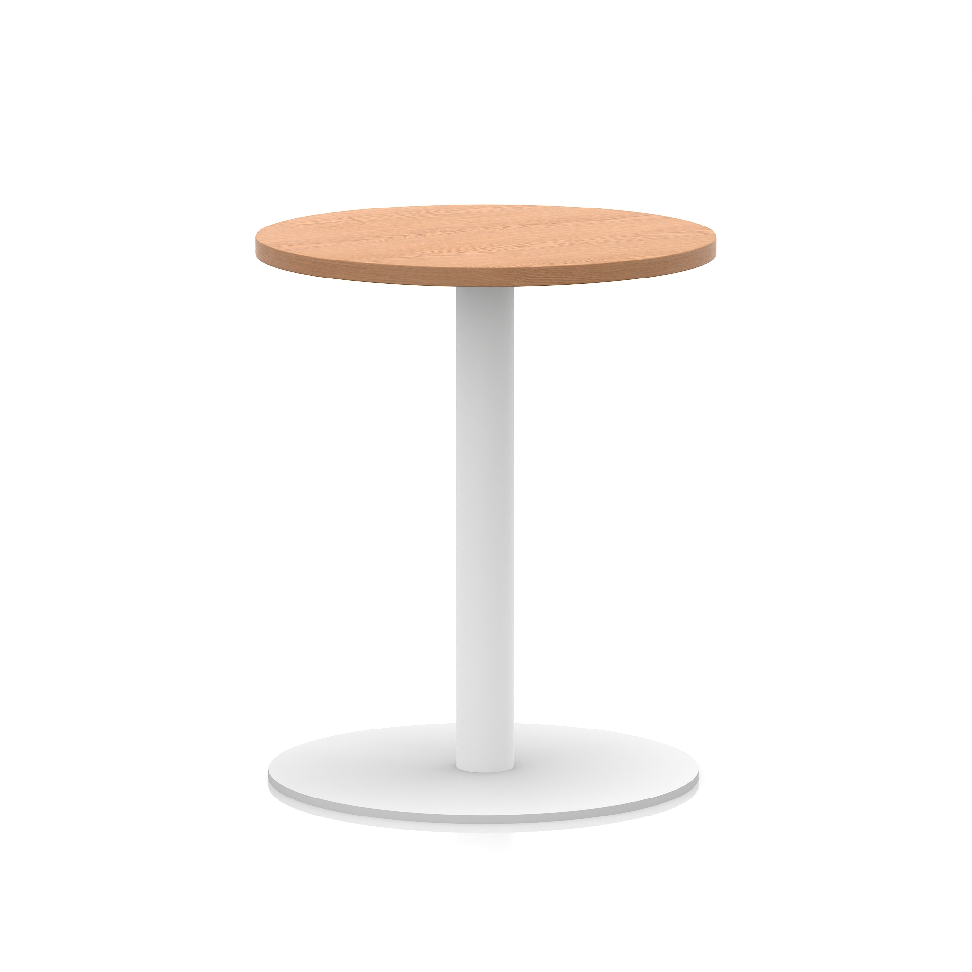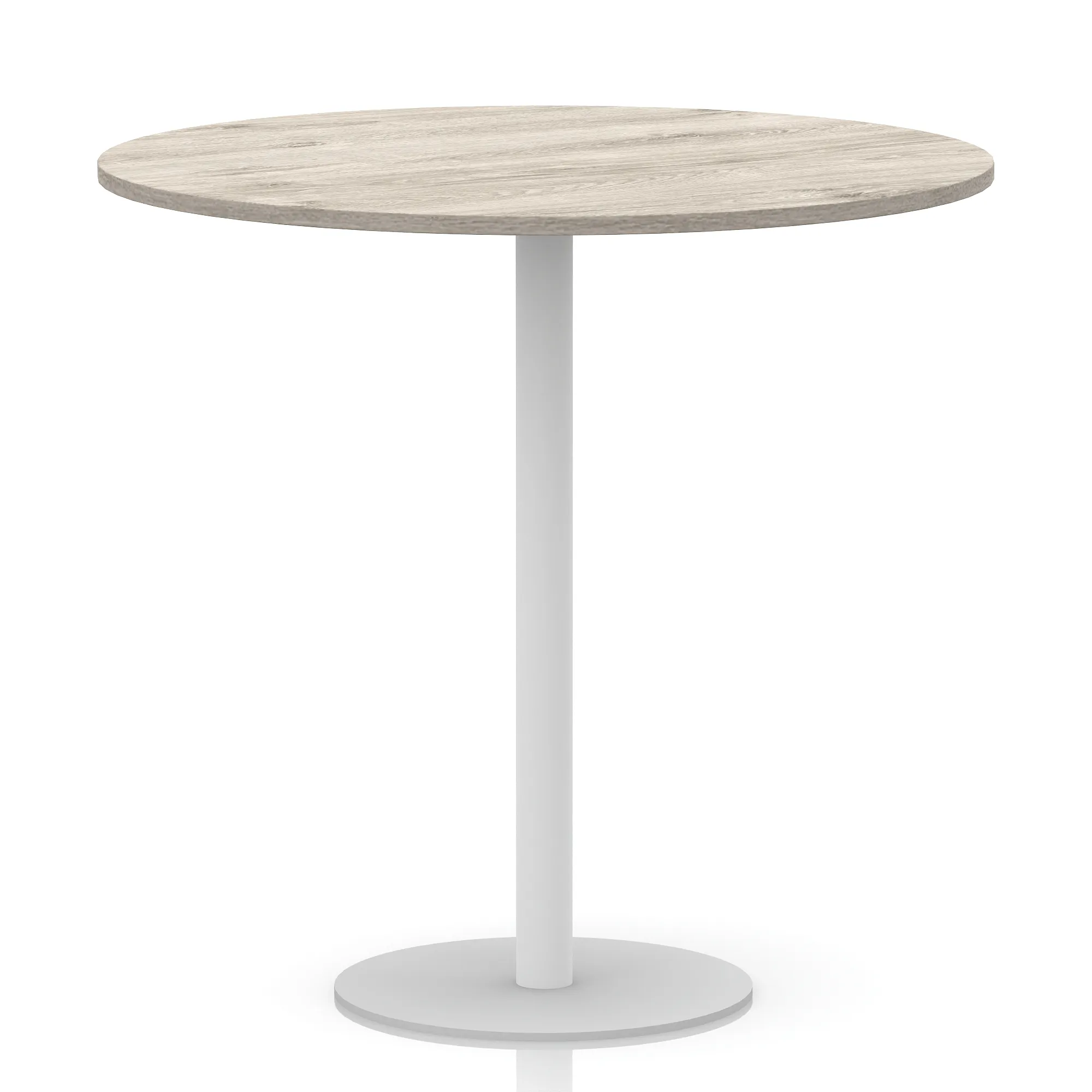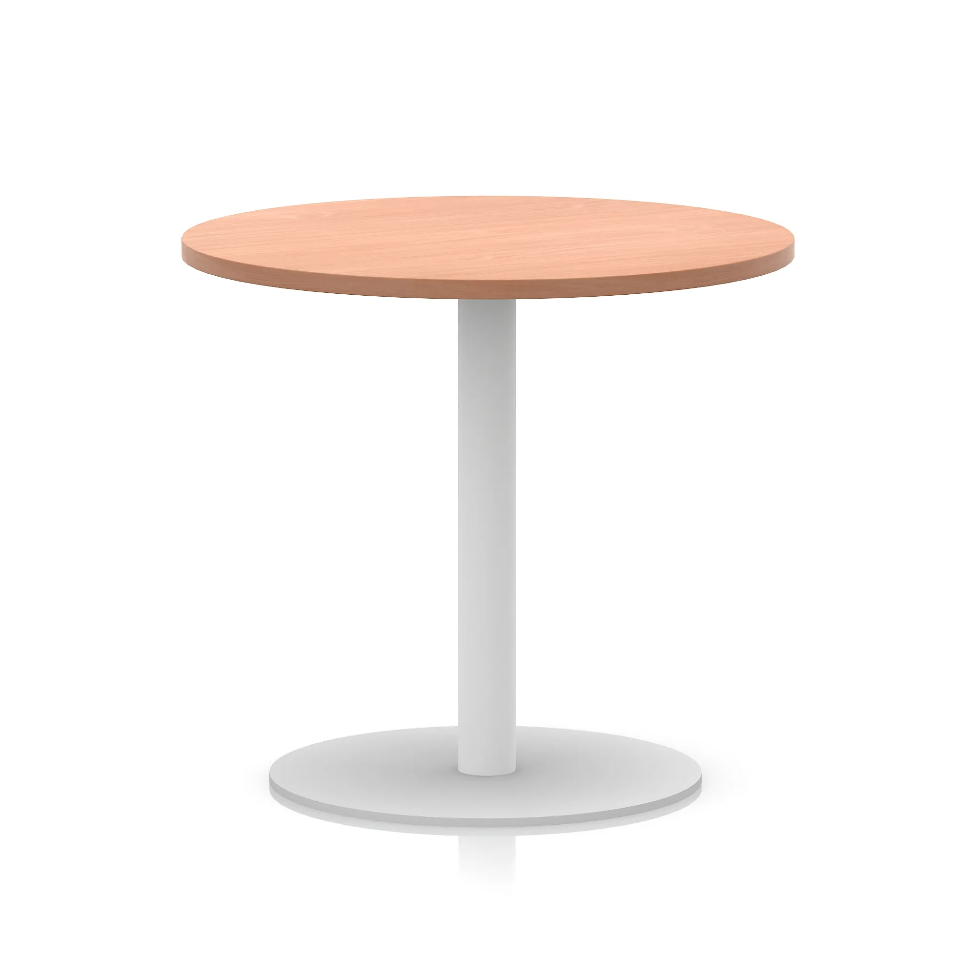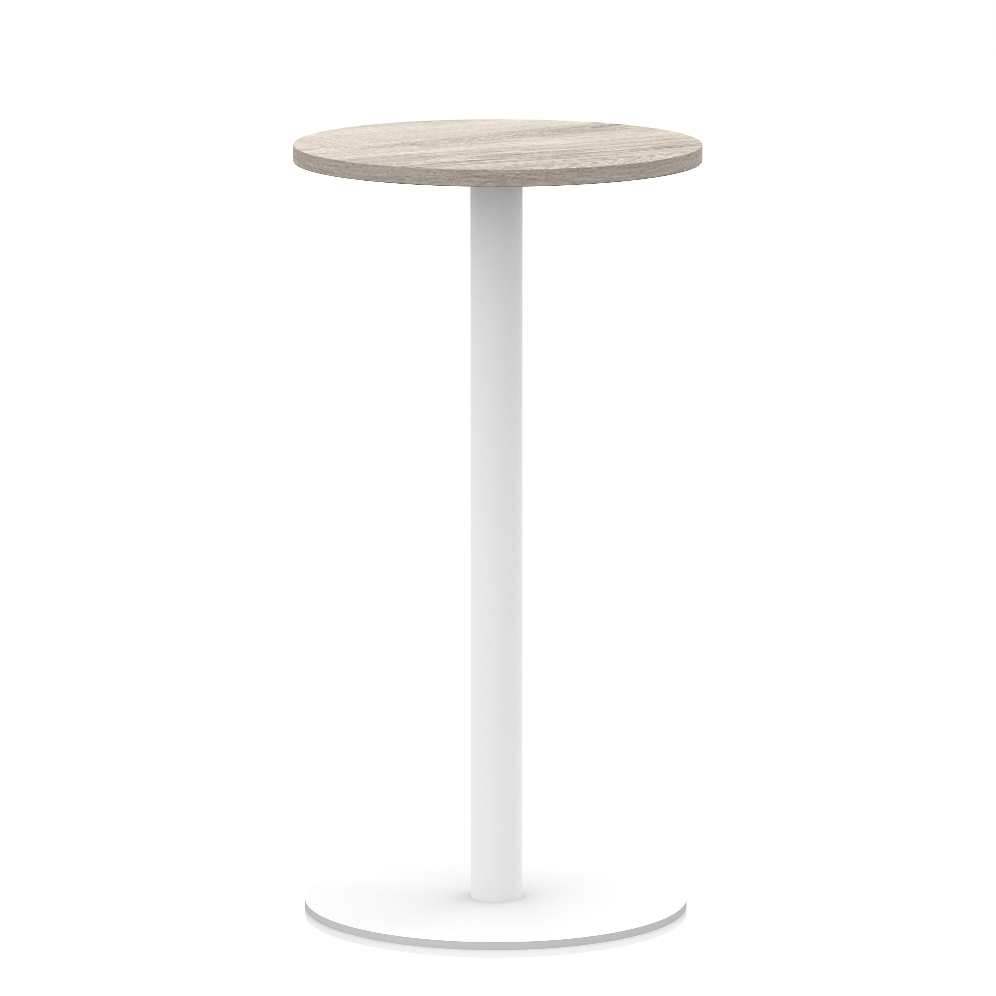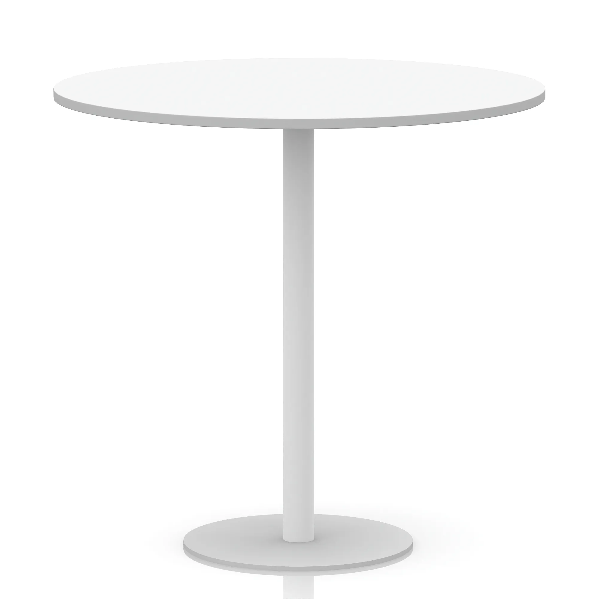 25mm thick desk top profile | Brushed stainless steel effect circular base (580mm diameter) | Brushed stainless steel pillars (76mm diameter) | Weighted base provides stability | Two part bolted frame system