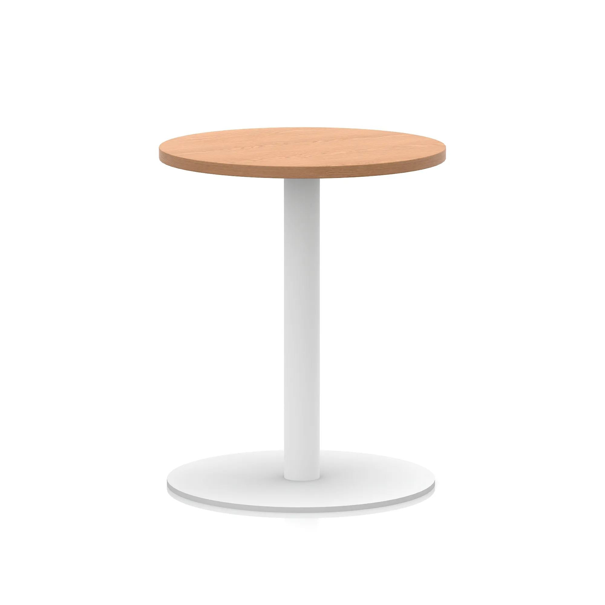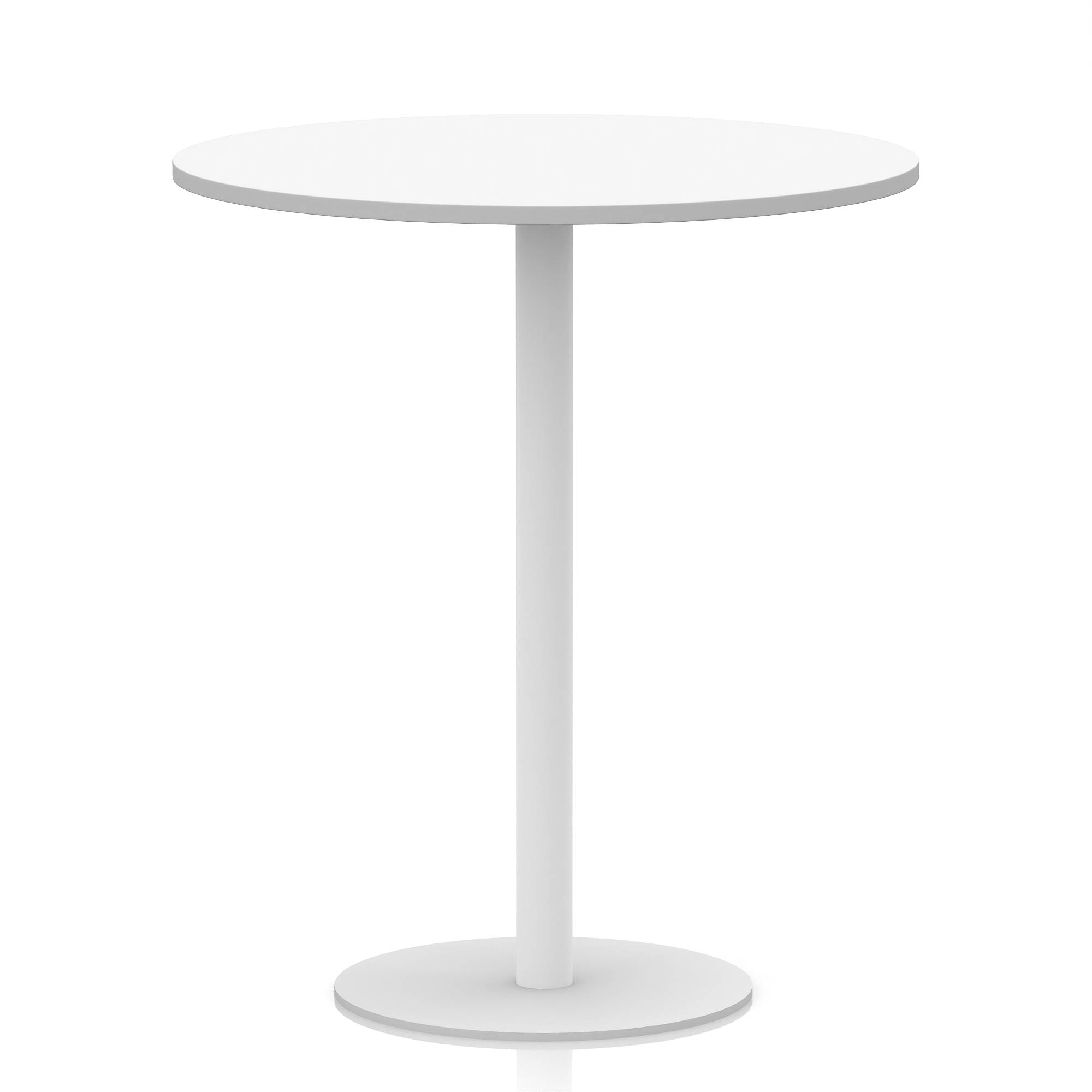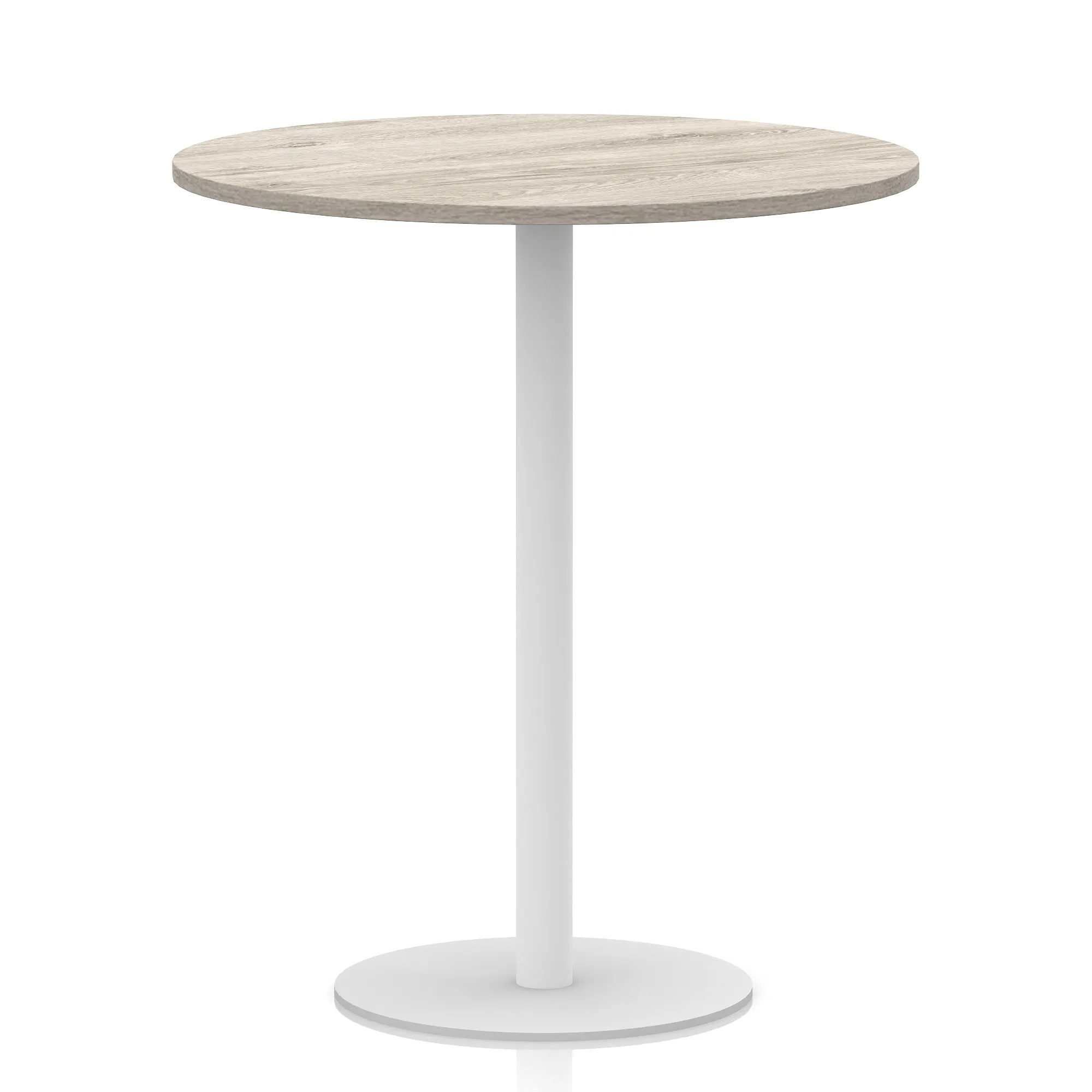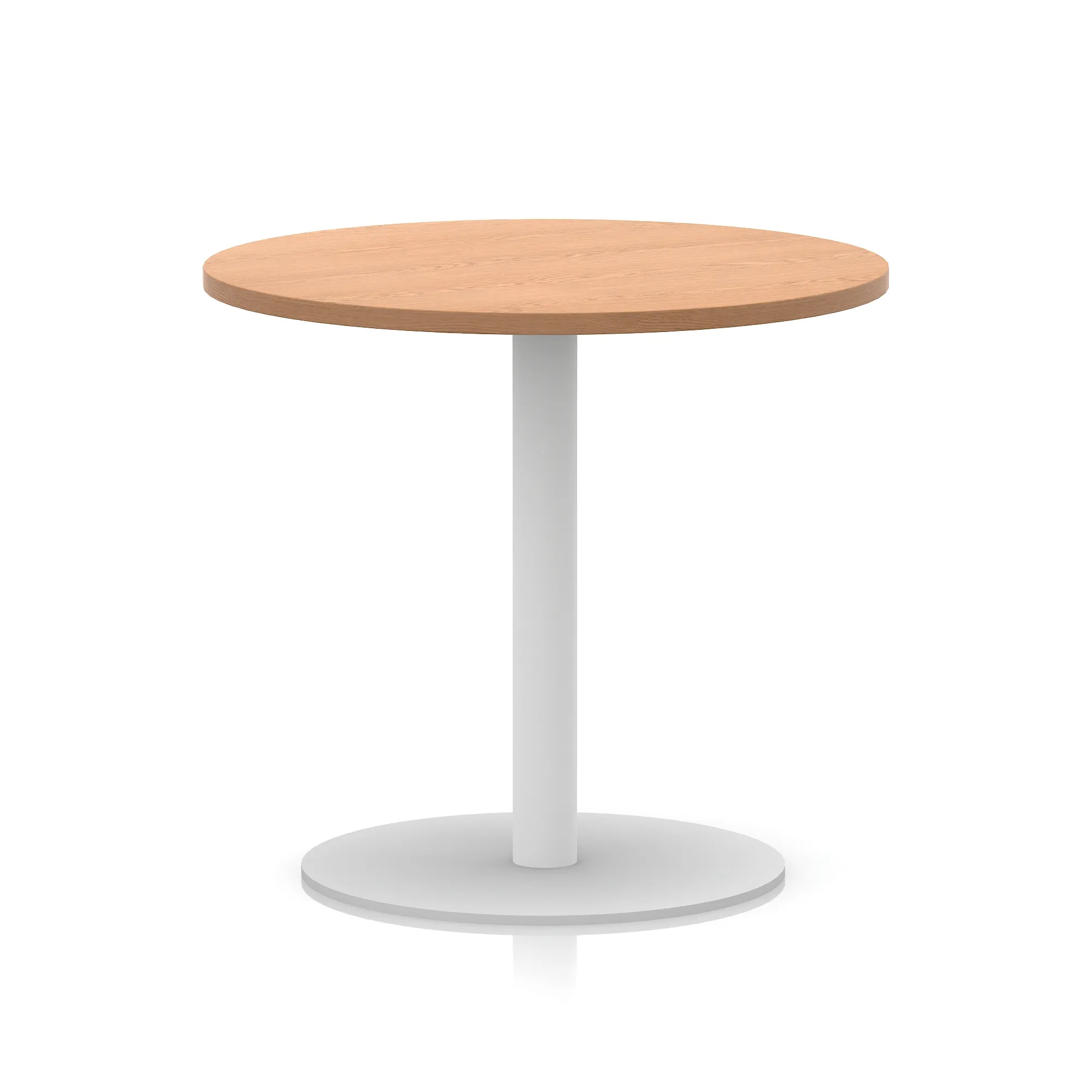 25mm thick desk top profile | Brushed stainless steel effect circular base (580mm diameter) | Brushed stainless steel pillars (76mm diameter) | Weighted base provides stability | Two part bolted frame system