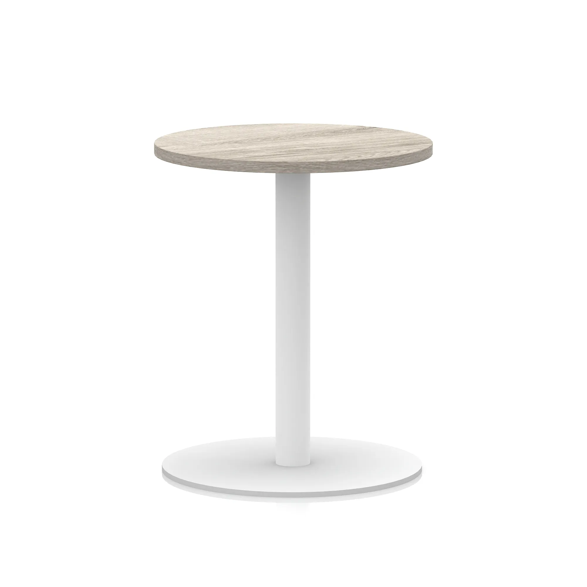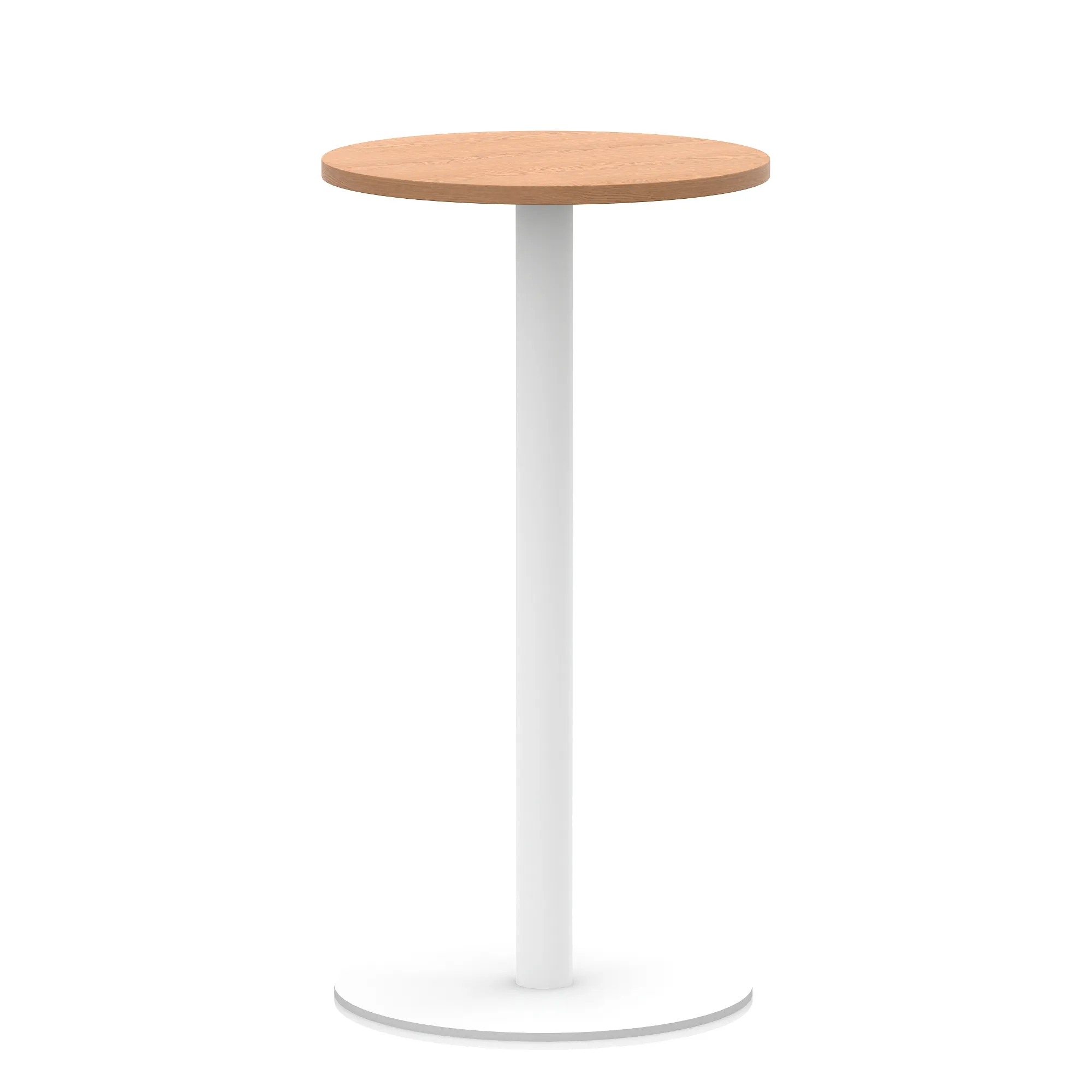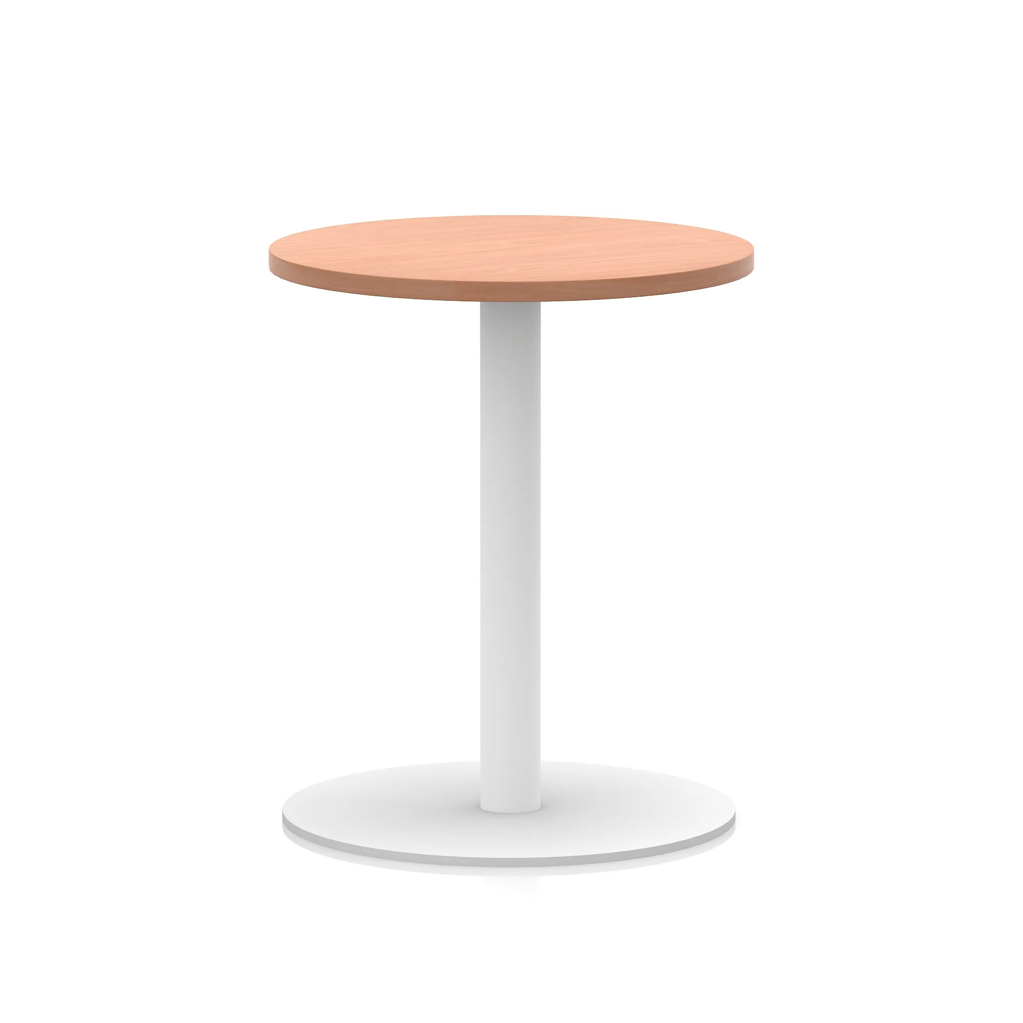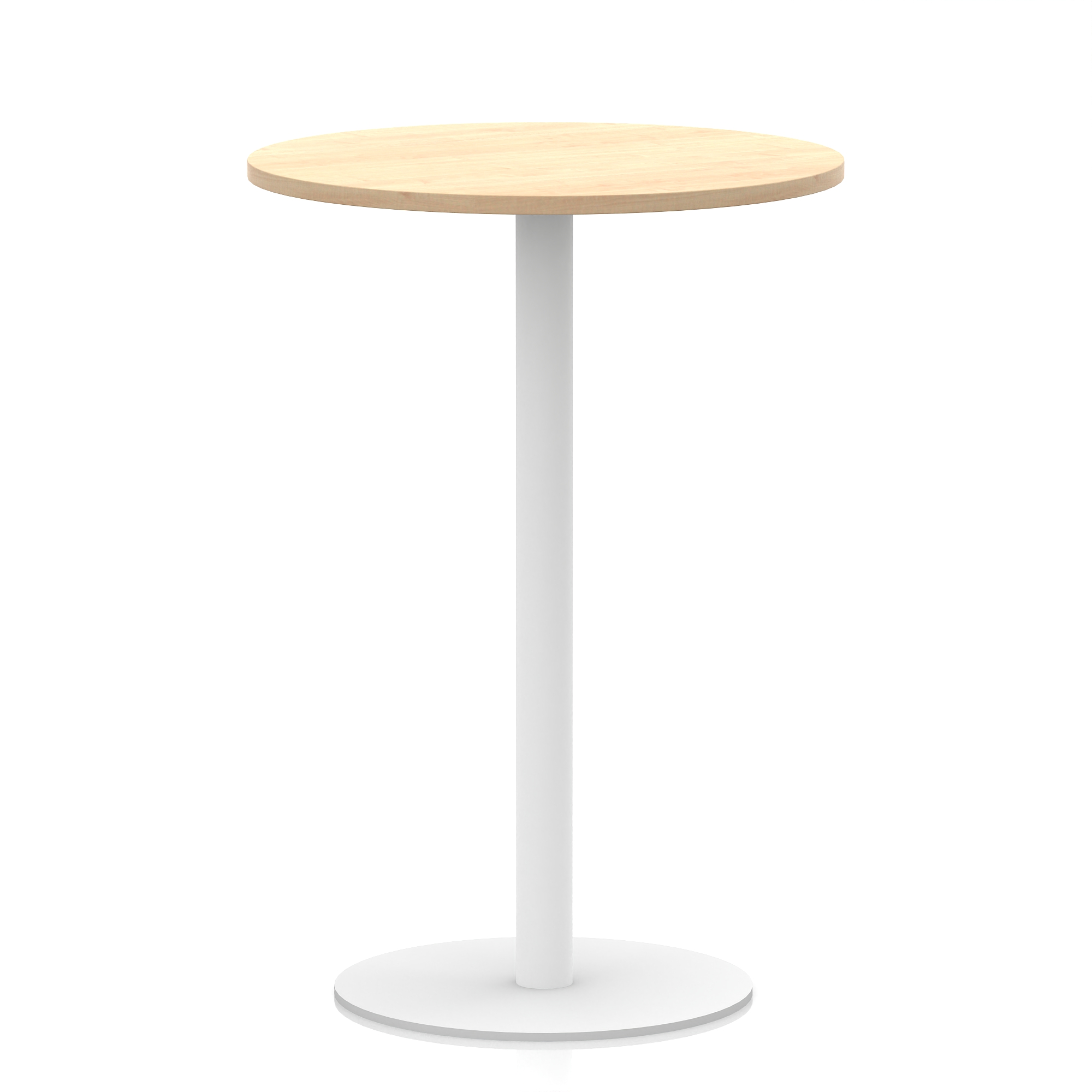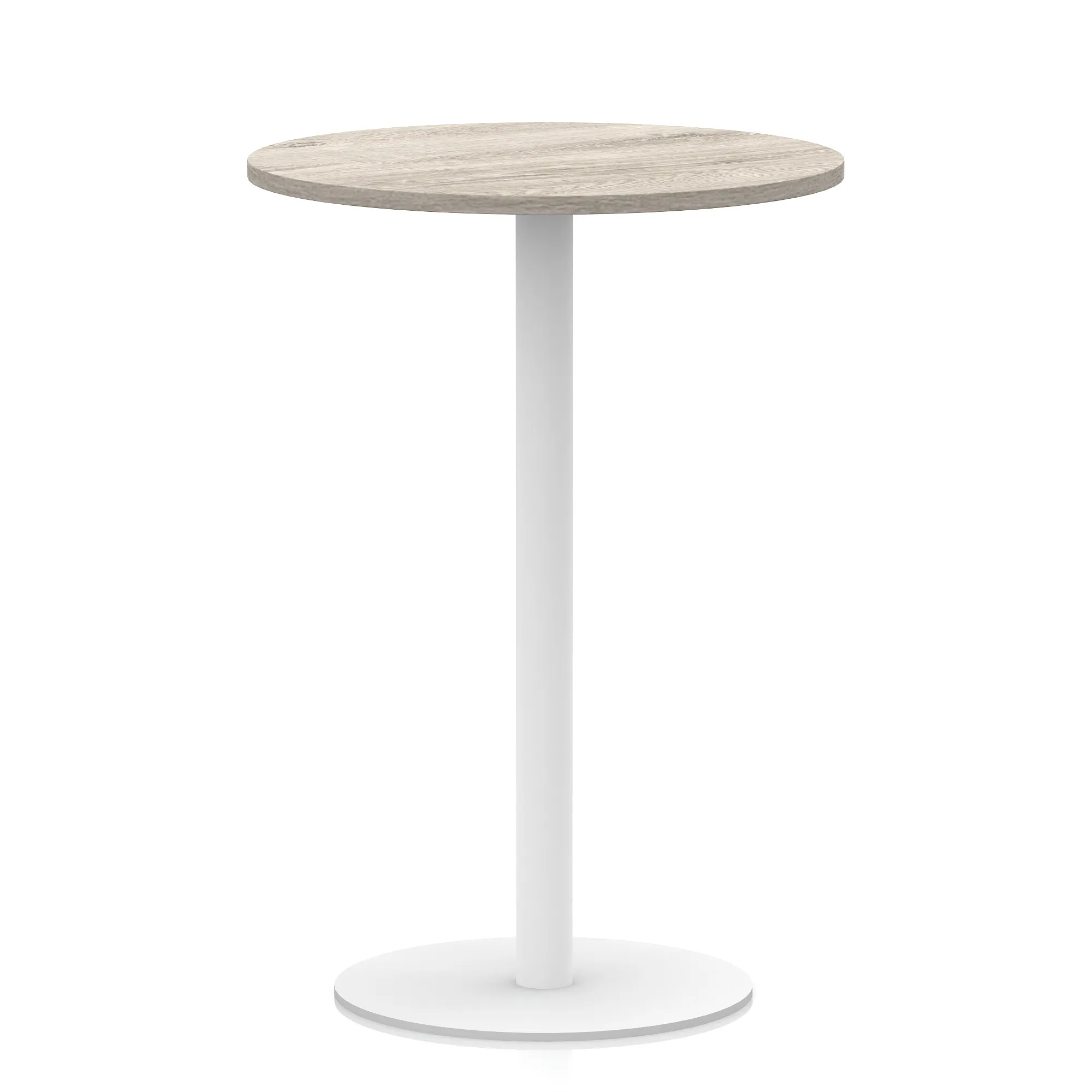 25mm thick desk top profile | Brushed stainless steel effect circular base (580mm diameter) | Brushed stainless steel pillars (76mm diameter) | Weighted base provides stability | Two part bolted frame system