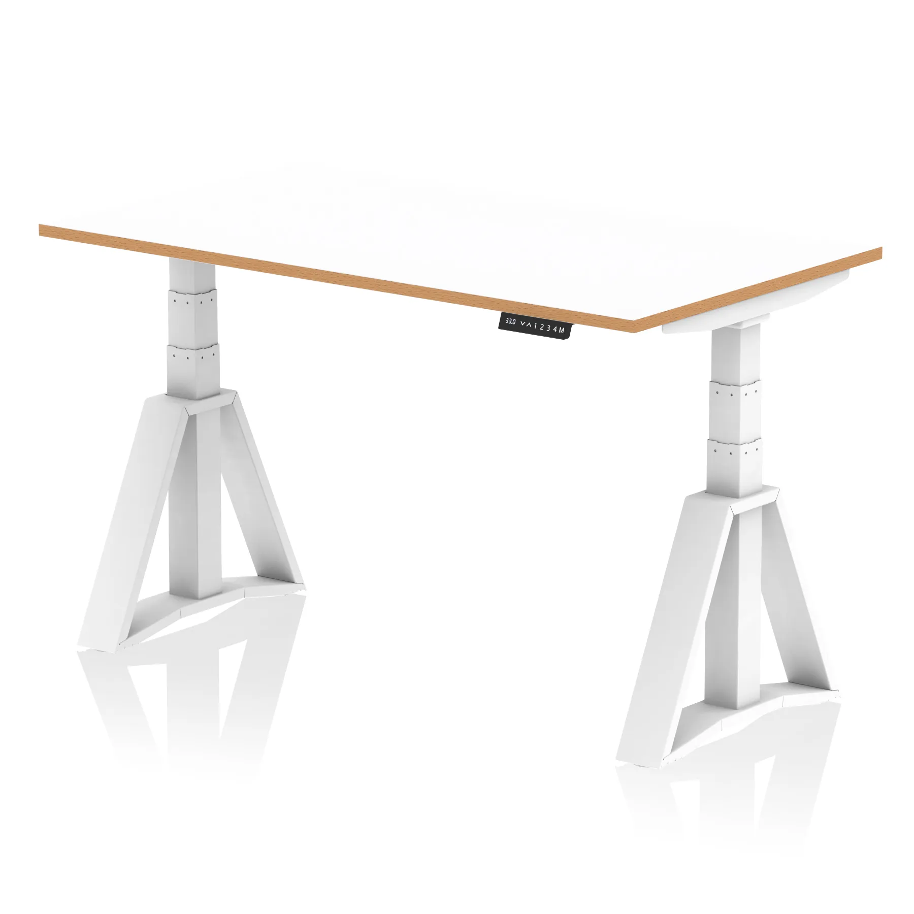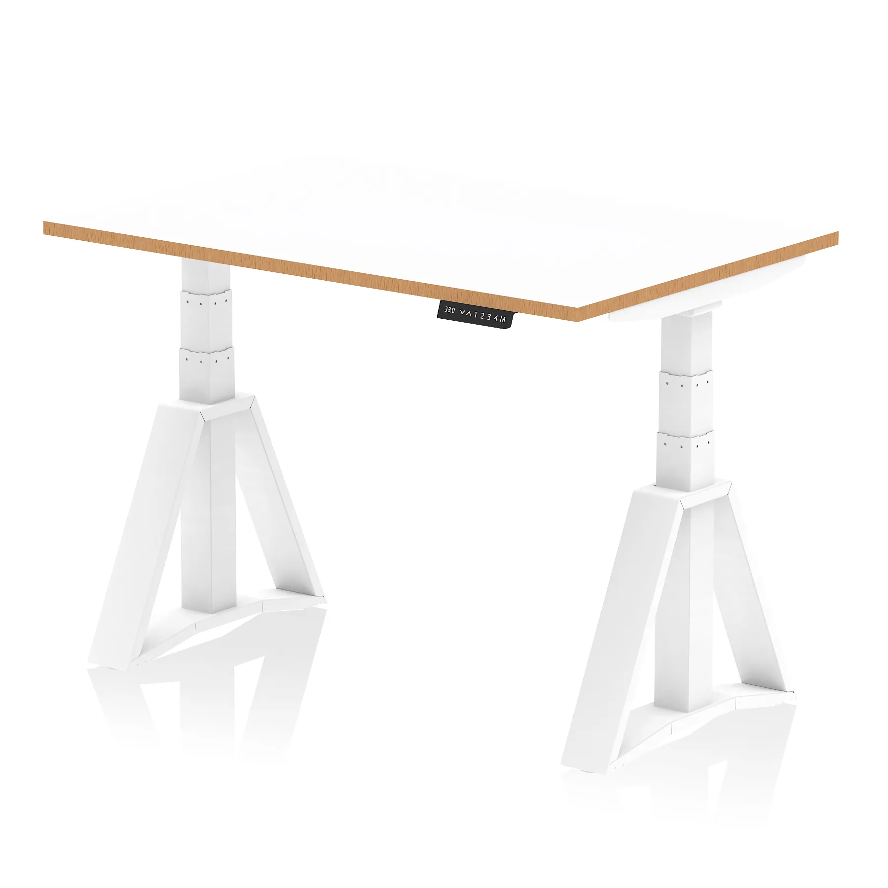 • Smooth powerful electronic dual motors • 4 programmable optional memory height settings • Large 660-1310mm height range • Premium 120kg weight capacity • Anti-trap safety stop feature • Digital LED display • Bench desk for minimalist look • Floating fixed desk top • Scalloped back edge for easy cable dumping • 2mm protective ABS edge • 25mm thick tops
