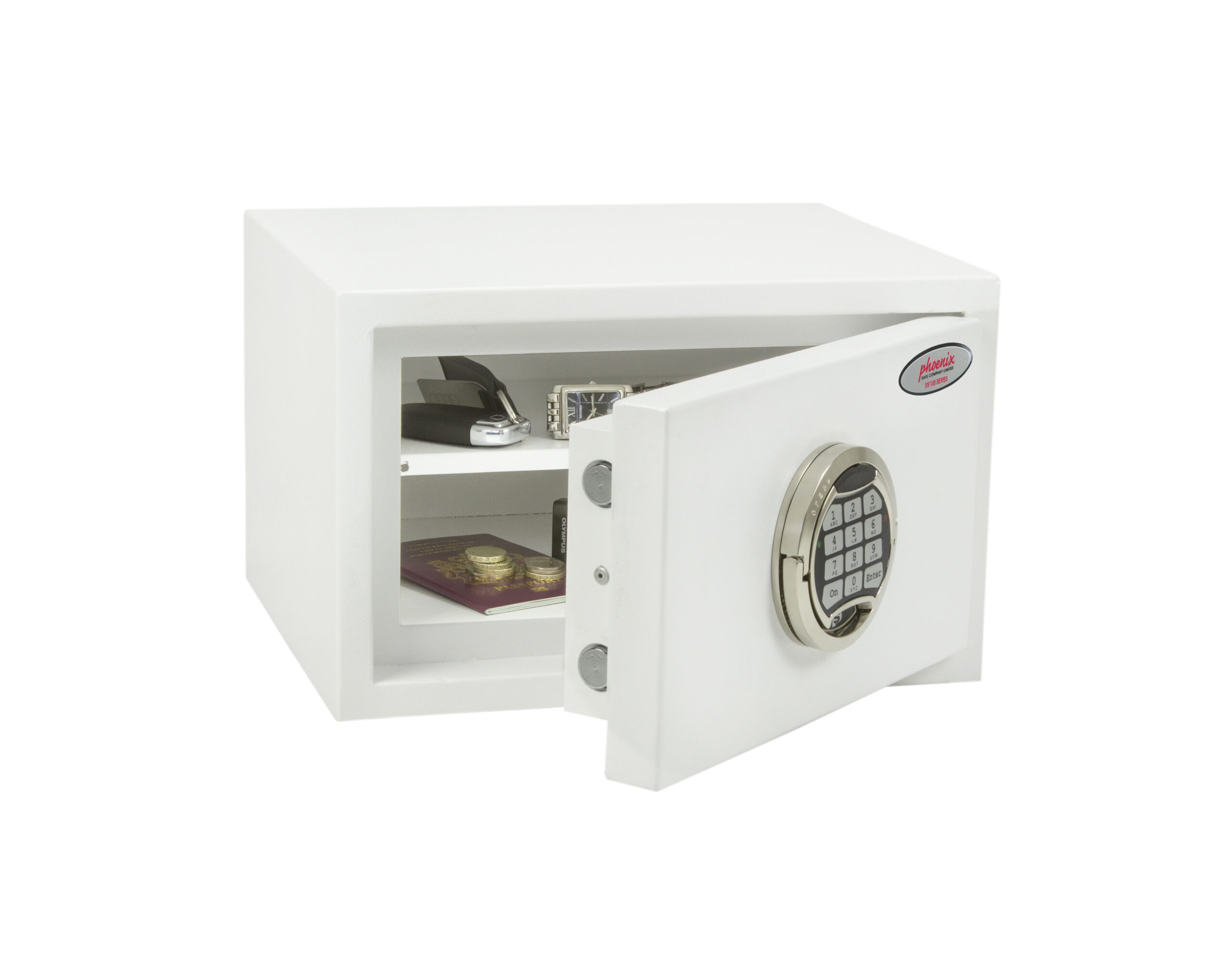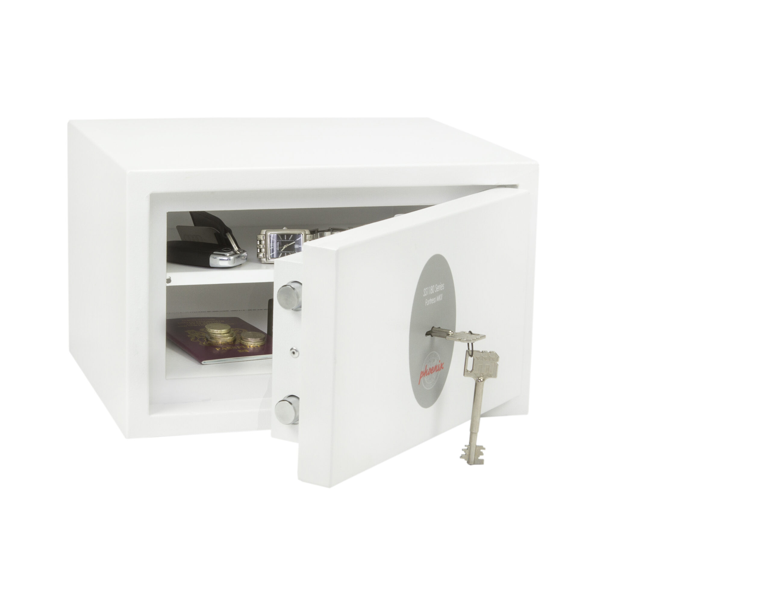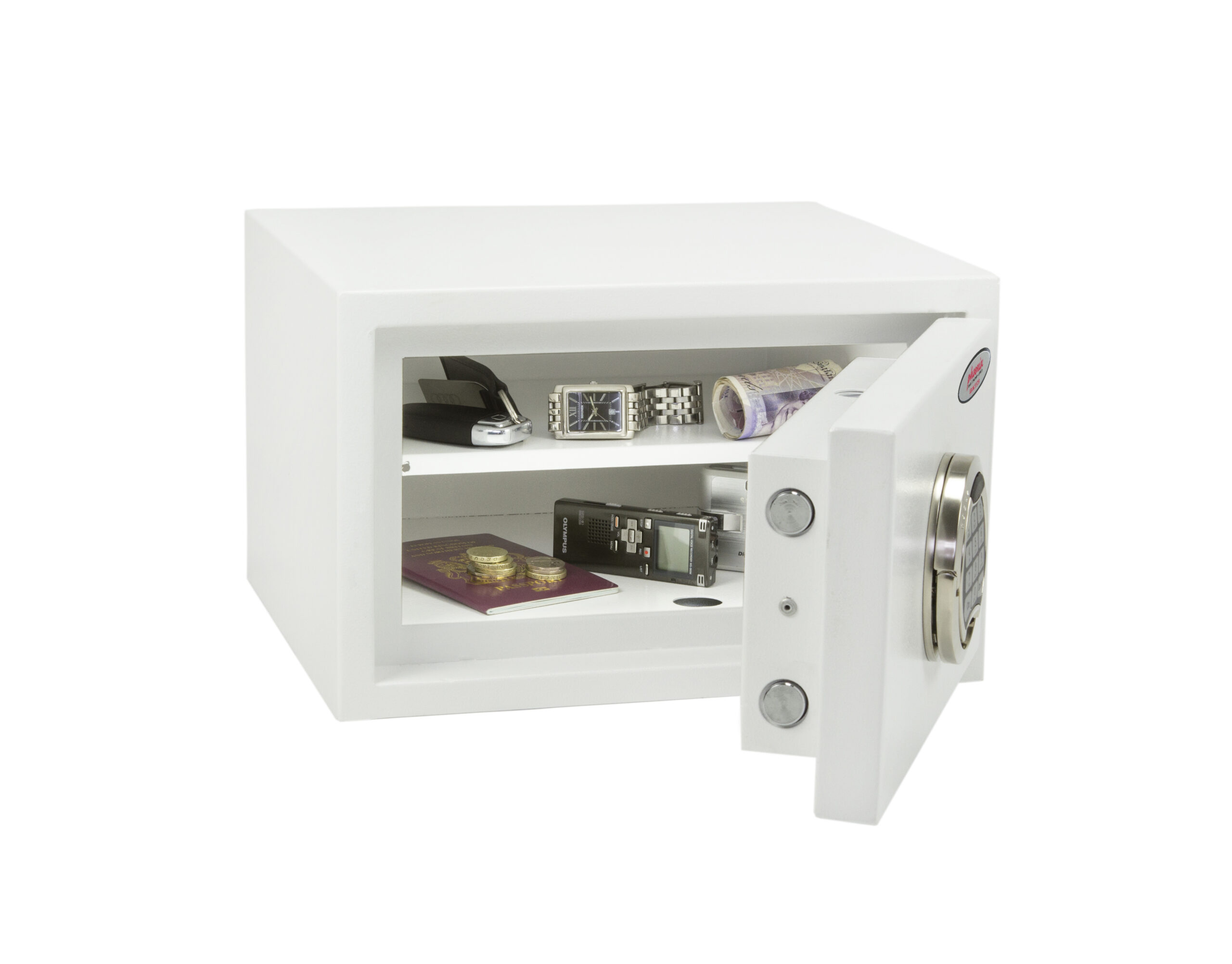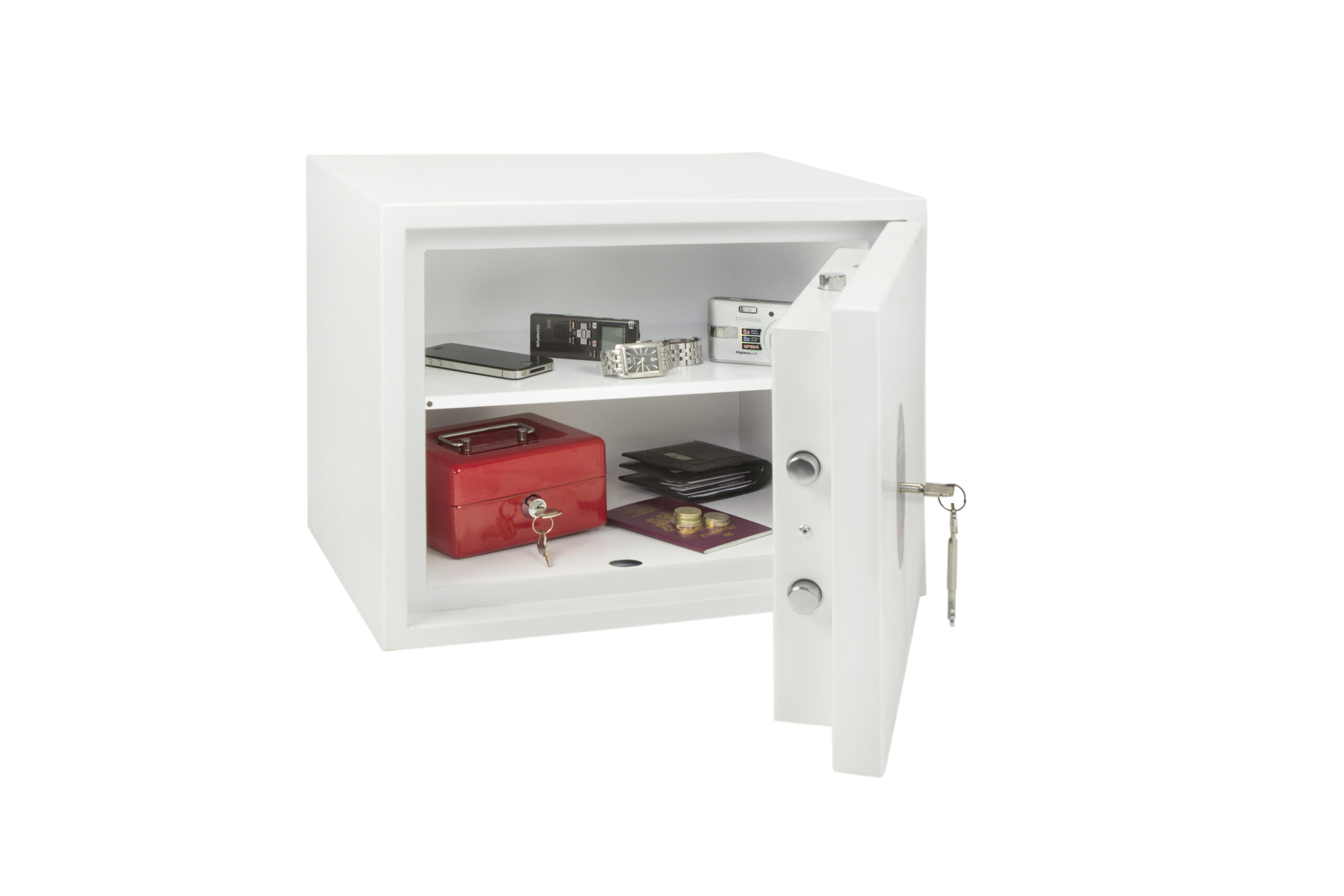 SECURITY PROTECTION – Tested to the prestigious European S2 Security standard (EN14450 – ECB.S Certified) giving cash cover of £4,000 or Valuables cover of £40,000 | APPROVALS – UK Police approved (Secured by Design scheme) and the Association of Insurance Surveyors (AiS) | CONSTRUCTION – Double wall construction with anti drill plates and re-locker protection for the door provide a safe of great strength | FIXING – Ready prepared for floor fixing, with fixing bolts for concrete supplied | COLOUR – Finished in a high quality scratch resistant White paint RAL9003 | Suitable for storage of controlled drugs whose active ingredients do not exceed 500 grams