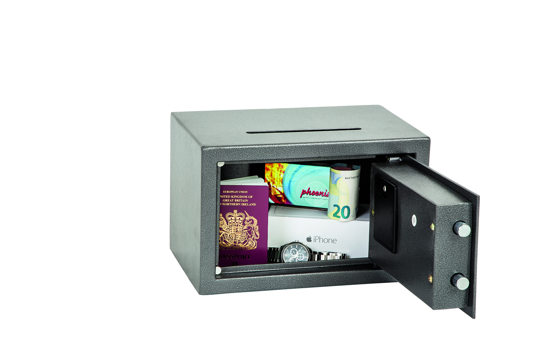 THE PHOENIX VELA DEPOSIT is designed for use at home or in the office for storage of valuables, cash and important documents. With its high quality user friendly electronic lock it is ideal for multiple applications.