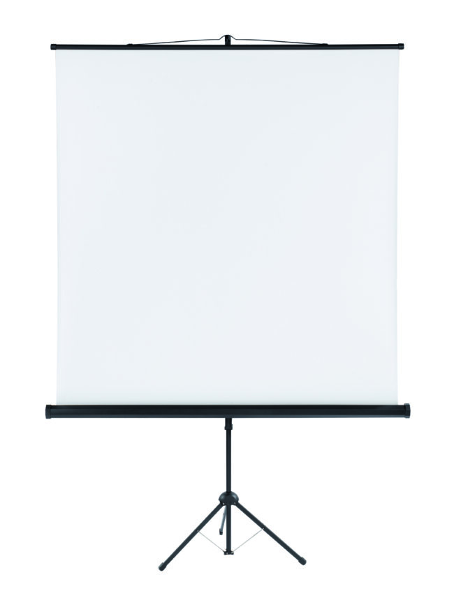• X-tra!Line(R) Tripod Screens • Matt white screen suitable for LCD and DLP projectors • Clamp ensures optimum screen tension • Fitted with handle for easy transport • Front projection type D • Light density factor approx. 1.0 gain • Manual height adjustable, roll up mechanism • Suspension hooks allow tilting of the projection area • Screen Formats: 1:1 or 4:3 • Comes in Sizes: 150 x 150cm, 180 x 180cm